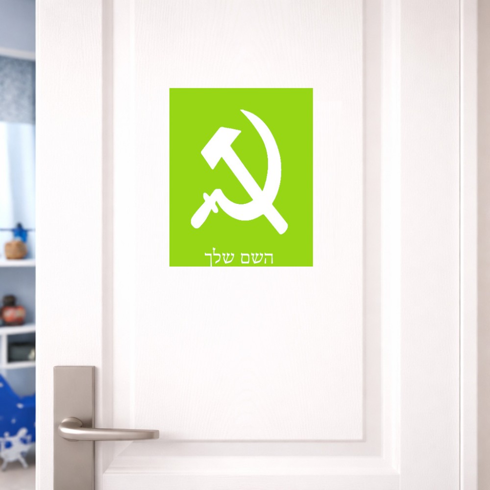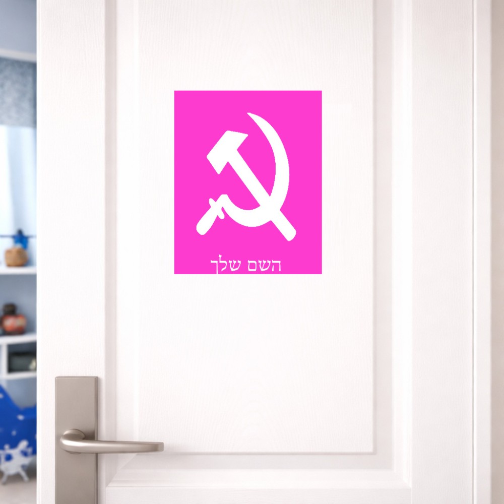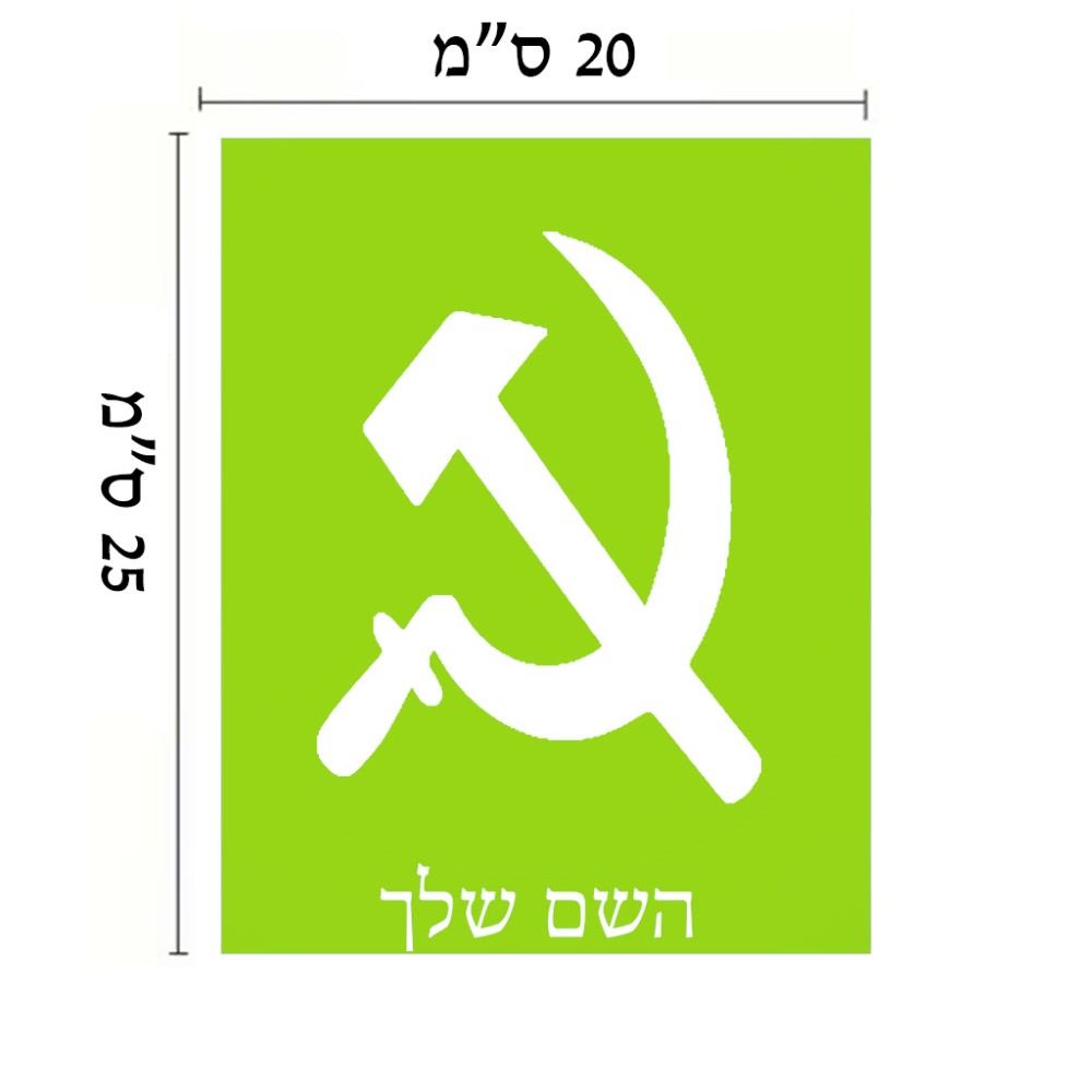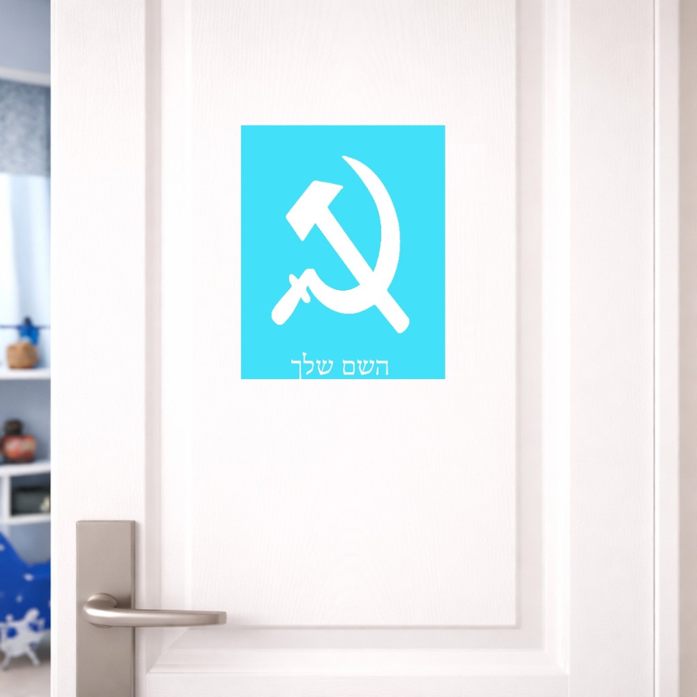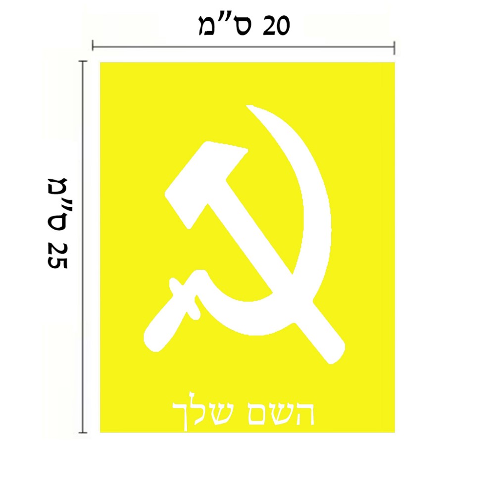 שלט אלומיניום גדול לחדר בעיצוב אישי עם השם שלך בעיצוב פטיש ומגל גודל השלט 20 × 25 ס"מ. את השם המבוקש ניתן לציין בהזמנה, אם לא צויין אנחנו ניצור קשר לבירור.