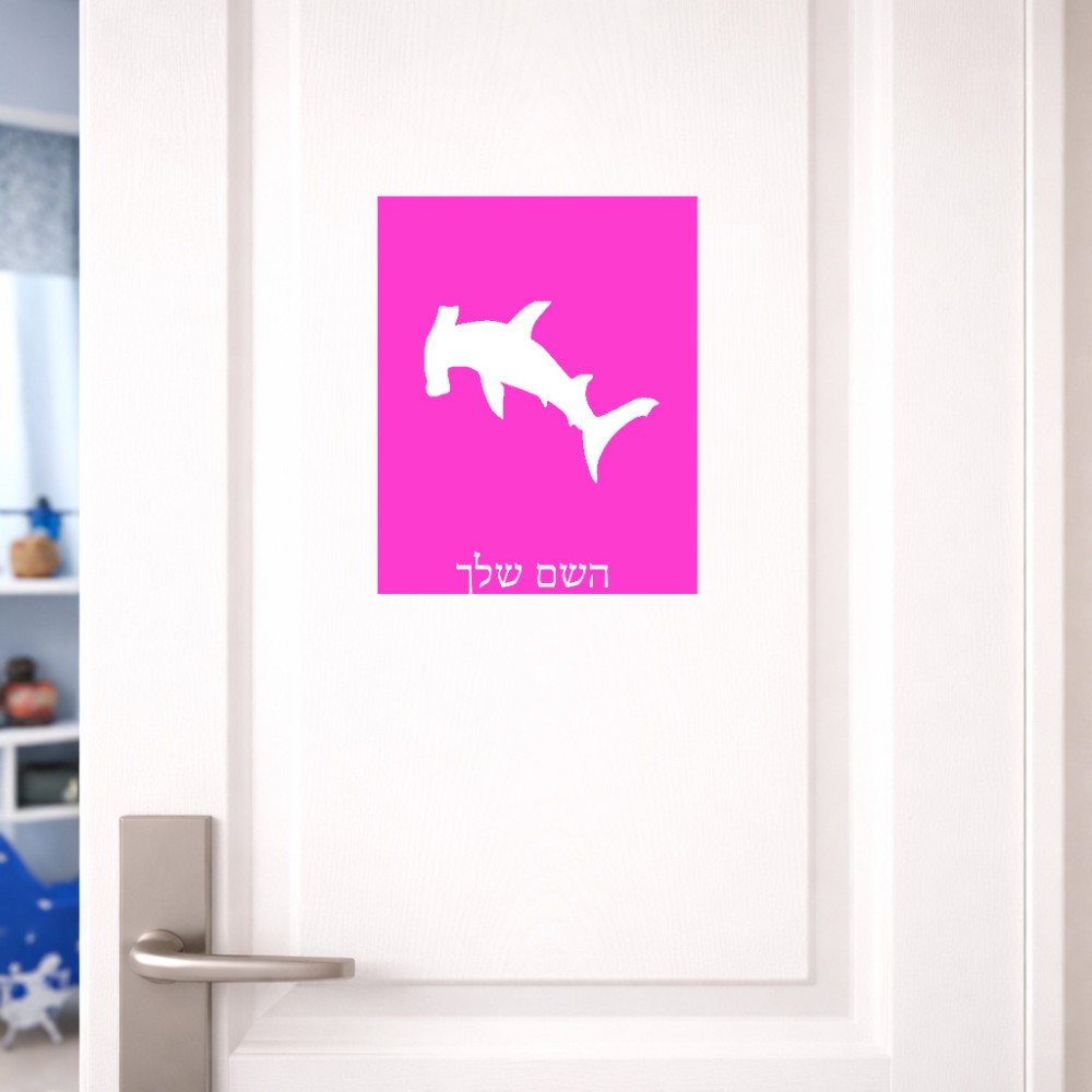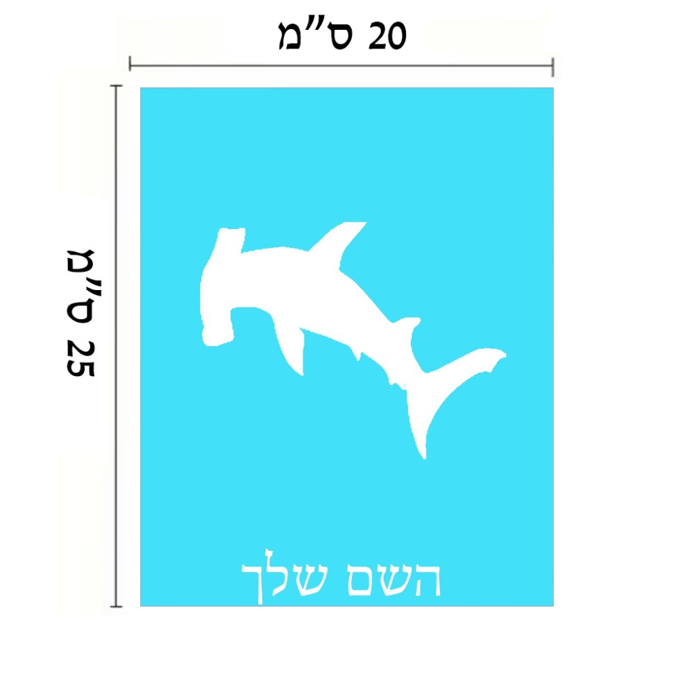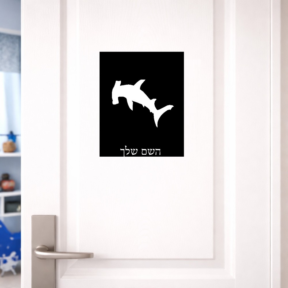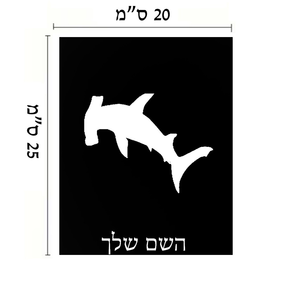 שלט אלומיניום גדול לחדר בעיצוב אישי עם השם שלך בעיצוב כריש ראש פטיש גודל השלט 20 × 25 ס"מ. את השם המבוקש ניתן לציין בהזמנה, אם לא צויין אנחנו ניצור קשר לבירור.