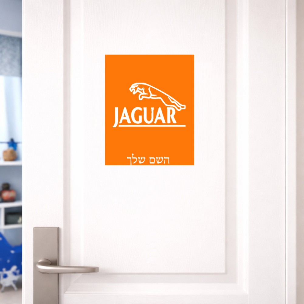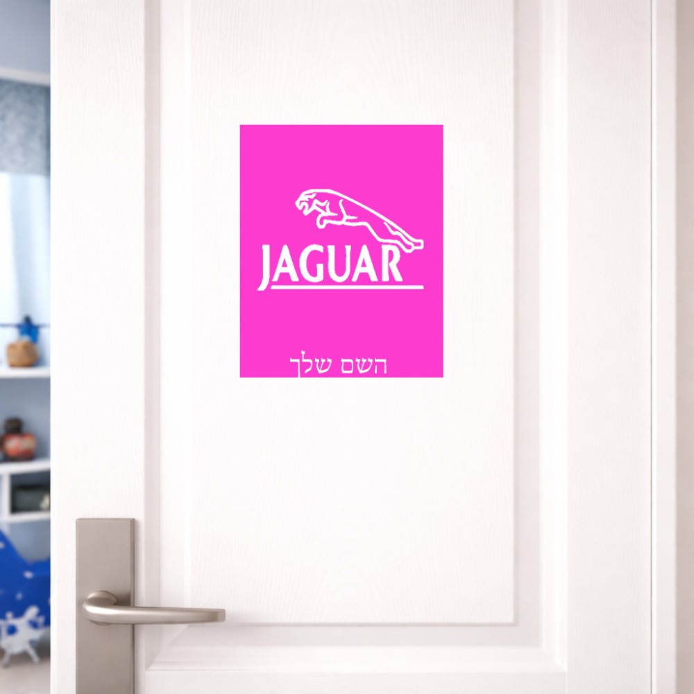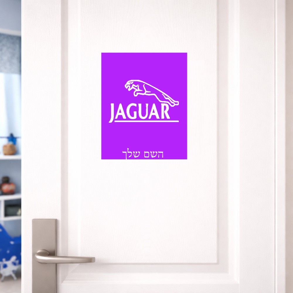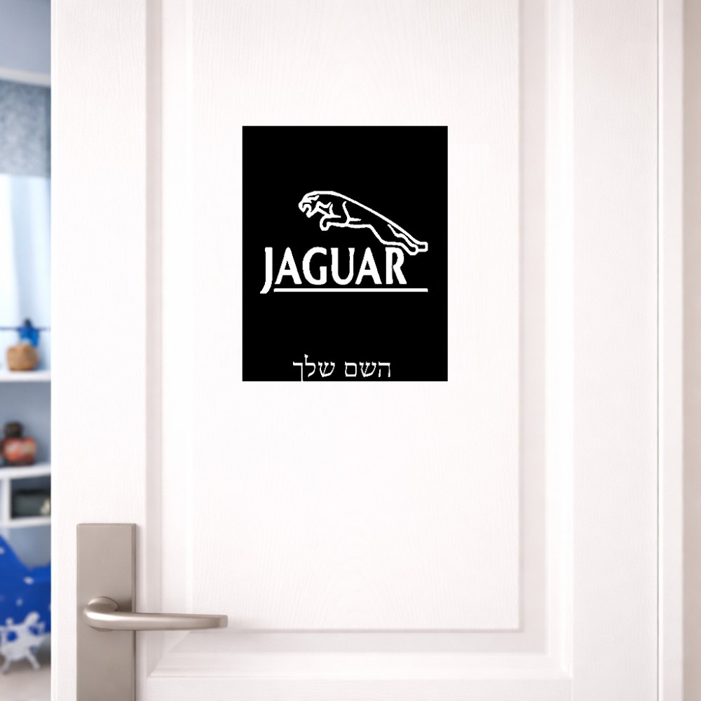 שלט אלומיניום גדול לחדר בעיצוב אישי עם השם שלך בעיצוב יגואר גודל השלט 20 × 25 ס"מ. את השם המבוקש ניתן לציין בהזמנה, אם לא צויין אנחנו ניצור קשר לבירור.