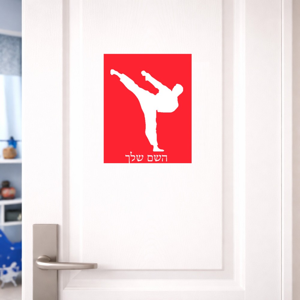 שלט אלומיניום גדול לחדר בעיצוב אישי עם השם שלך בעיצוב קרטה גודל השלט 20 × 25 ס"מ. את השם המבוקש ניתן לציין בהזמנה, אם לא צויין אנחנו ניצור קשר לבירור.