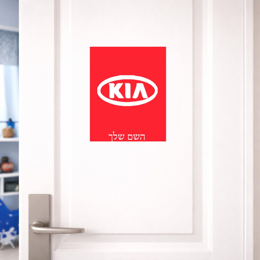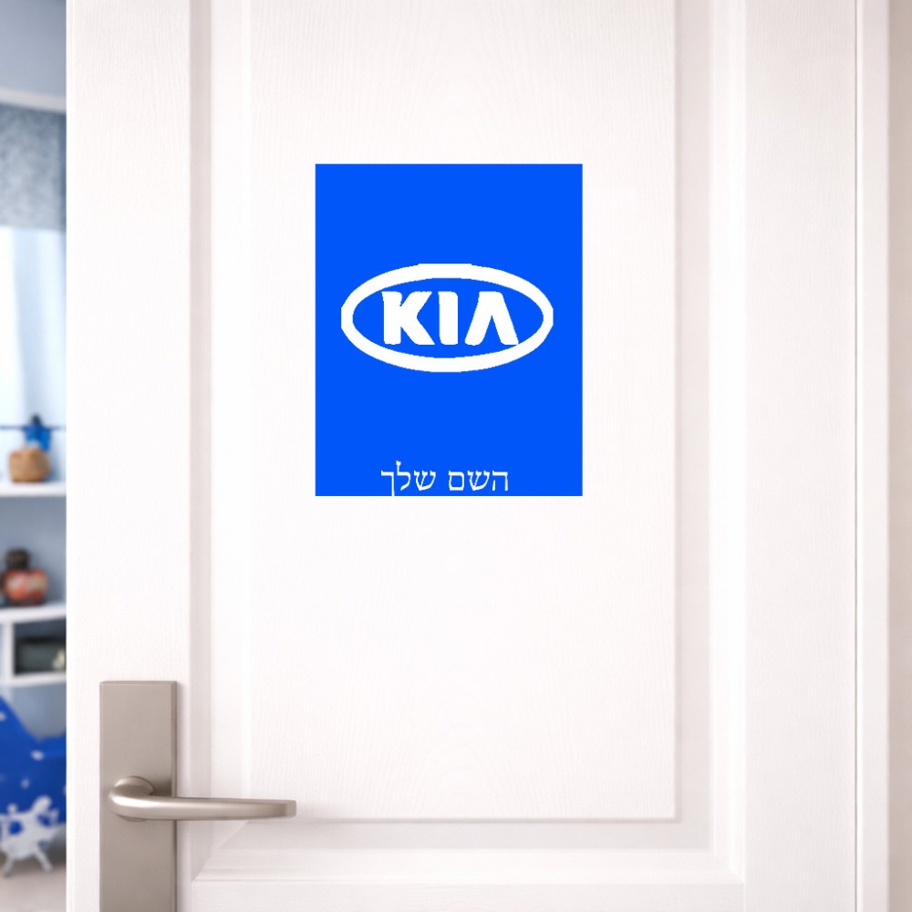שלט אלומיניום גדול לחדר בעיצוב אישי עם השם שלך בעיצוב קיה גודל השלט 20 × 25 ס"מ. את השם המבוקש ניתן לציין בהזמנה, אם לא צויין אנחנו ניצור קשר לבירור.