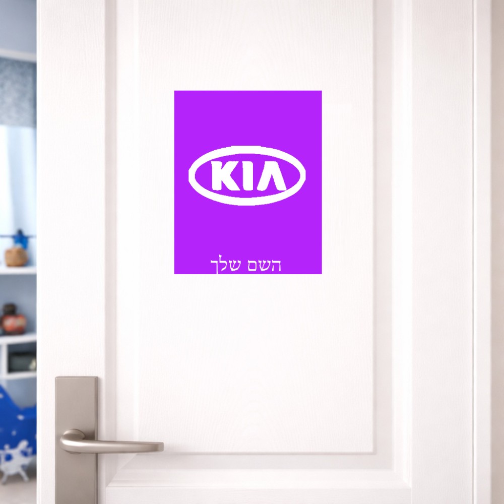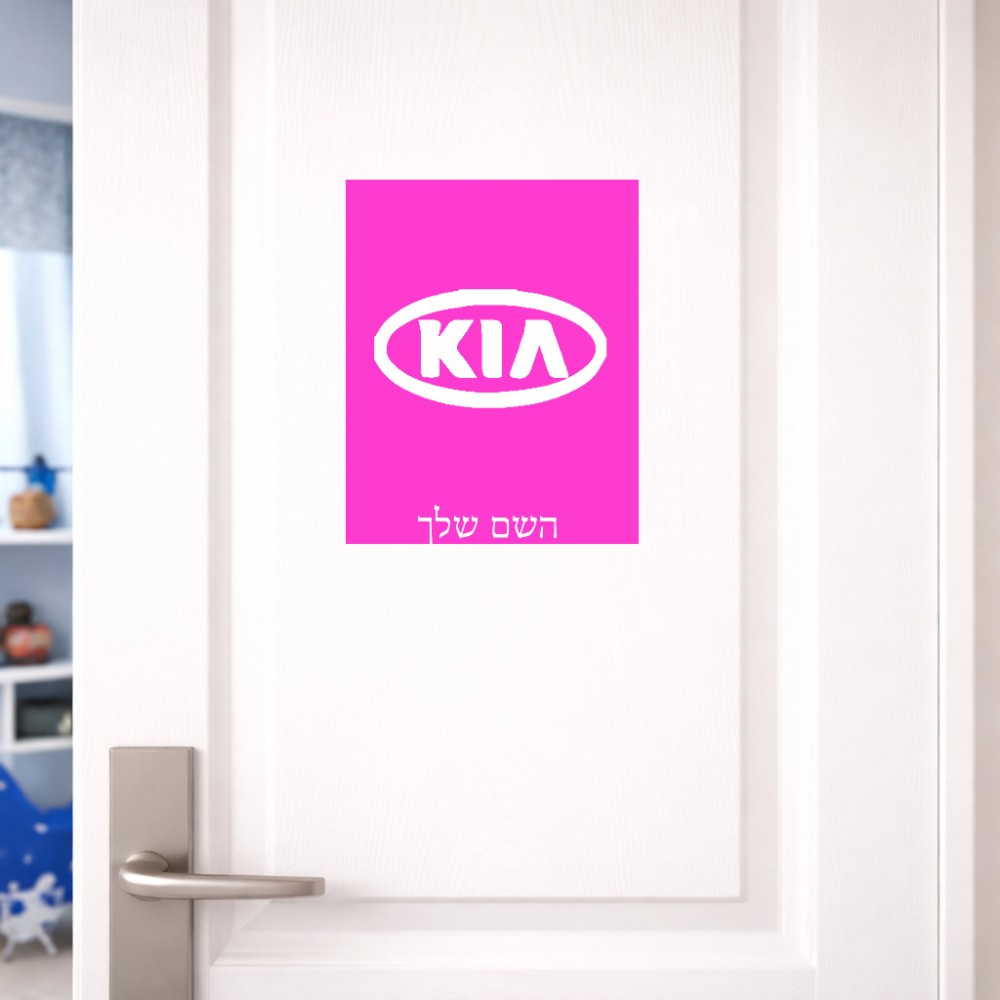 שלט אלומיניום גדול לחדר בעיצוב אישי עם השם שלך בעיצוב קיה גודל השלט 20 × 25 ס"מ.