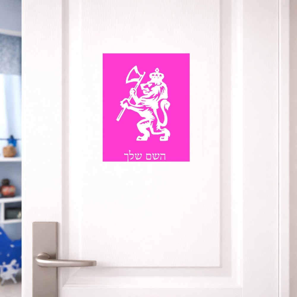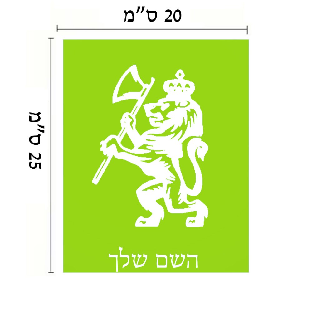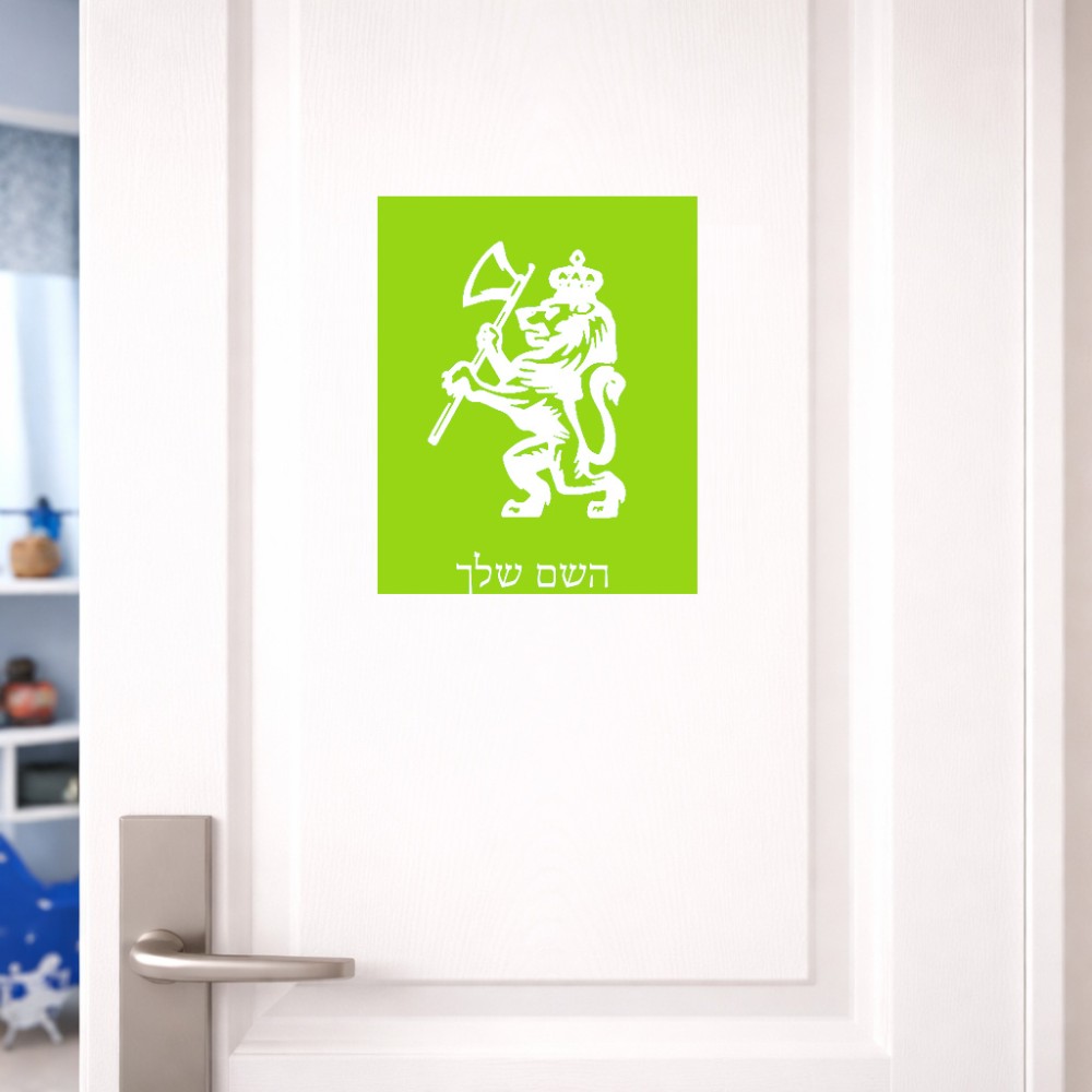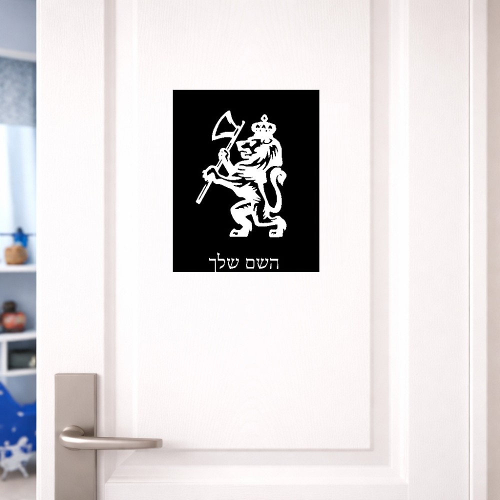 שלט אלומיניום גדול לחדר בעיצוב אישי עם השם שלך בעיצוב אריה גודל השלט 20 × 25 ס"מ. את השם המבוקש ניתן לציין בהזמנה, אם לא צויין אנחנו ניצור קשר לבירור.
