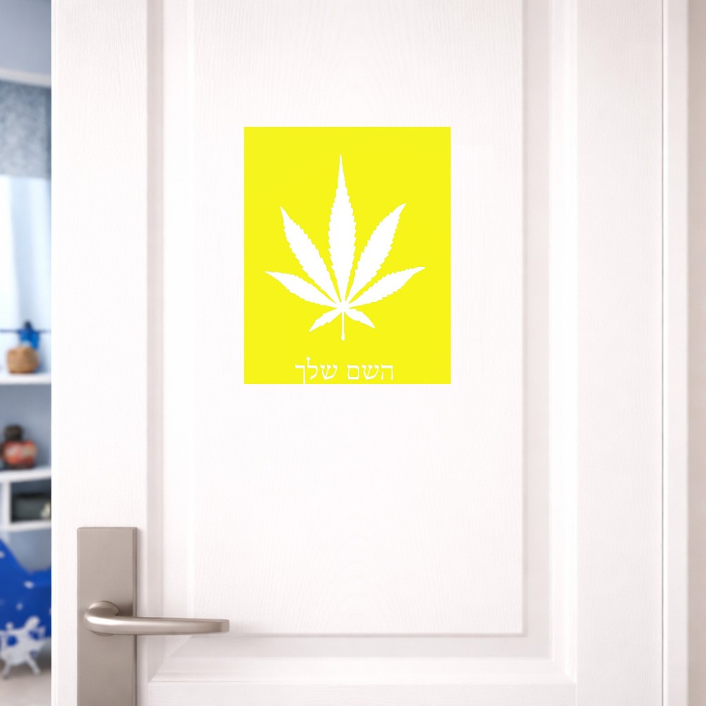 שלט אלומיניום גדול לחדר בעיצוב אישי עם השם שלך בעיצוב עלה מריחואנה - גראס גודל השלט 20 × 25 ס"מ. את השם המבוקש ניתן לציין בהזמנה, אם לא צויין אנחנו ניצור קשר לבירור.