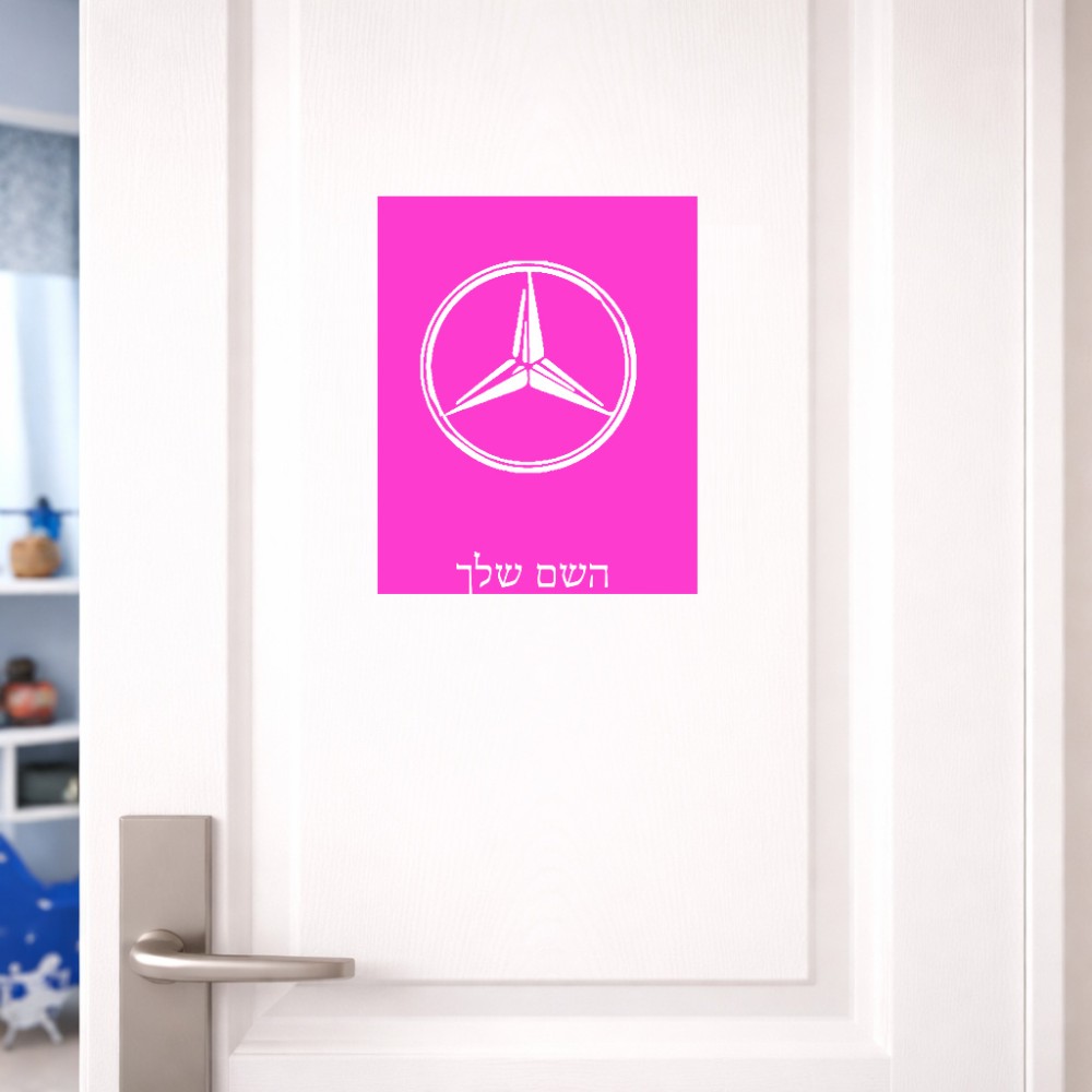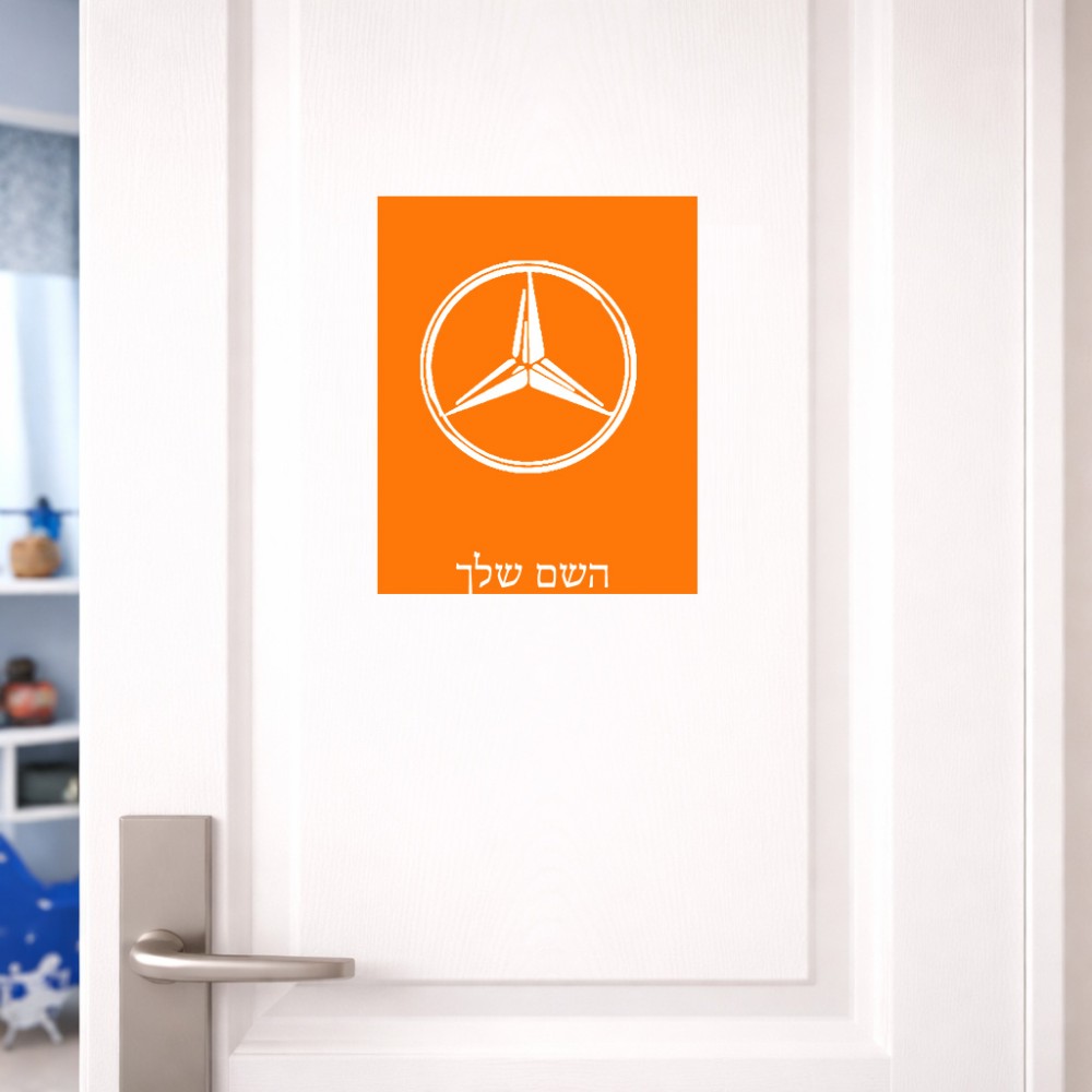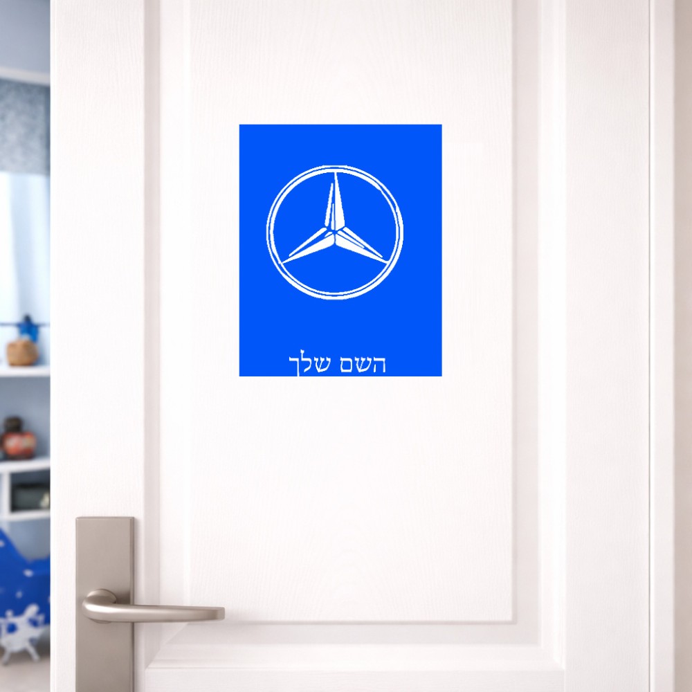 שלט אלומיניום גדול לחדר בעיצוב אישי עם השם שלך בעיצוב מרצדס-בנץ גודל השלט 20 × 25 ס"מ. את השם המבוקש ניתן לציין בהזמנה, אם לא צויין אנחנו ניצור קשר לבירור.