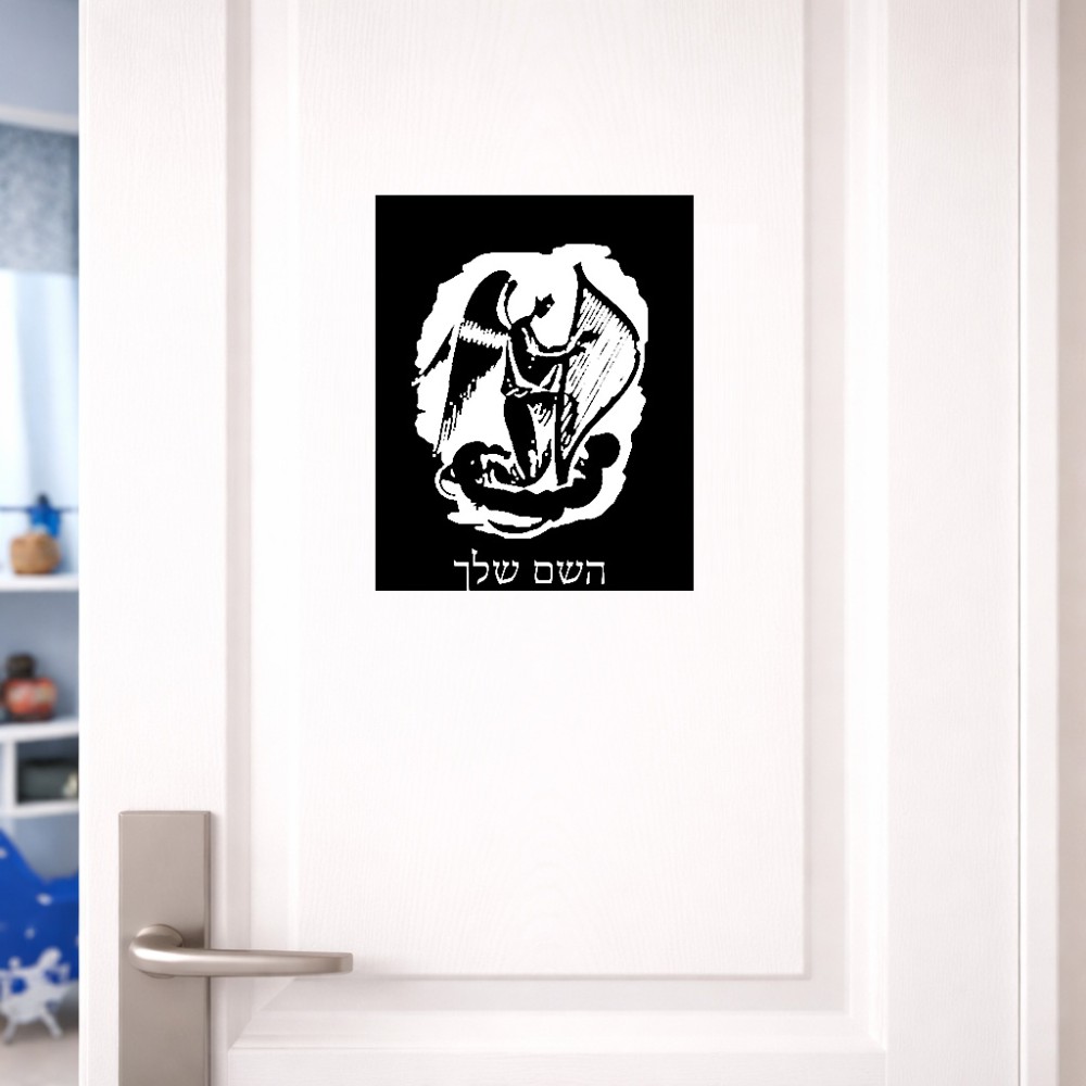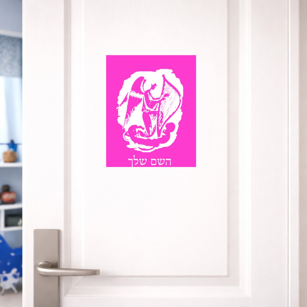 שלט אלומיניום גדול לחדר בעיצוב אישי עם השם שלך בעיצוב אנג'ל מוזיקלי גודל השלט 20 × 25 ס"מ. את השם המבוקש ניתן לציין בהזמנה, אם לא צויין אנחנו ניצור קשר לבירור.