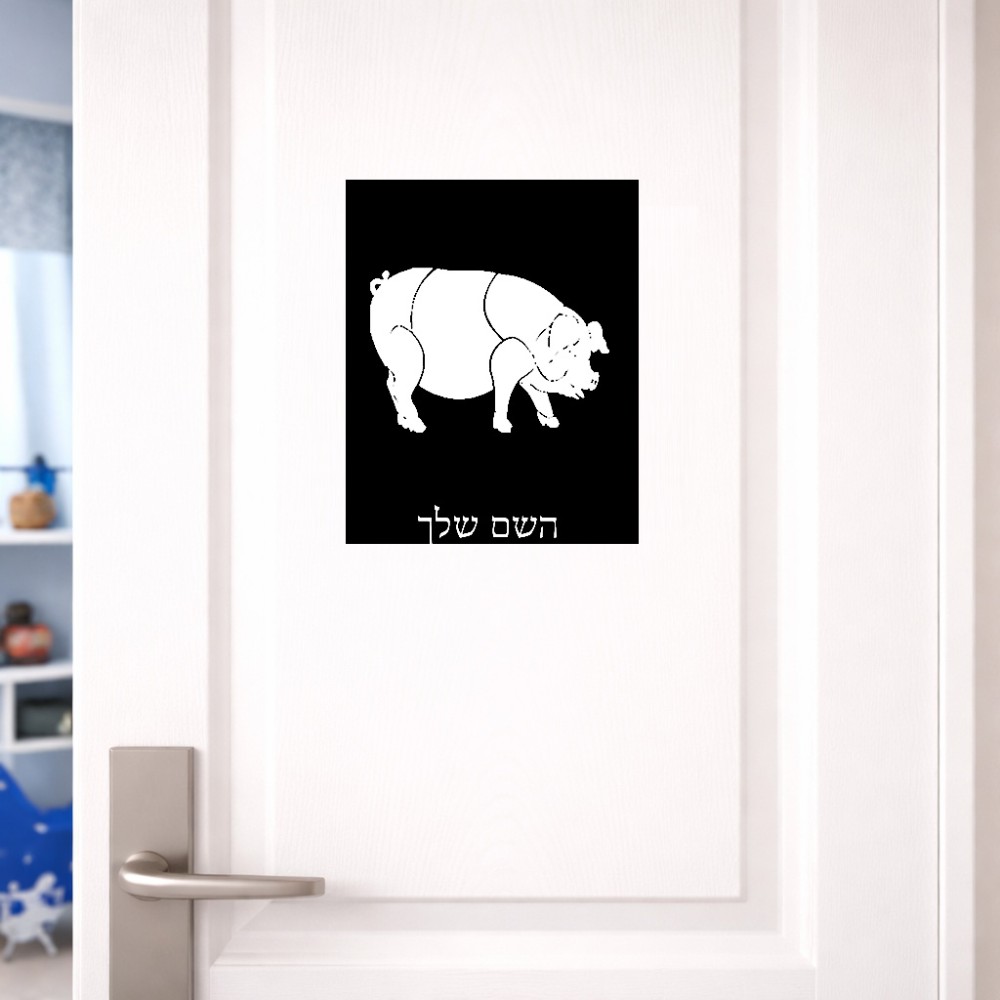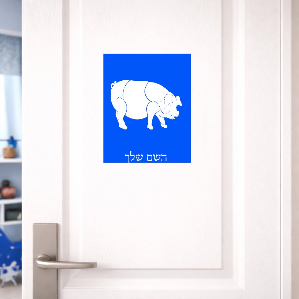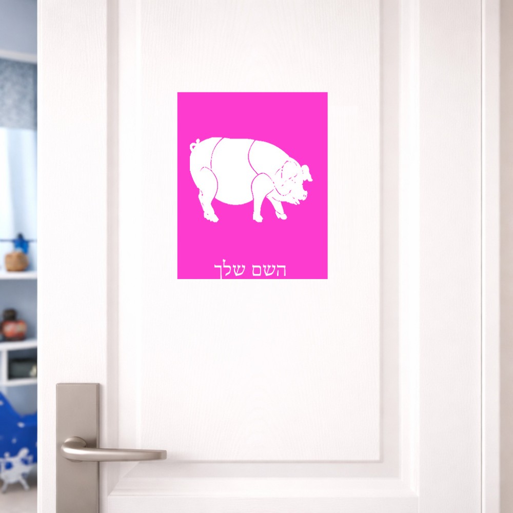 שלט אלומיניום גדול לחדר בעיצוב אישי עם השם שלך בעיצוב חזיר גודל השלט 20 × 25 ס"מ. את השם המבוקש ניתן לציין בהזמנה, אם לא צויין אנחנו ניצור קשר לבירור.