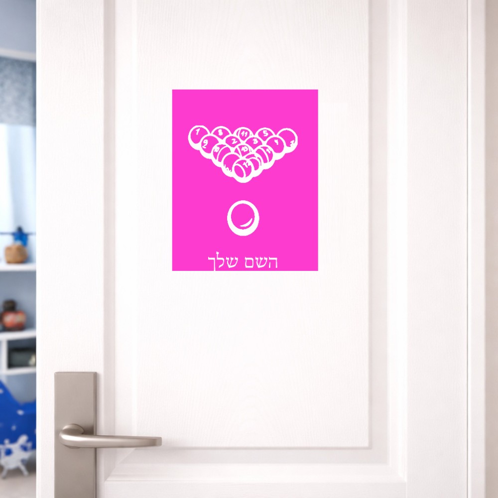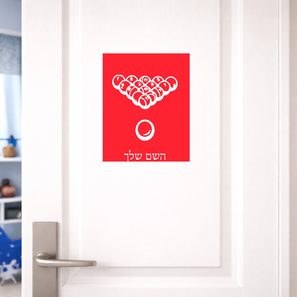 שלט אלומיניום גדול לחדר בעיצוב אישי עם השם שלך בעיצוב בריכה - ביליארד - גודל השלט 20 × 25 ס"מ. את השם המבוקש ניתן לציין בהזמנה, אם לא צויין אנחנו ניצור קשר לבירור.