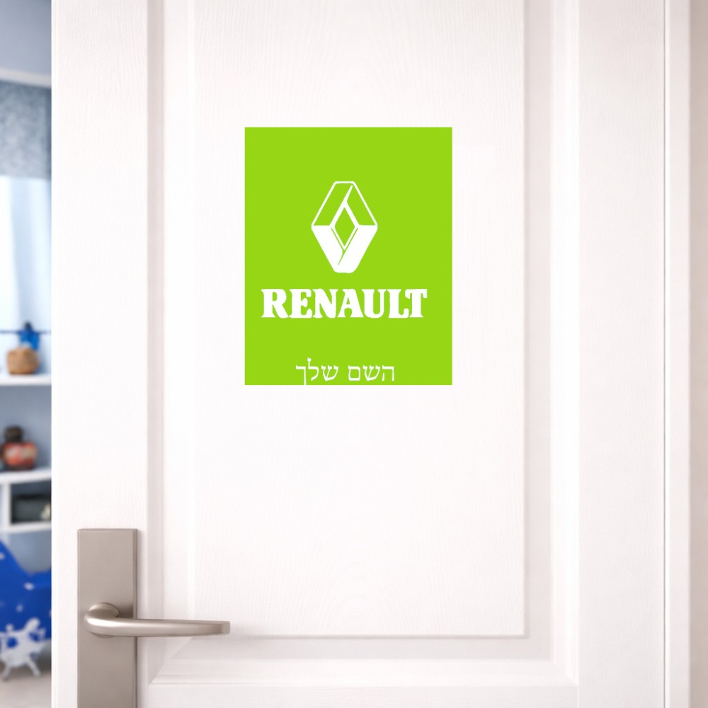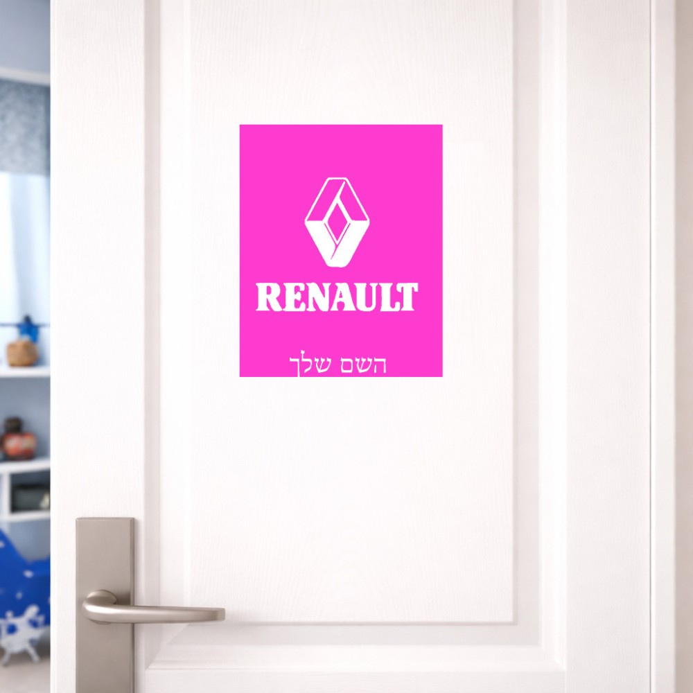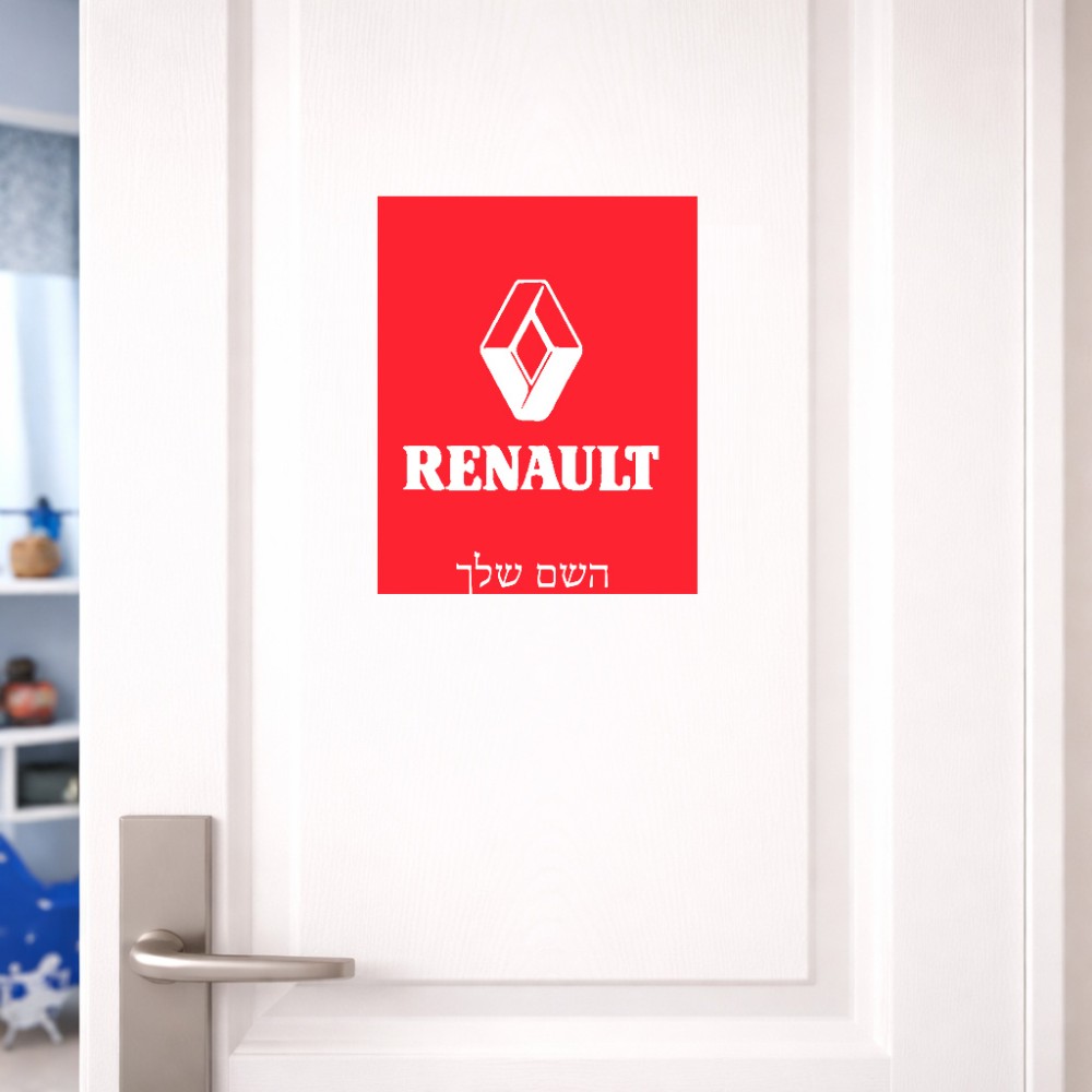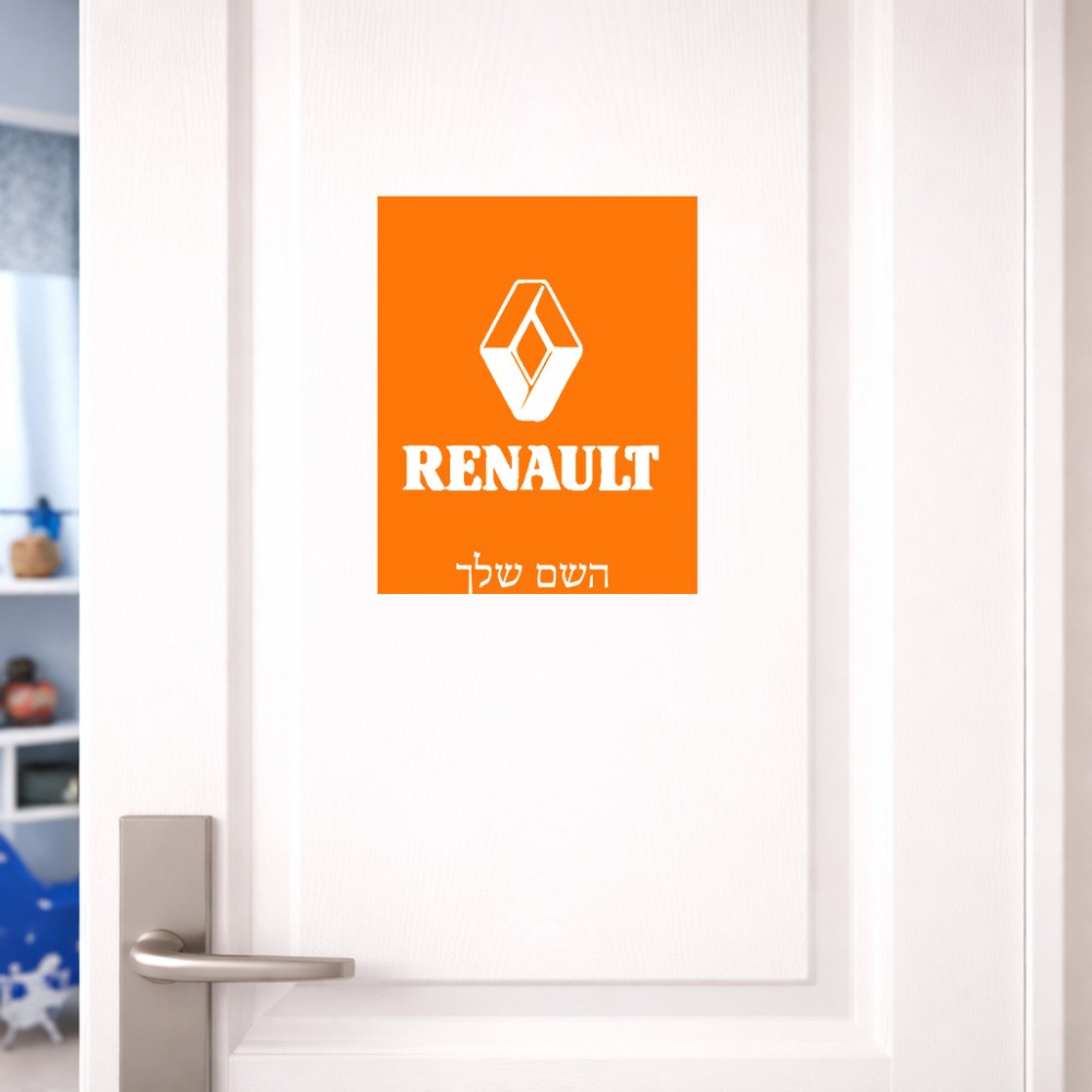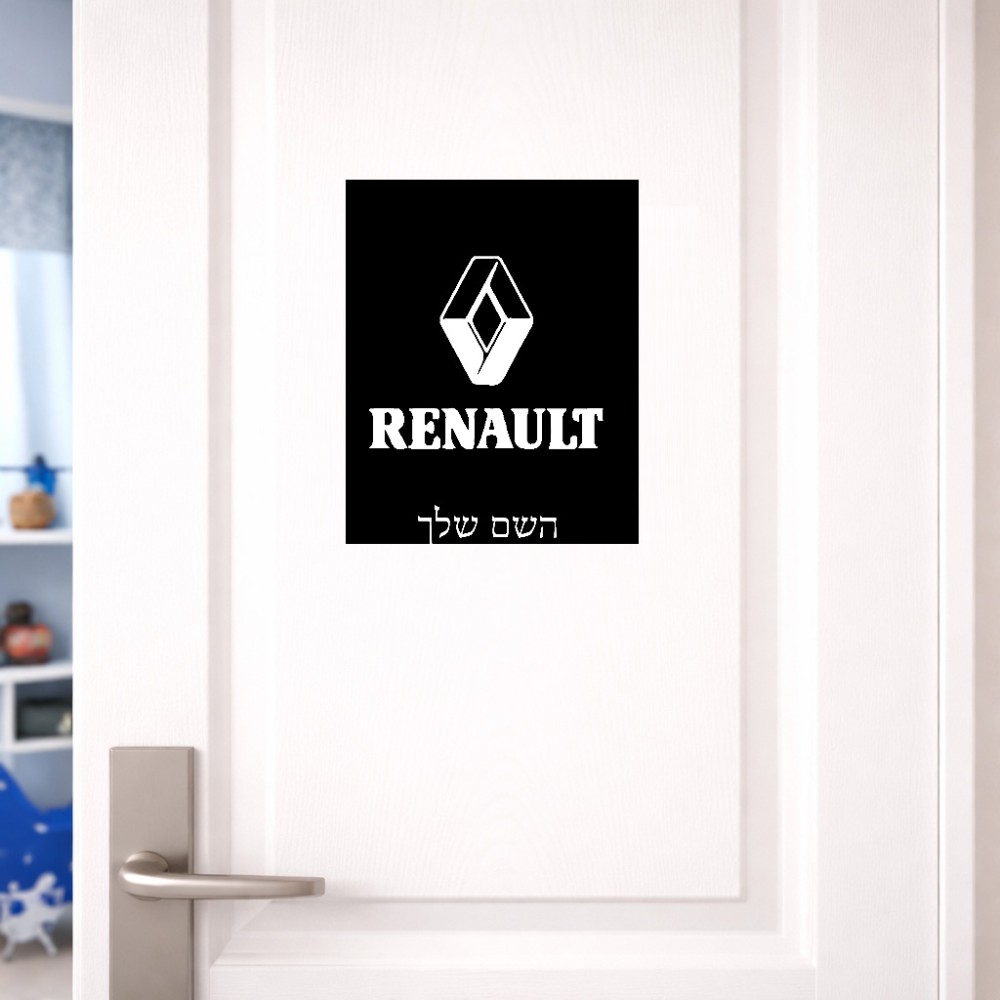 שלט אלומיניום גדול לחדר בעיצוב אישי עם השם שלך בעיצוב רנו גודל השלט 20 × 25 ס"מ. את השם המבוקש ניתן לציין בהזמנה, אם לא צויין אנחנו ניצור קשר לבירור.