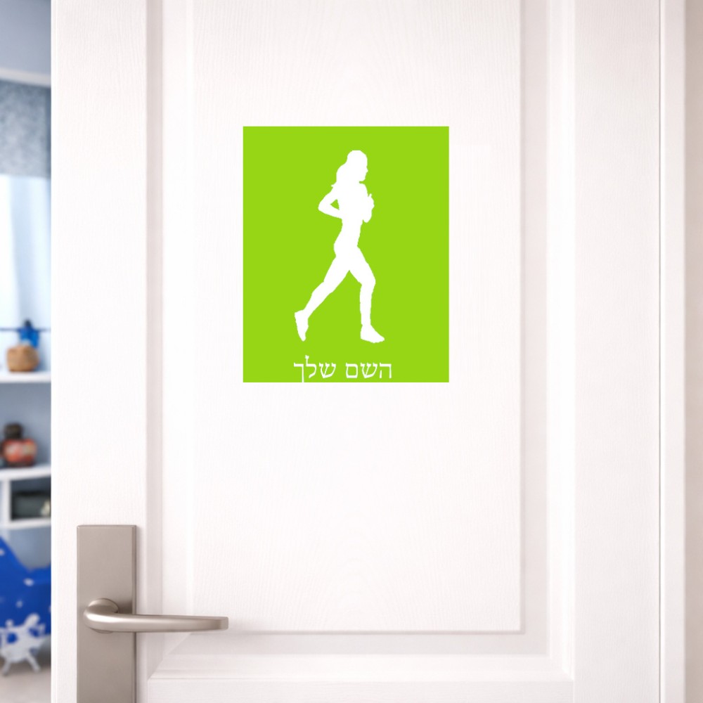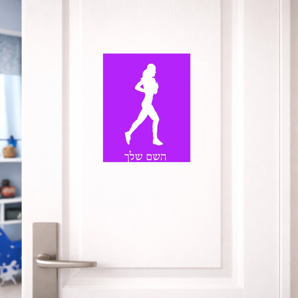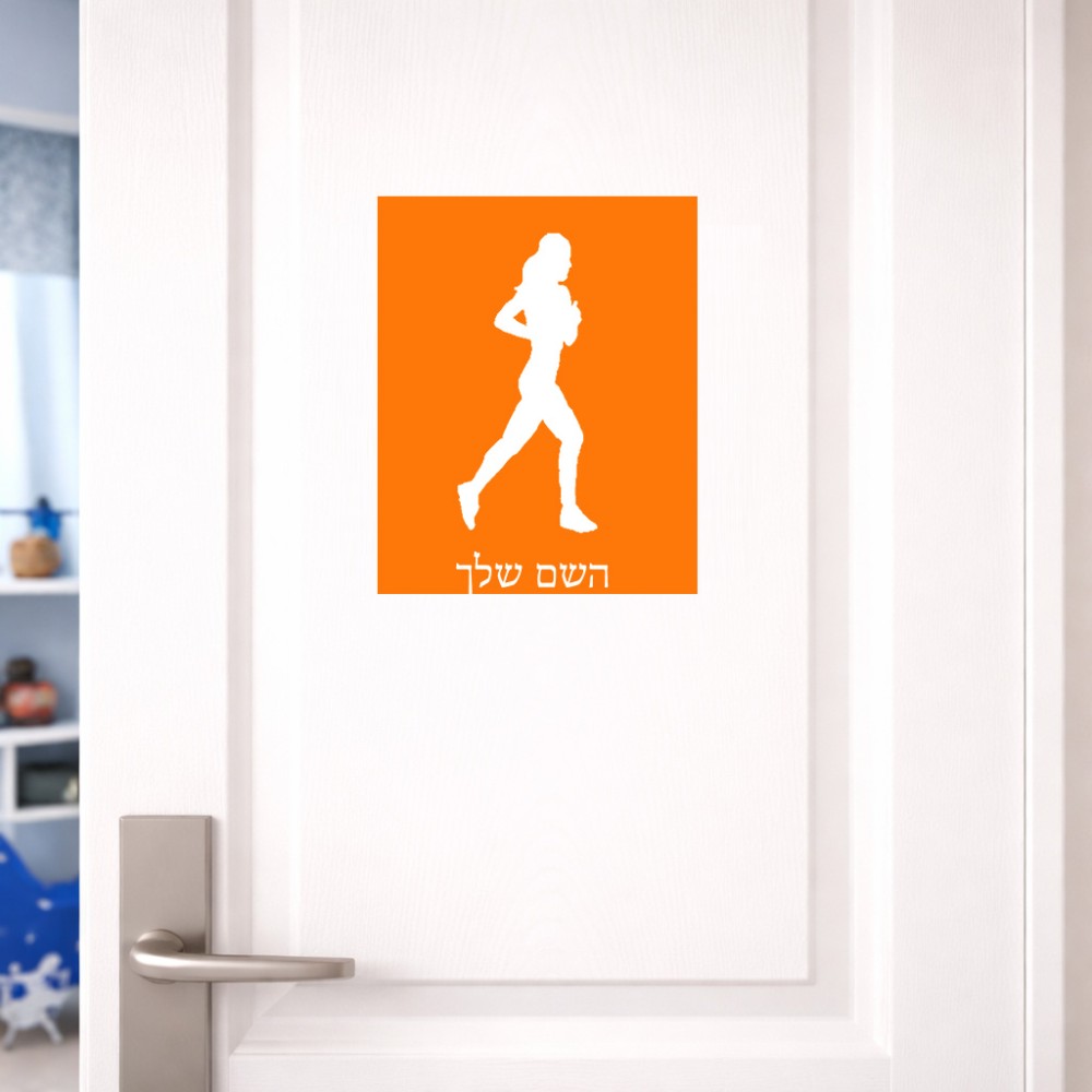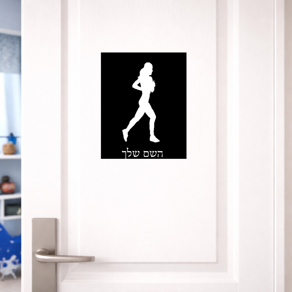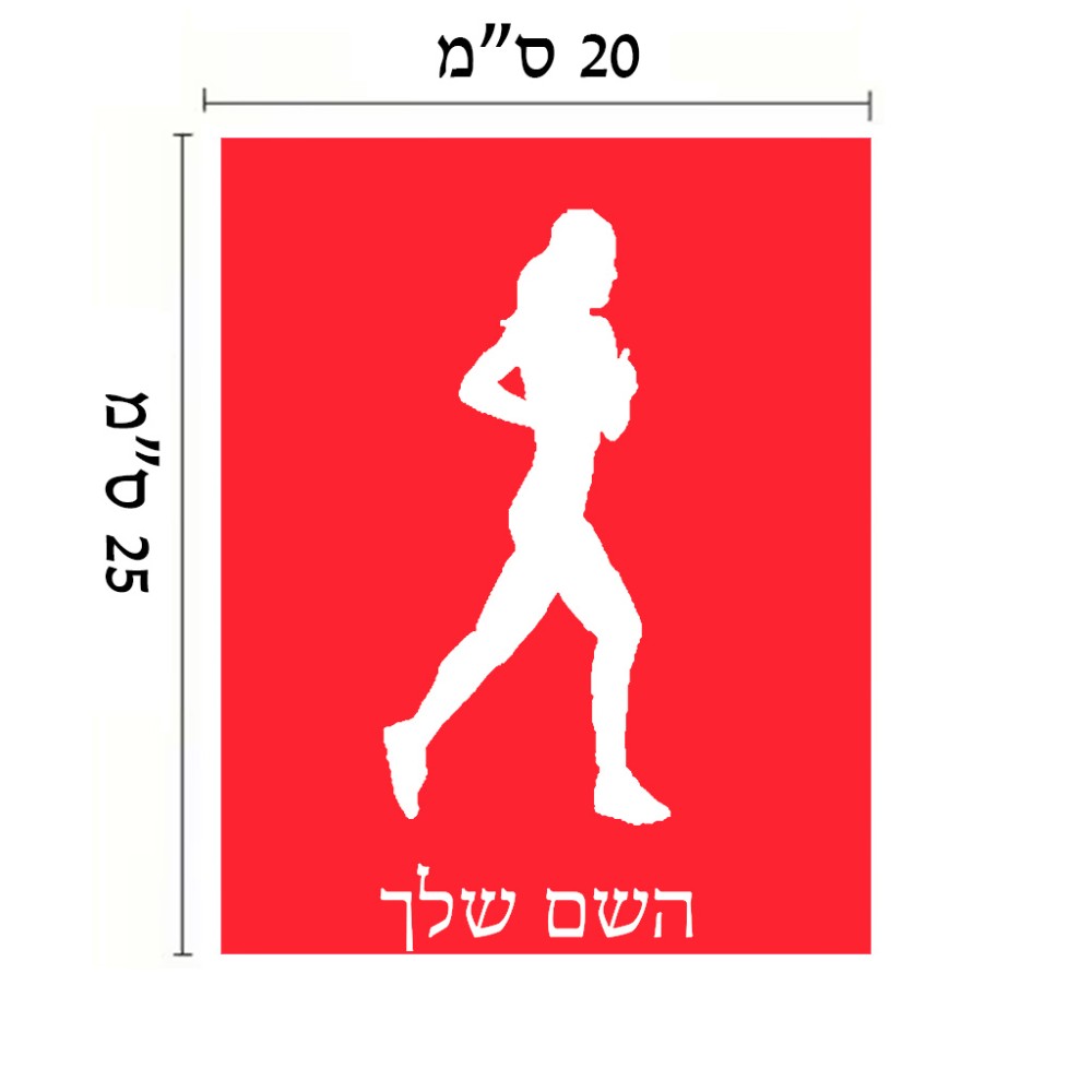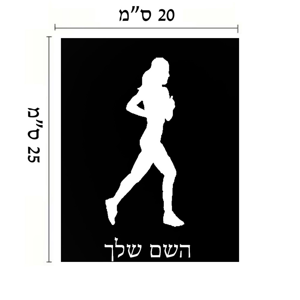 שלט אלומיניום גדול לחדר בעיצוב אישי עם השם שלך בעיצוב רץ רץ אישה גודל השלט 20 × 25 ס"מ. את השם המבוקש ניתן לציין בהזמנה, אם לא צויין אנחנו ניצור קשר לבירור.