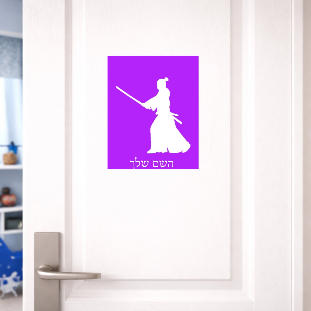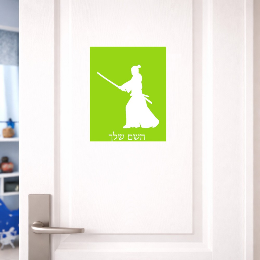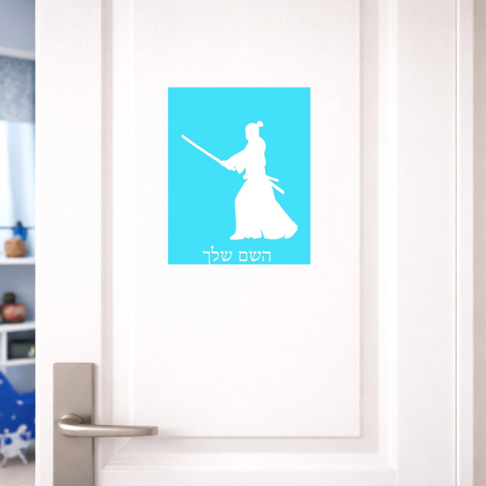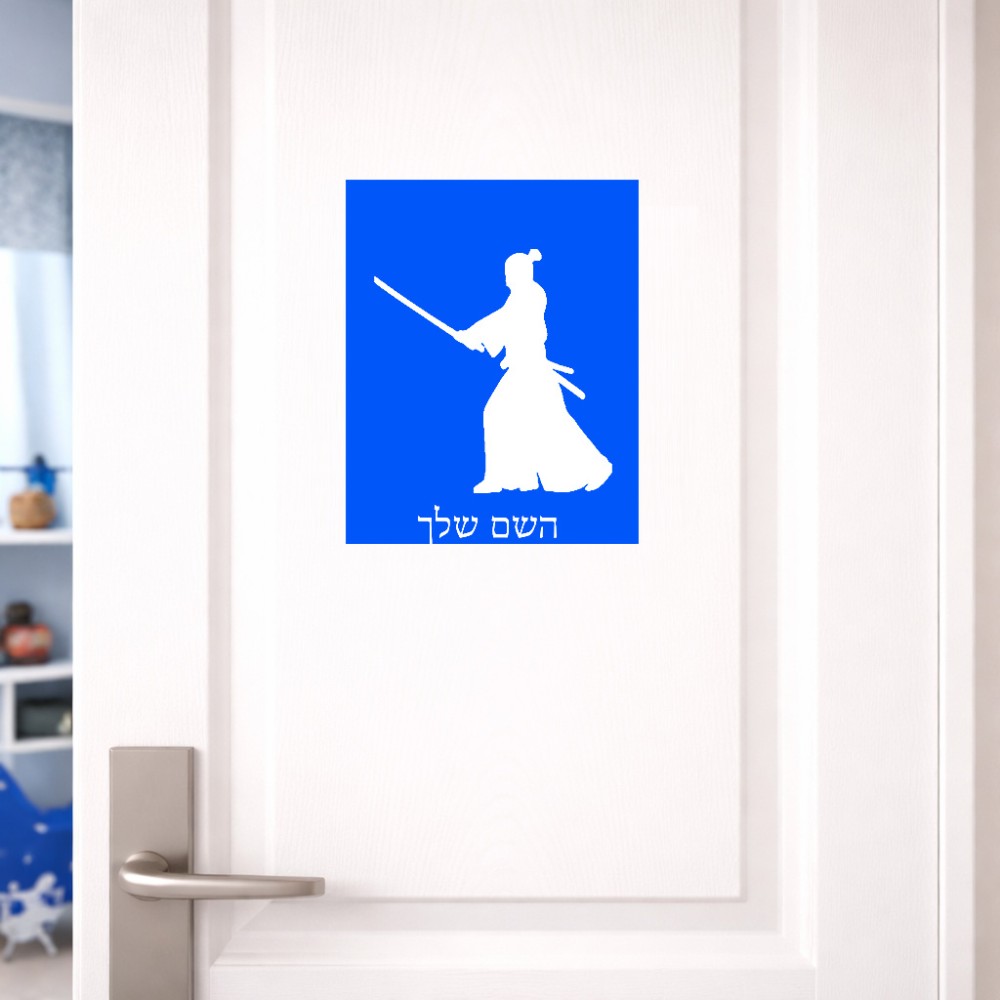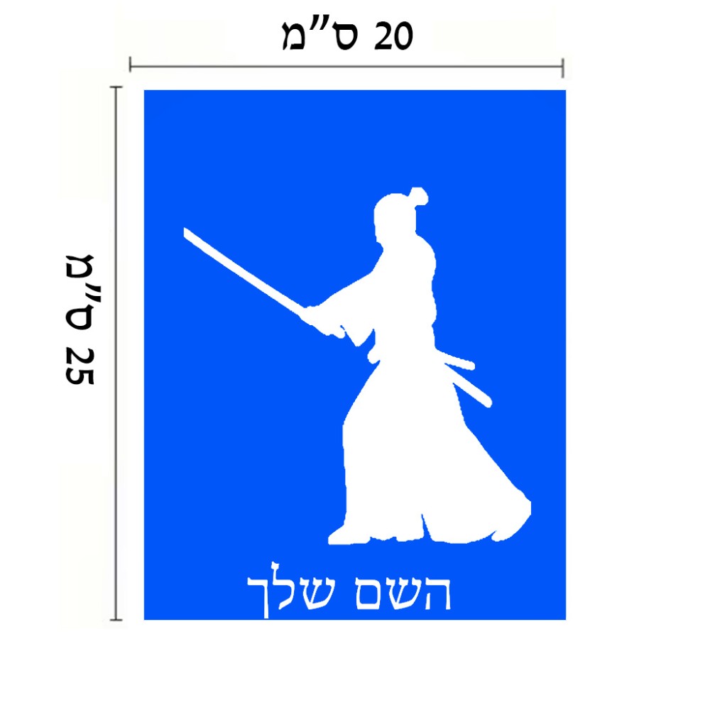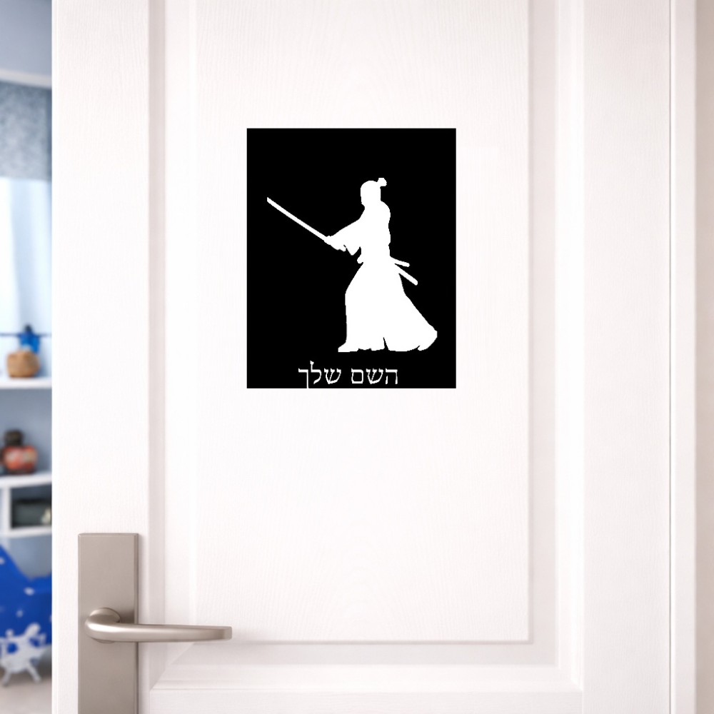 שלט אלומיניום גדול לחדר בעיצוב אישי עם השם שלך בעיצוב סמוראי גודל השלט 20 × 25 ס"מ. את השם המבוקש ניתן לציין בהזמנה, אם לא צויין אנחנו ניצור קשר לבירור.