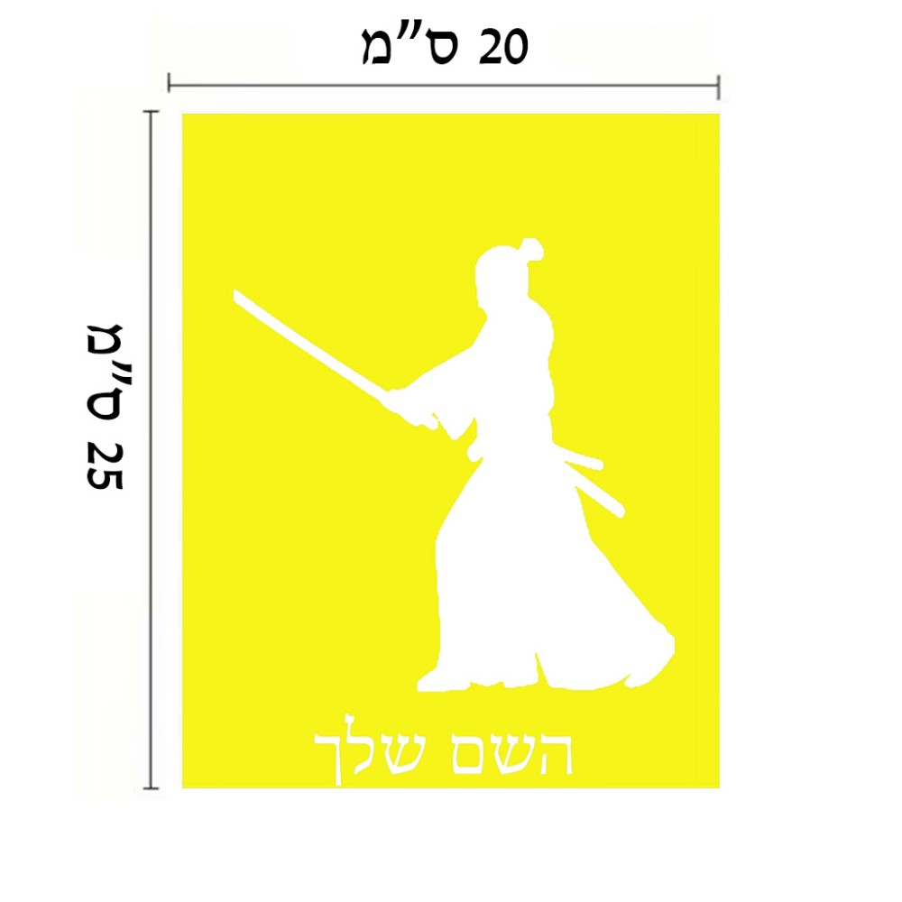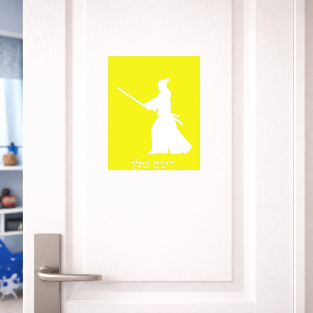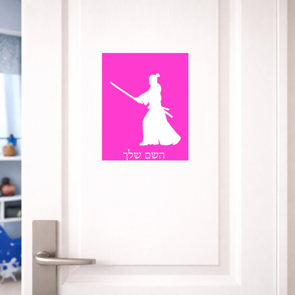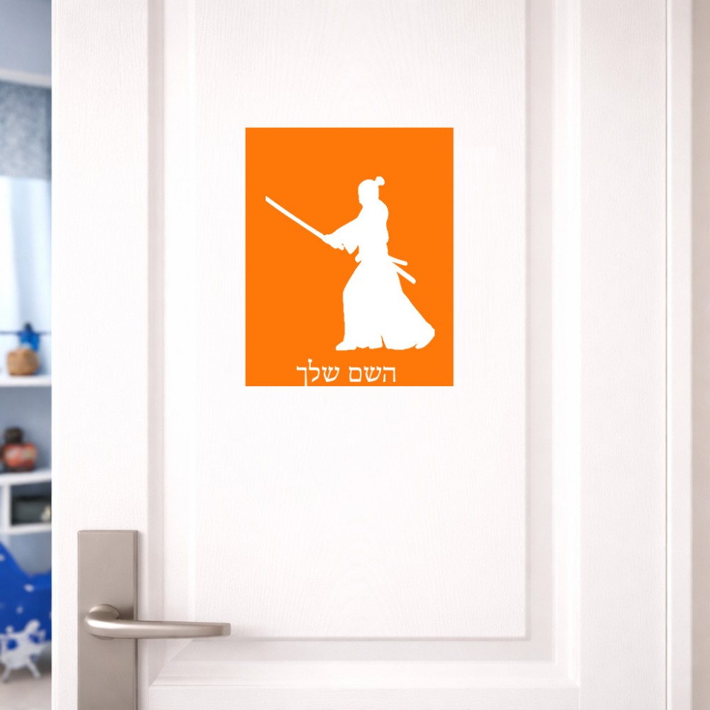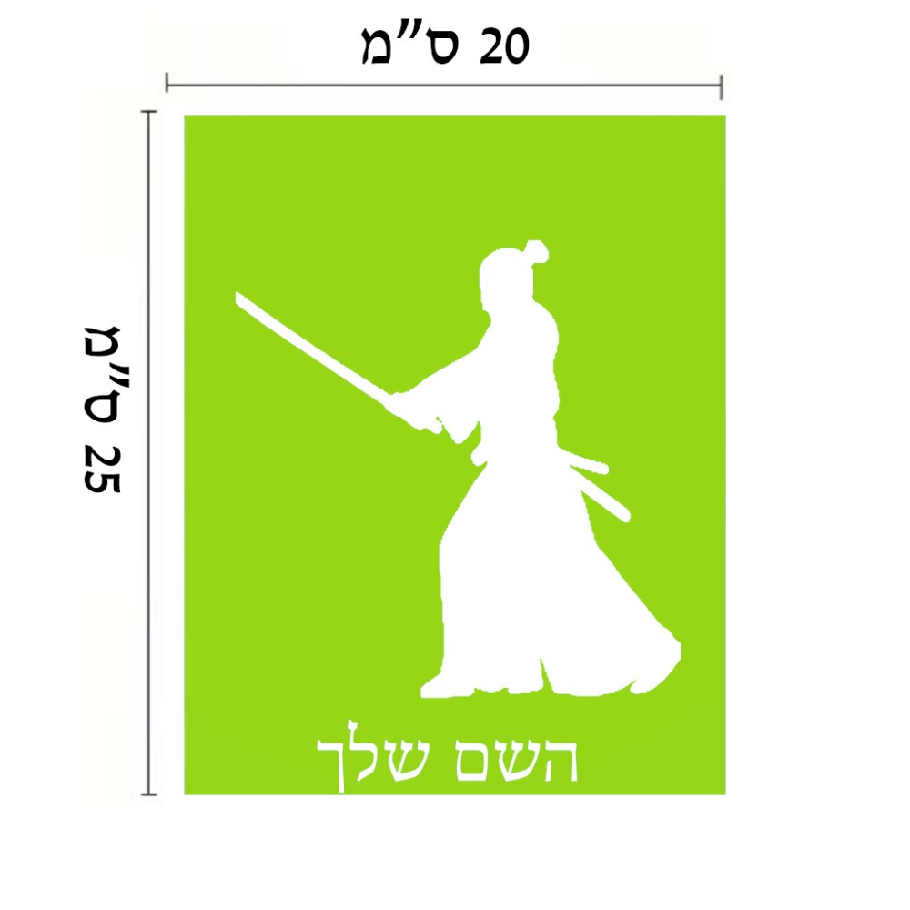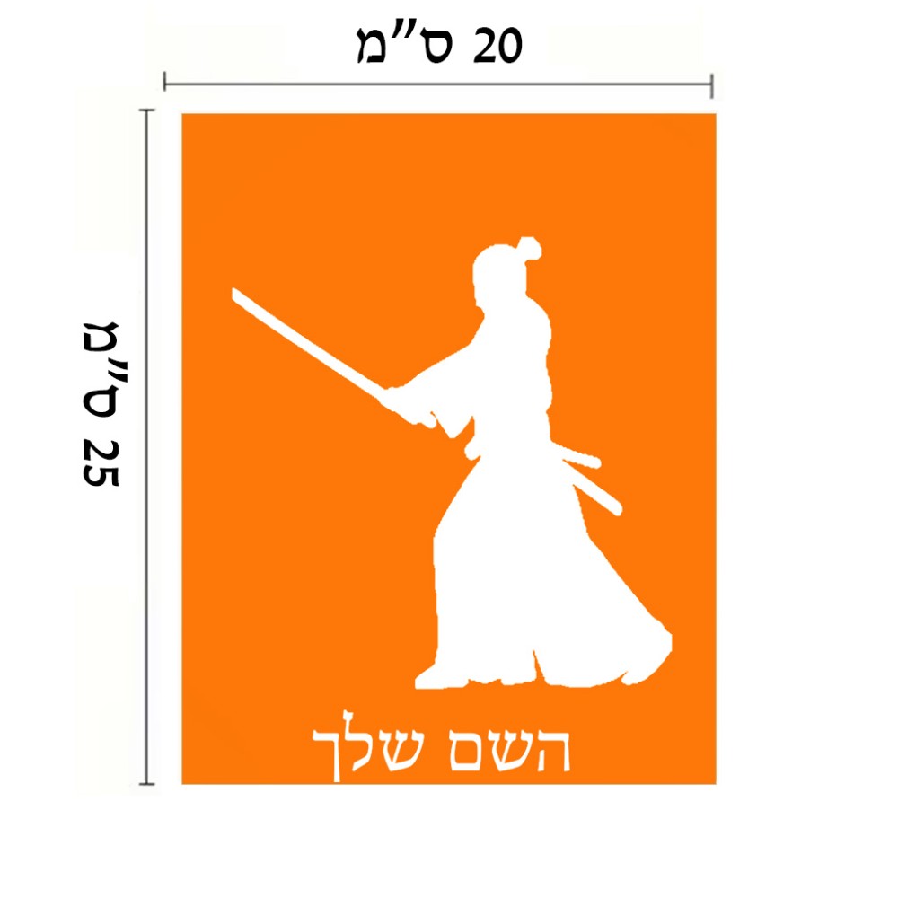 שלט אלומיניום גדול לחדר בעיצוב אישי עם השם שלך בעיצוב סמוראי גודל השלט 20 × 25 ס"מ. את השם המבוקש ניתן לציין בהזמנה, אם לא צויין אנחנו ניצור קשר לבירור.