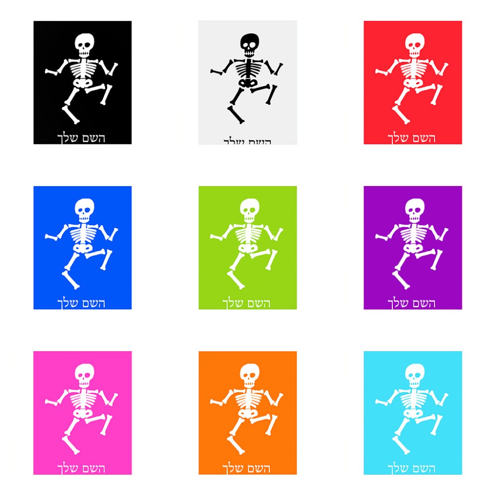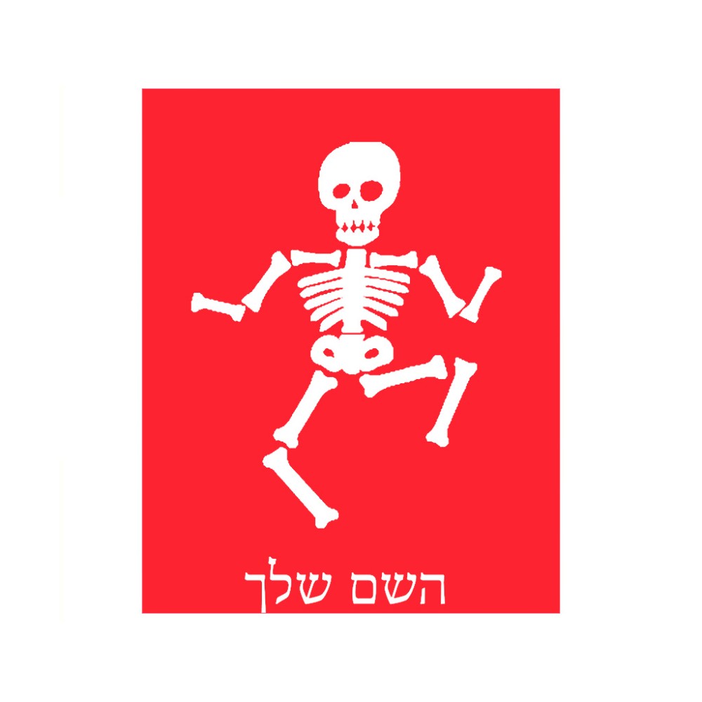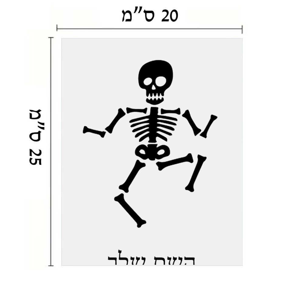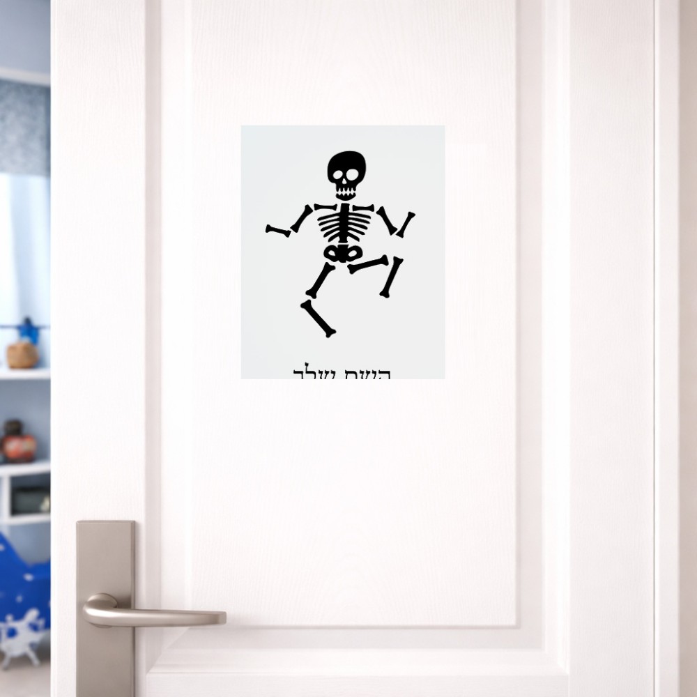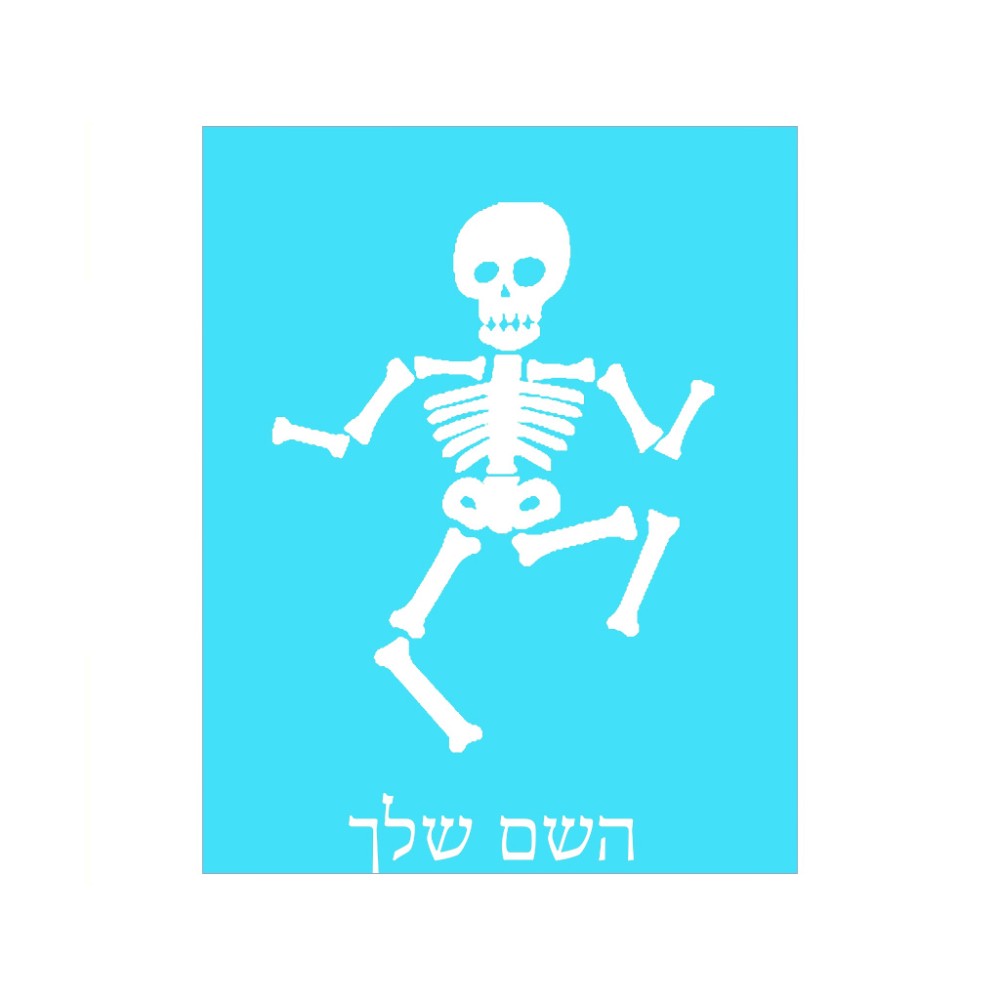 שלט אלומיניום גדול לחדר בעיצוב אישי עם השם שלך בעיצוב סקלטון גודל השלט 20 × 25 ס"מ. את השם המבוקש ניתן לציין בהזמנה, אם לא צויין אנחנו ניצור קשר לבירור.
