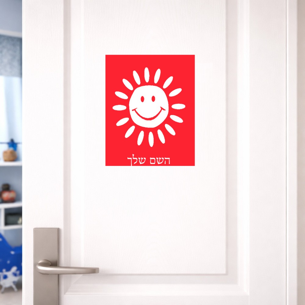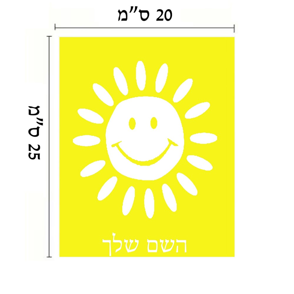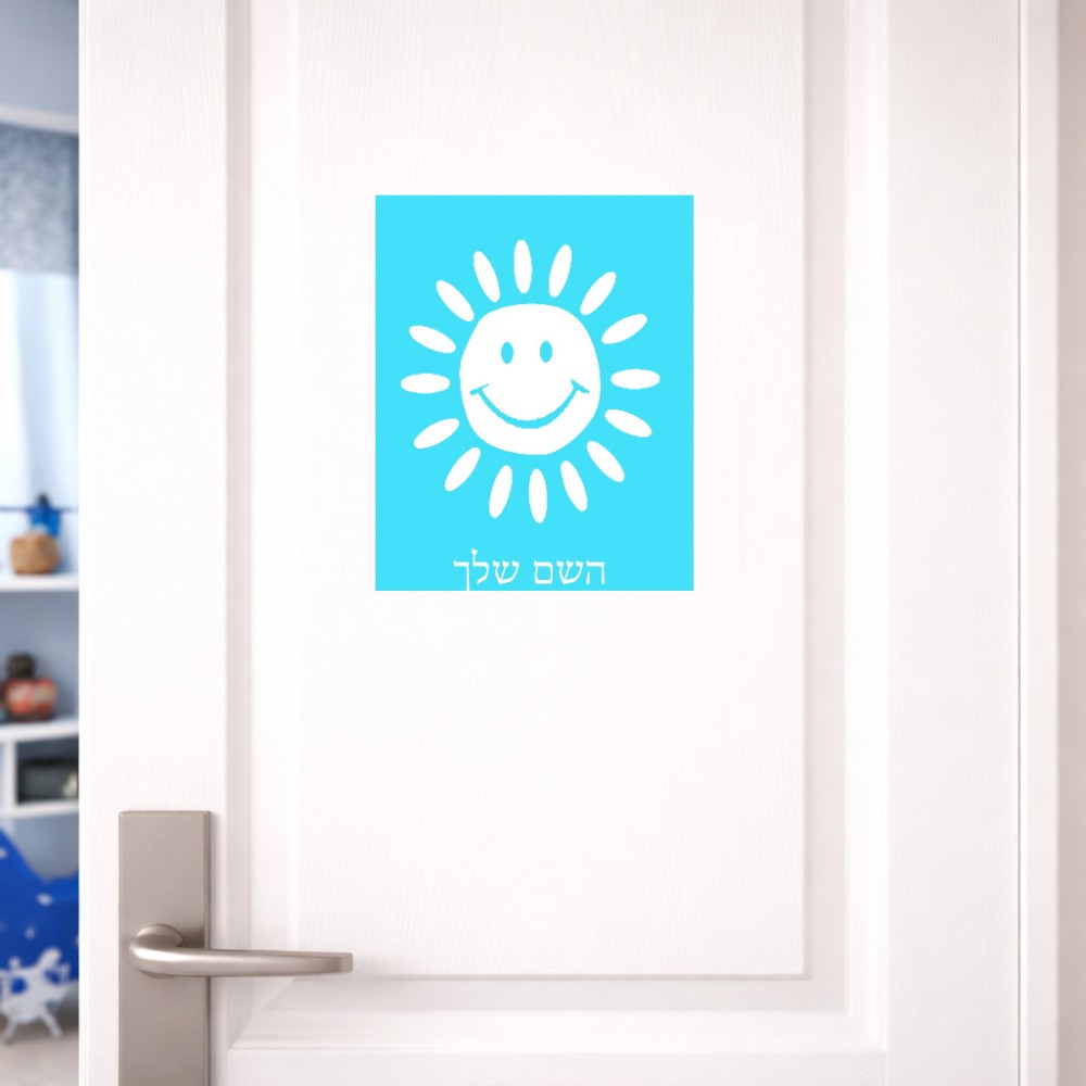 שלט אלומיניום גדול לחדר בעיצוב אישי עם השם שלך בעיצוב שמש גודל השלט 20 × 25 ס"מ. את השם המבוקש ניתן לציין בהזמנה, אם לא צויין אנחנו ניצור קשר לבירור.