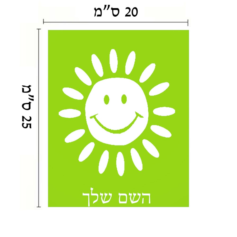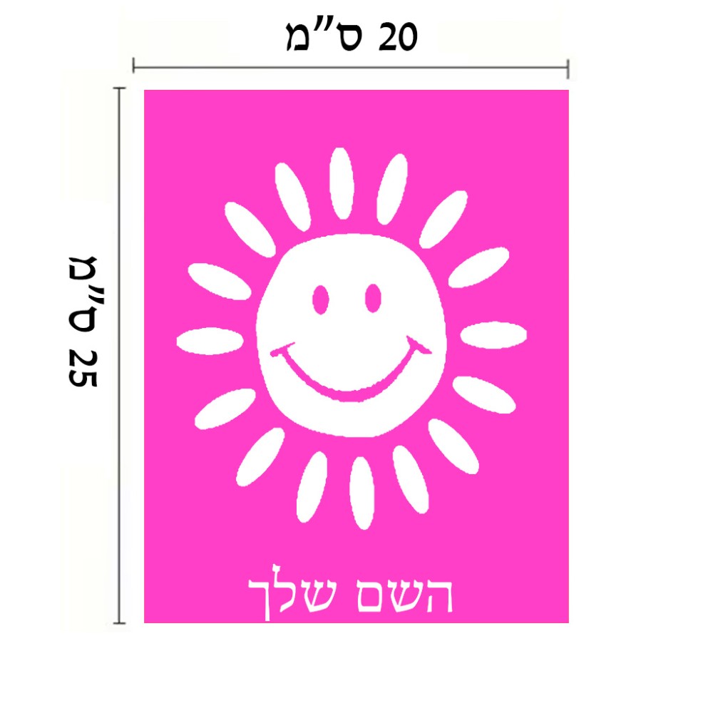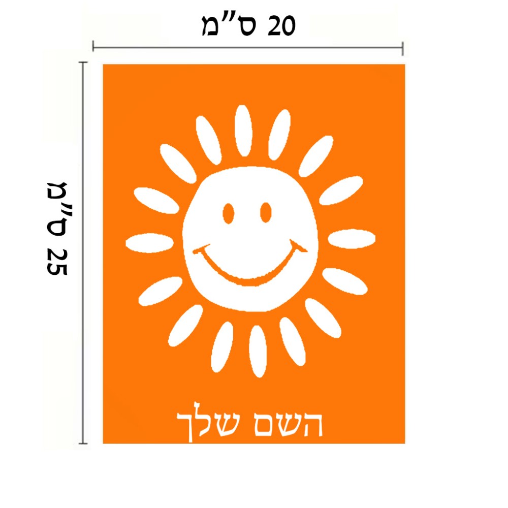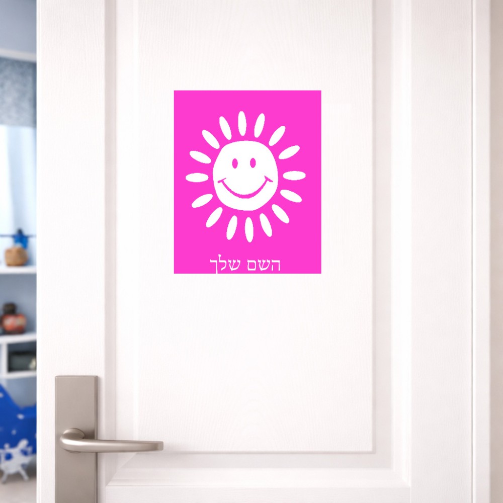 שלט אלומיניום גדול לחדר בעיצוב אישי עם השם שלך בעיצוב שמש גודל השלט 20 × 25 ס"מ. את השם המבוקש ניתן לציין בהזמנה, אם לא צויין אנחנו ניצור קשר לבירור.