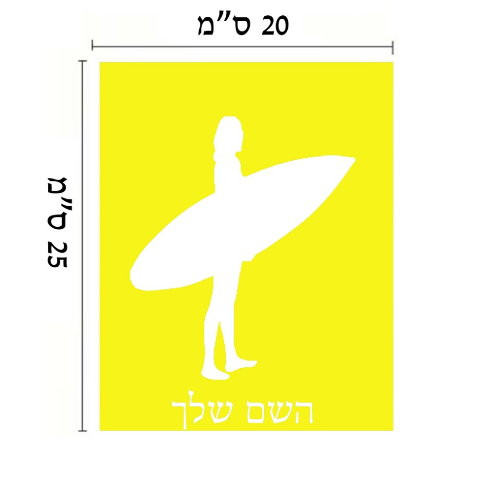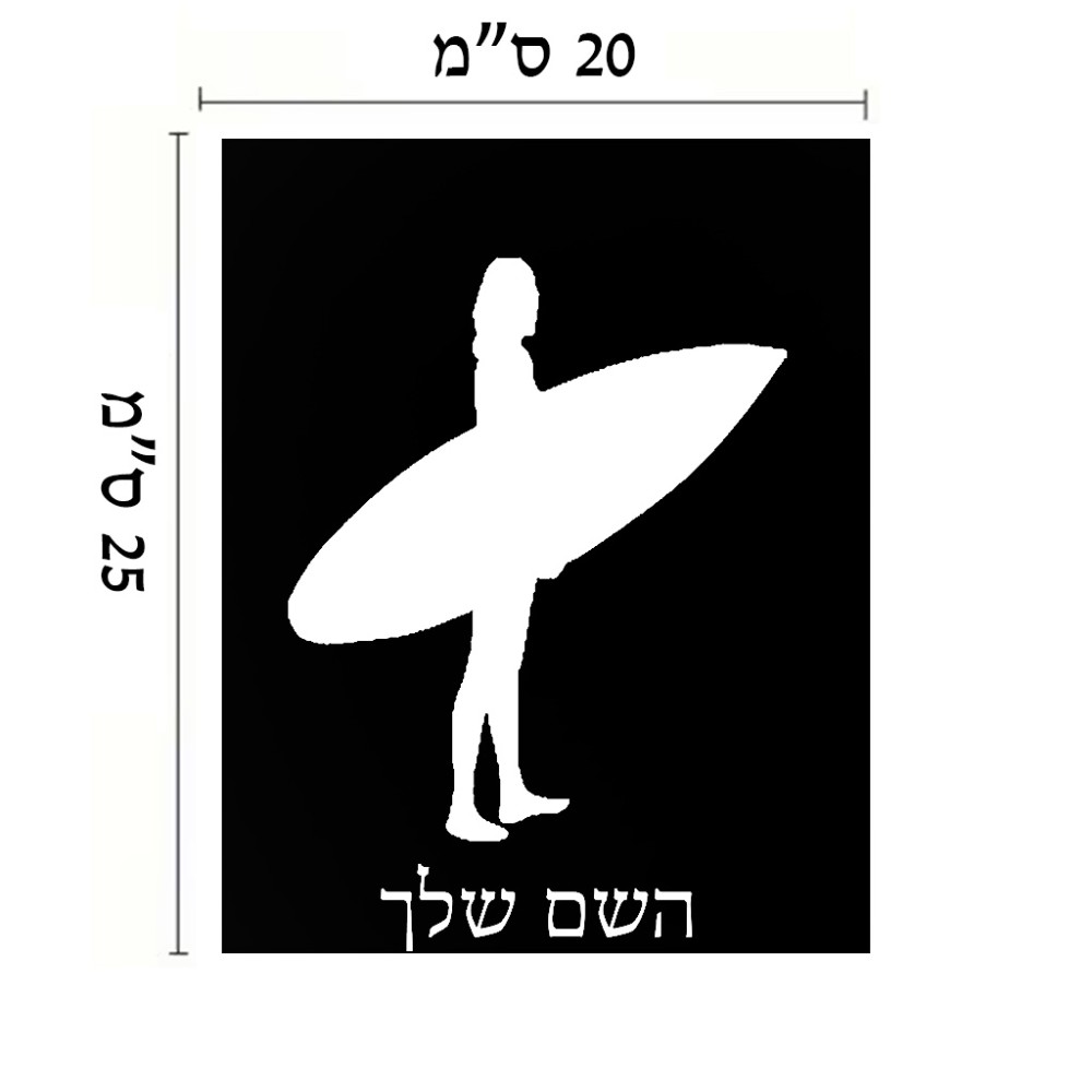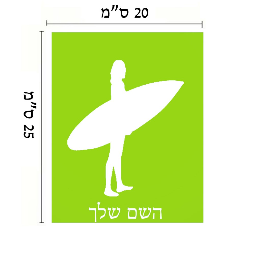 שלט אלומיניום גדול לחדר בעיצוב אישי עם השם שלך בעיצוב גלישה - גלישה גודל השלט 20 × 25 ס"מ. את השם המבוקש ניתן לציין בהזמנה, אם לא צויין אנחנו ניצור קשר לבירור.