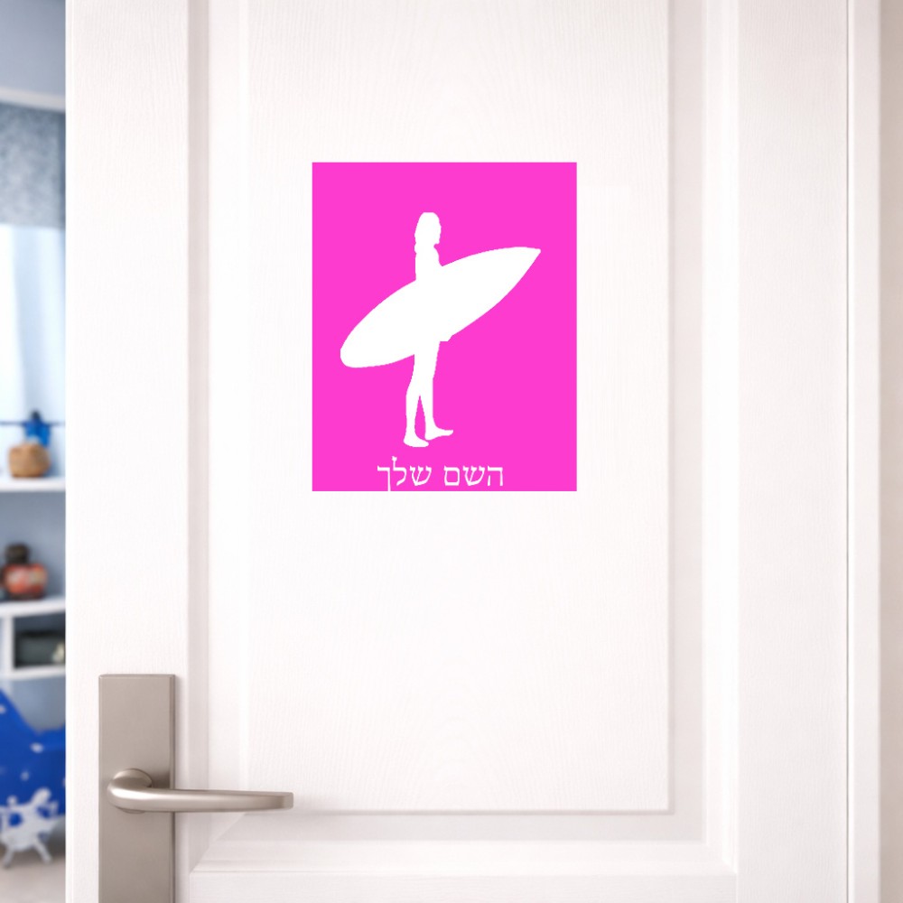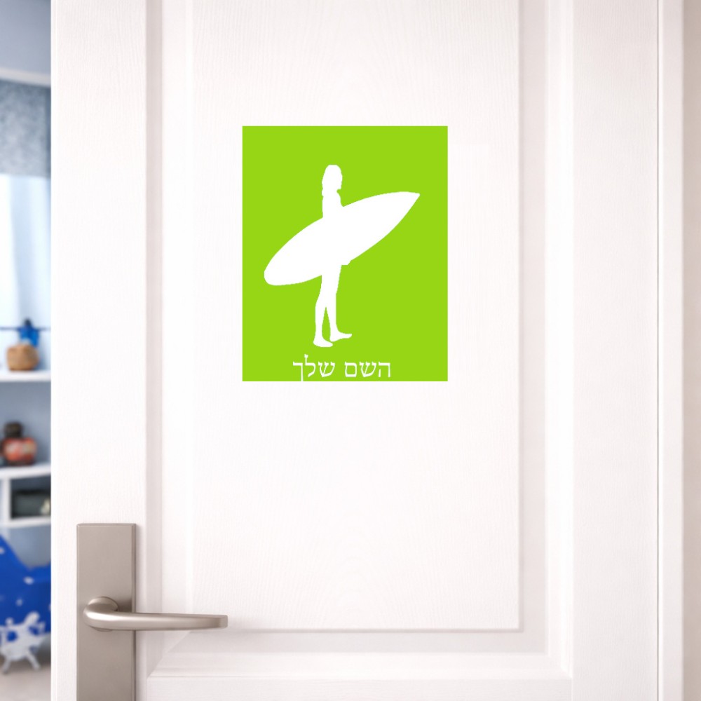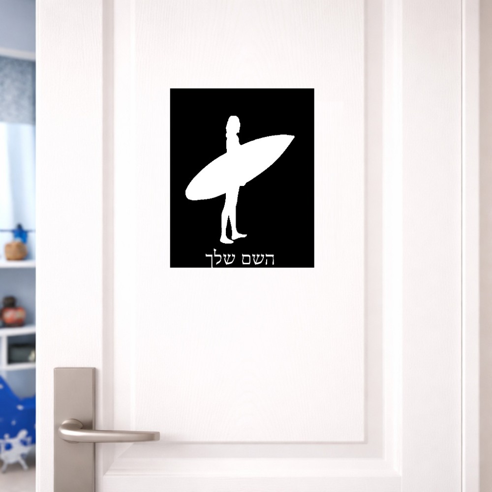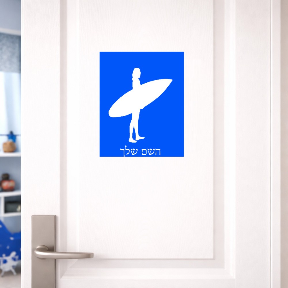 שלט אלומיניום גדול לחדר בעיצוב אישי עם השם שלך בעיצוב גלישה - גלישה גודל השלט 20 × 25 ס"מ. את השם המבוקש ניתן לציין בהזמנה, אם לא צויין אנחנו ניצור קשר לבירור.