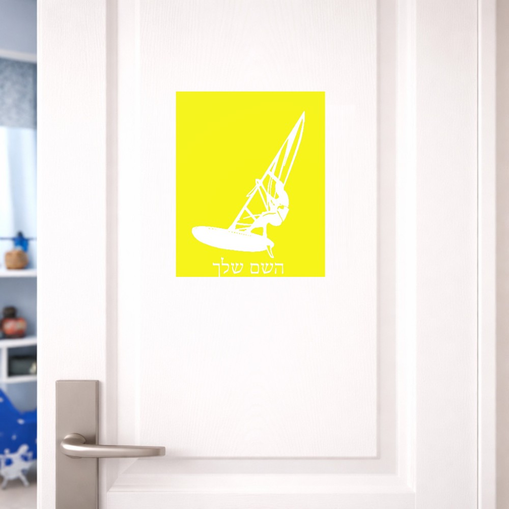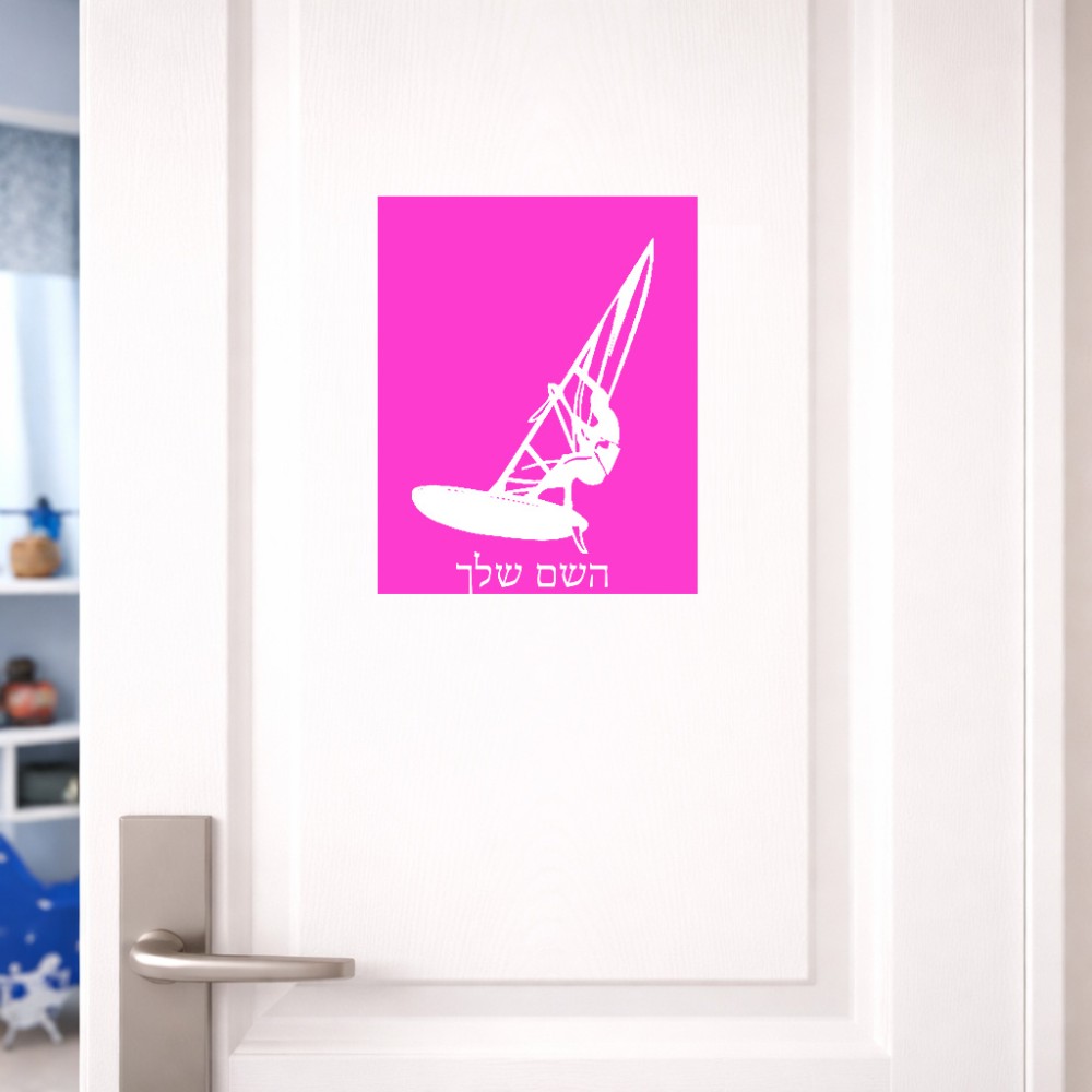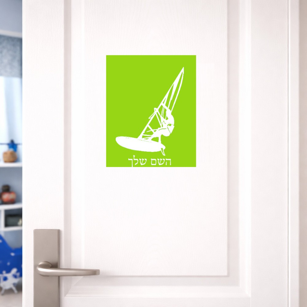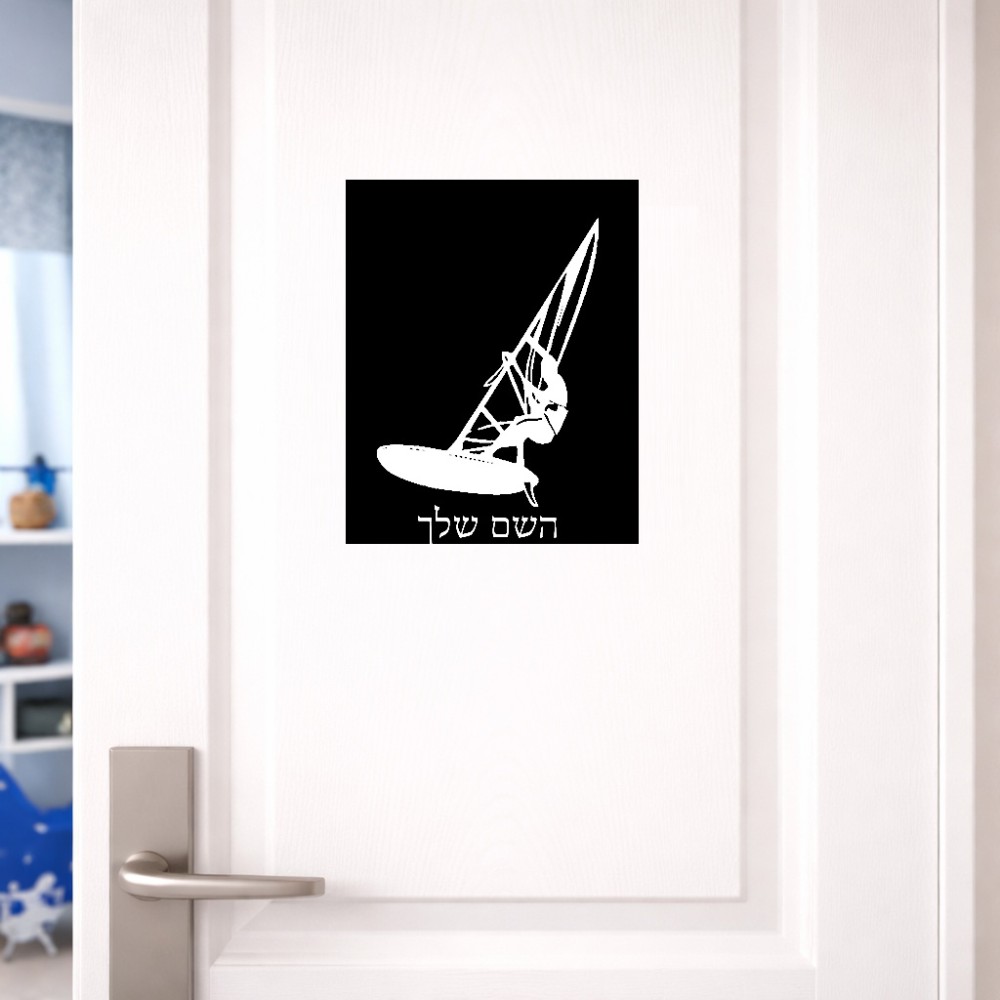 שלט אלומיניום גדול לחדר בעיצוב אישי עם השם שלך בעיצוב לגלוש - גלישה - שייט גודל השלט 20 × 25 ס"מ. את השם המבוקש ניתן לציין בהזמנה, אם לא צויין אנחנו ניצור קשר לבירור.