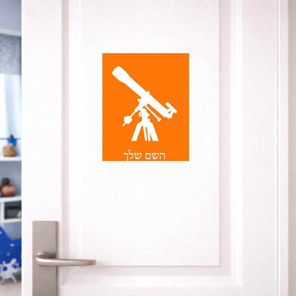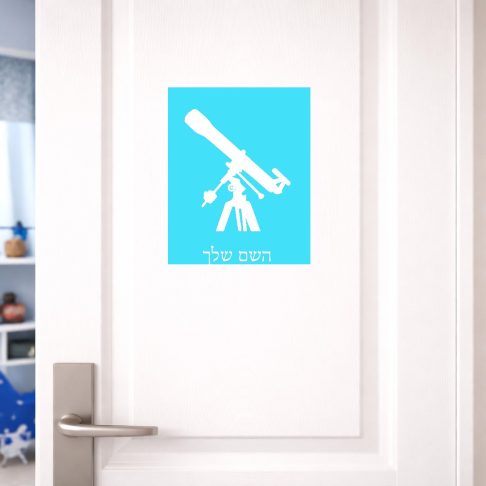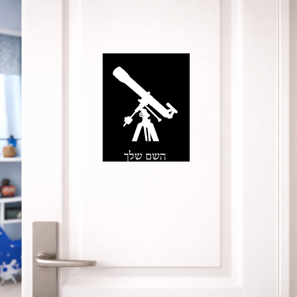 שלט אלומיניום גדול לחדר בעיצוב אישי עם השם שלך בעיצוב טלסקופ גודל השלט 20 × 25 ס"מ. את השם המבוקש ניתן לציין בהזמנה, אם לא צויין אנחנו ניצור קשר לבירור.