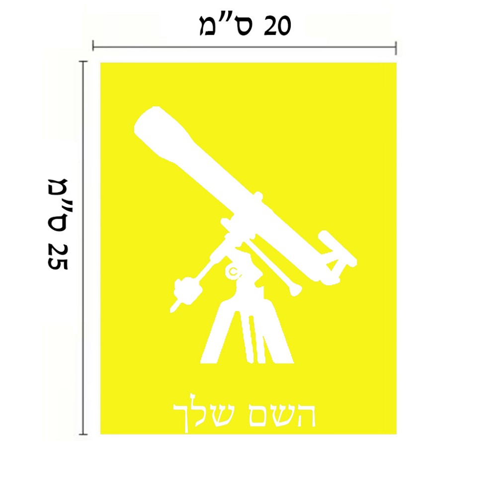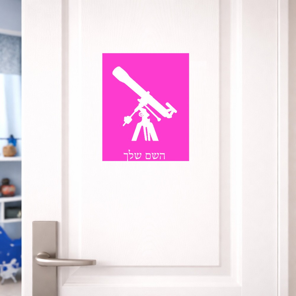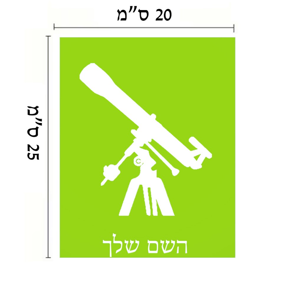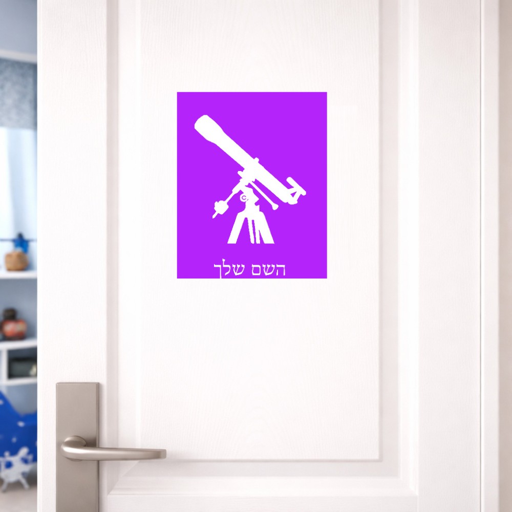 שלט אלומיניום גדול לחדר בעיצוב אישי עם השם שלך בעיצוב טלסקופ גודל השלט 20 × 25 ס"מ. את השם המבוקש ניתן לציין בהזמנה, אם לא צויין אנחנו ניצור קשר לבירור.