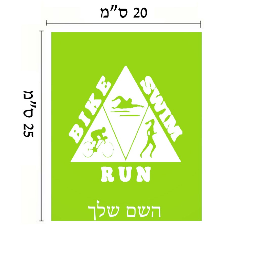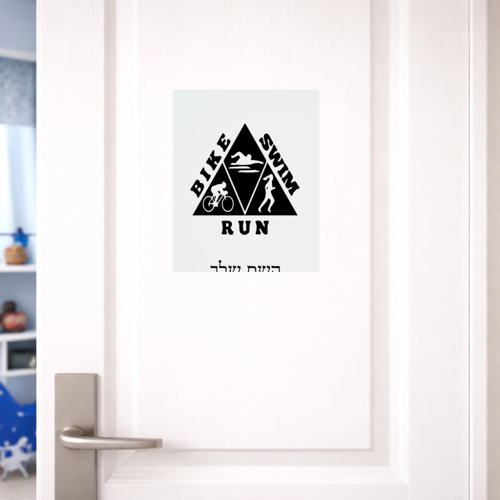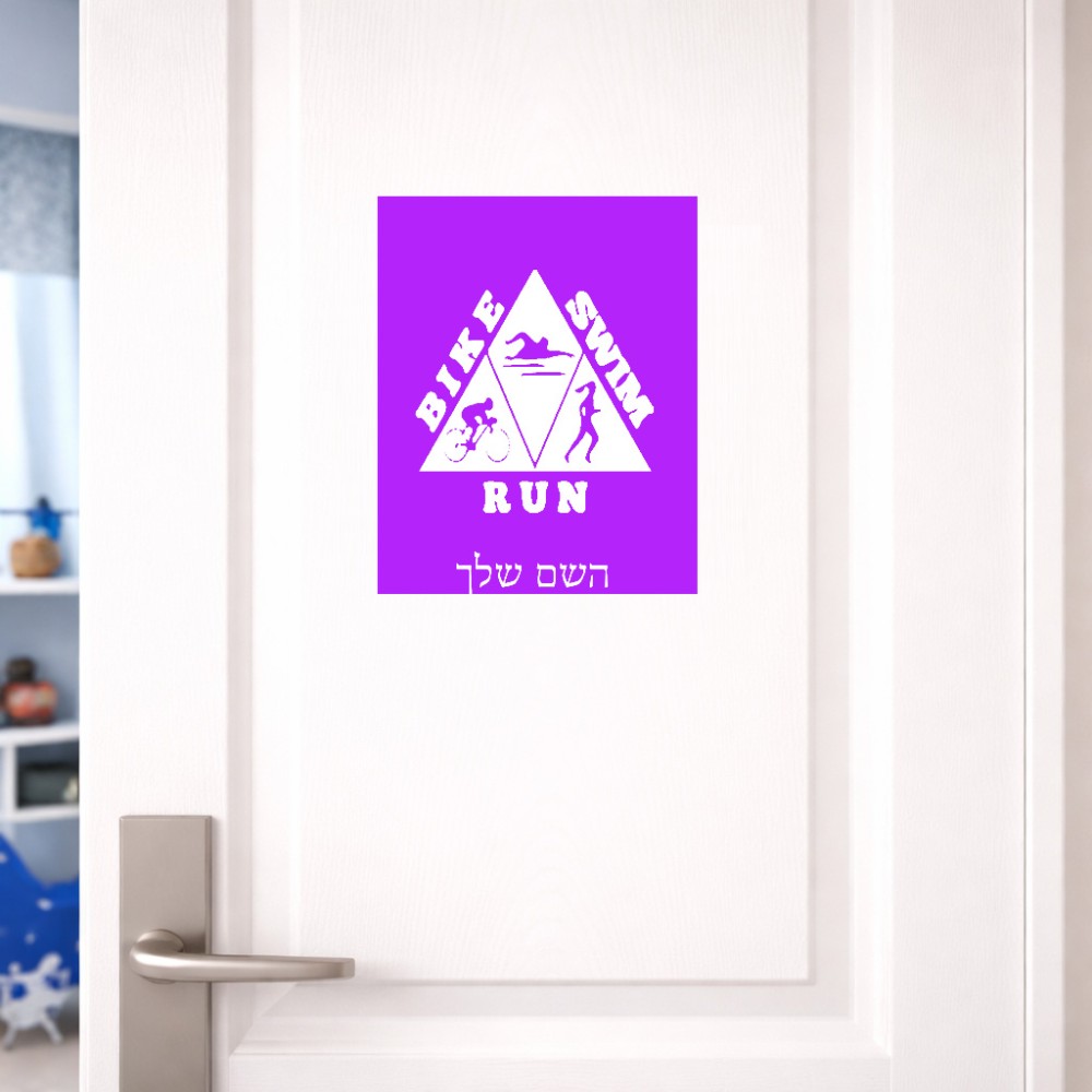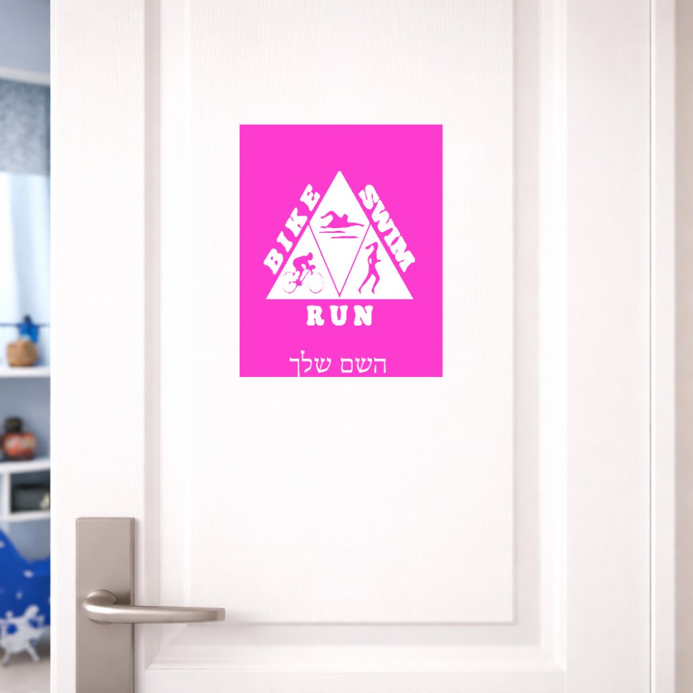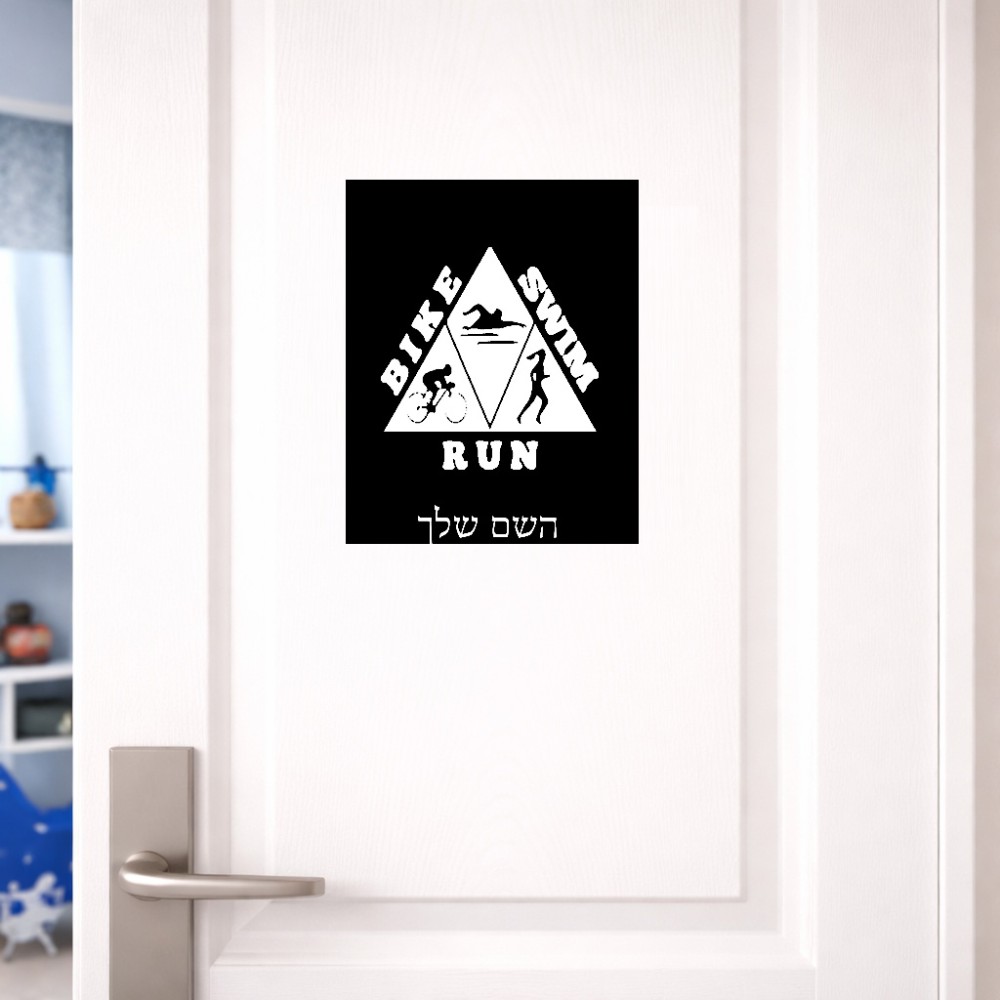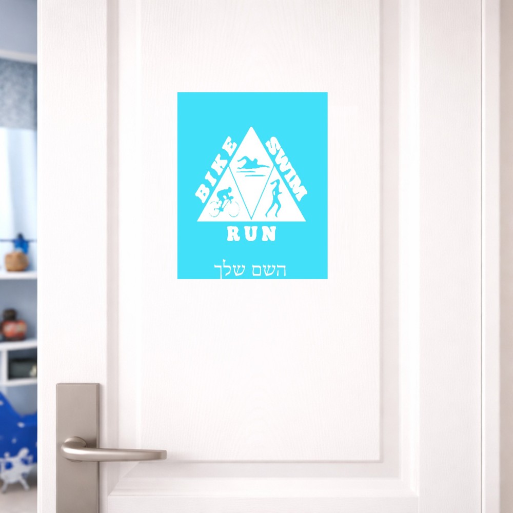 שלט אלומיניום גדול לחדר בעיצוב אישי עם השם שלך בעיצוב טריאתלון גודל השלט 20 × 25 ס"מ. את השם המבוקש ניתן לציין בהזמנה, אם לא צויין אנחנו ניצור קשר לבירור.