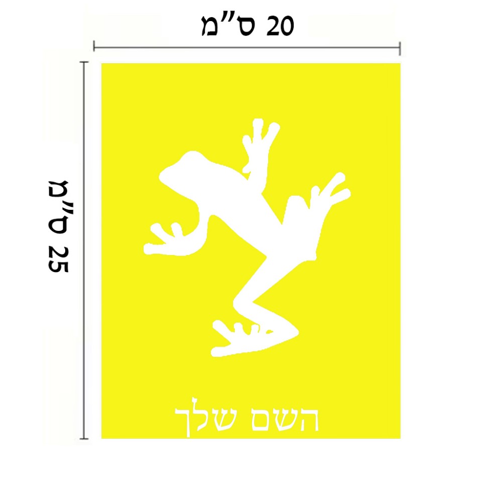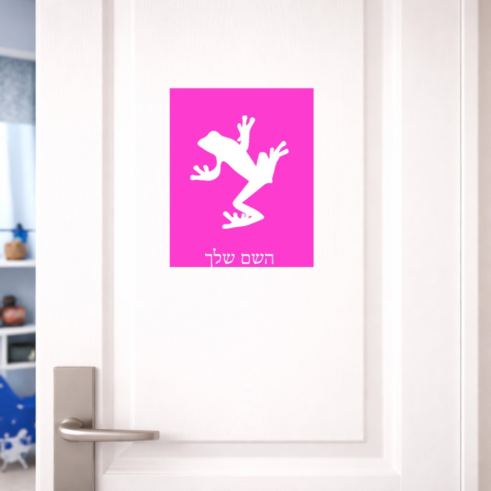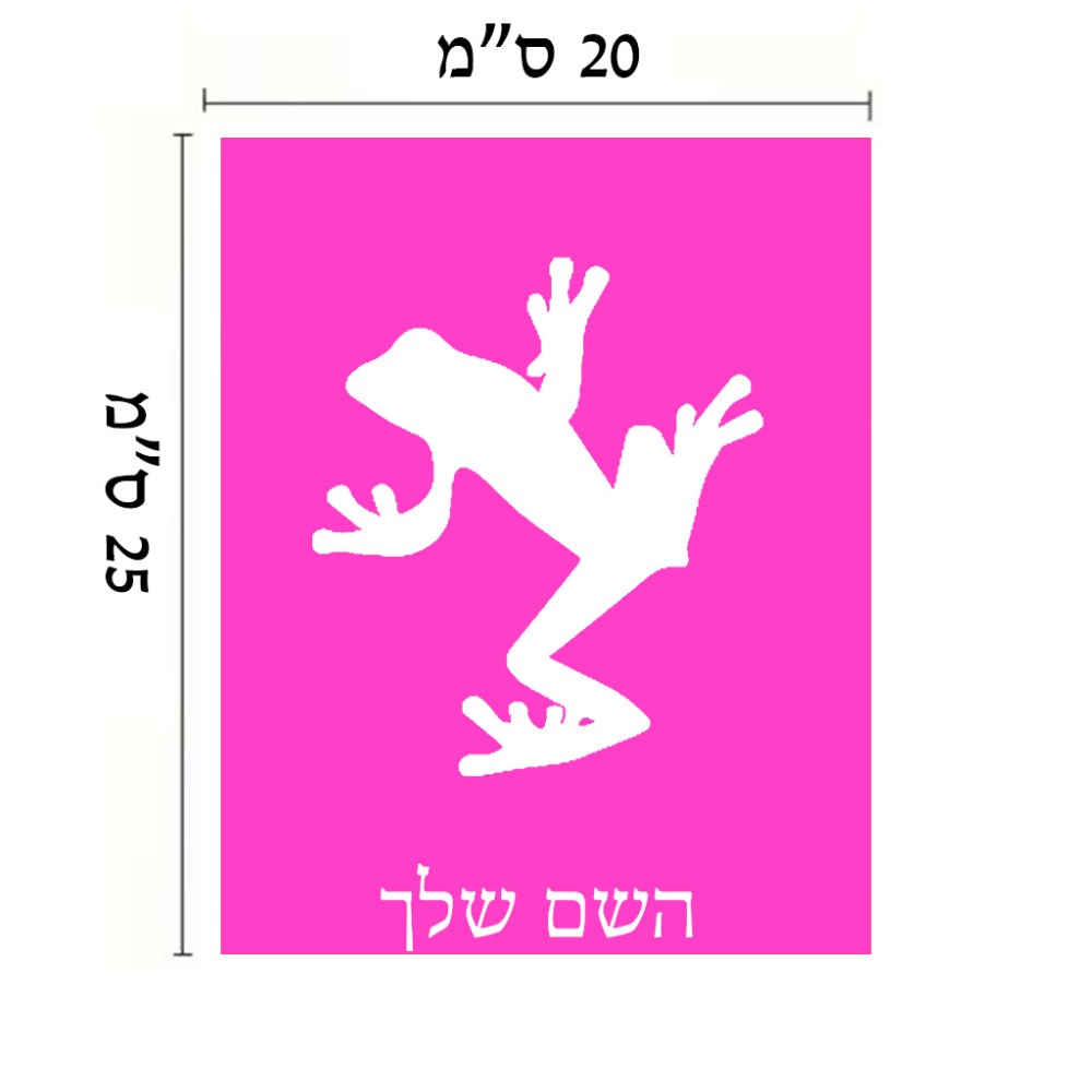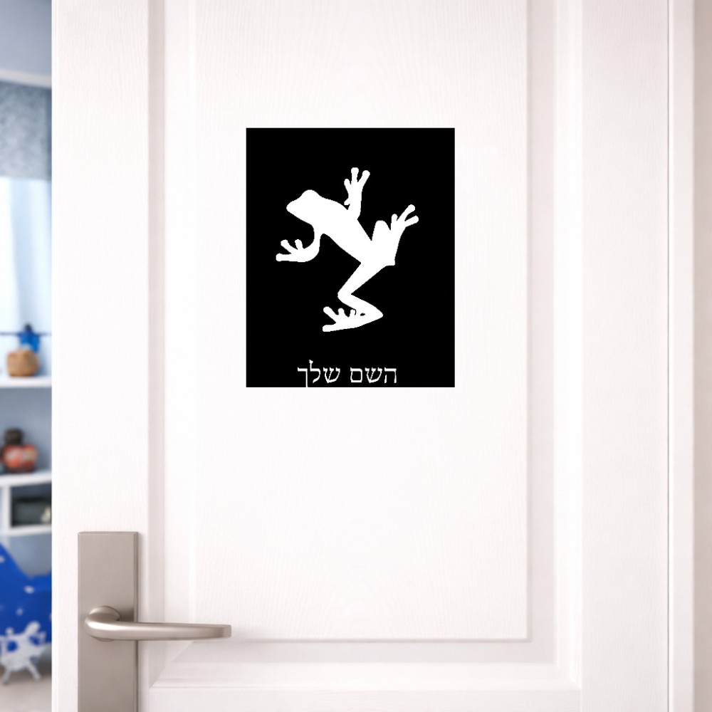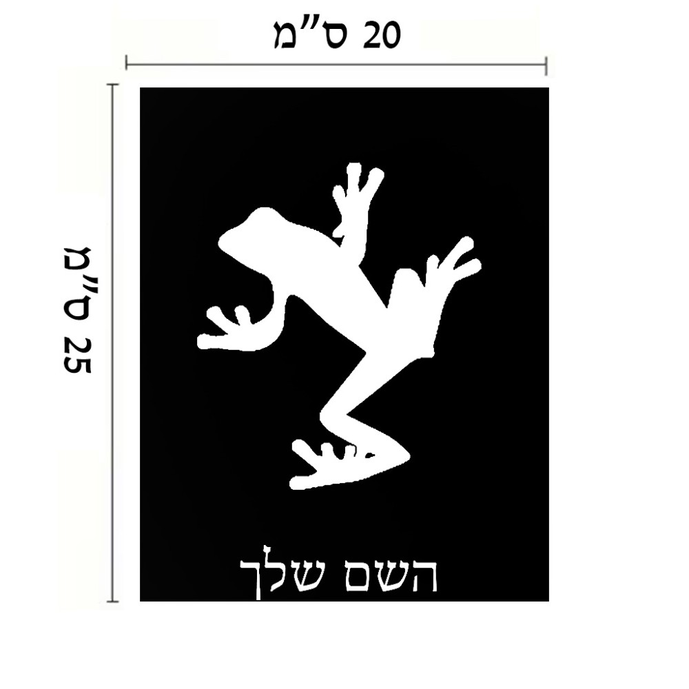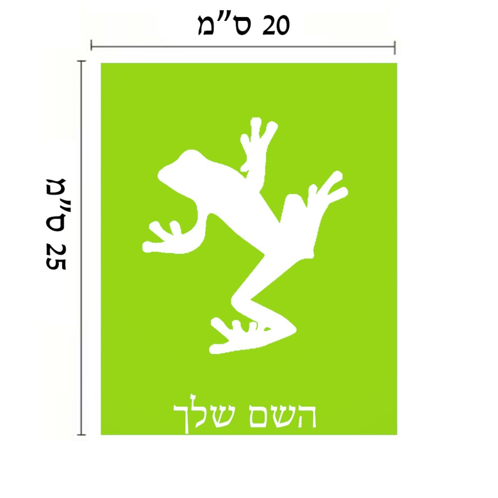 שלט אלומיניום גדול לחדר בעיצוב אישי עם השם שלך בעיצוב צפרדע טרופית גודל השלט 20 × 25 ס"מ. את השם המבוקש ניתן לציין בהזמנה, אם לא צויין אנחנו ניצור קשר לבירור.