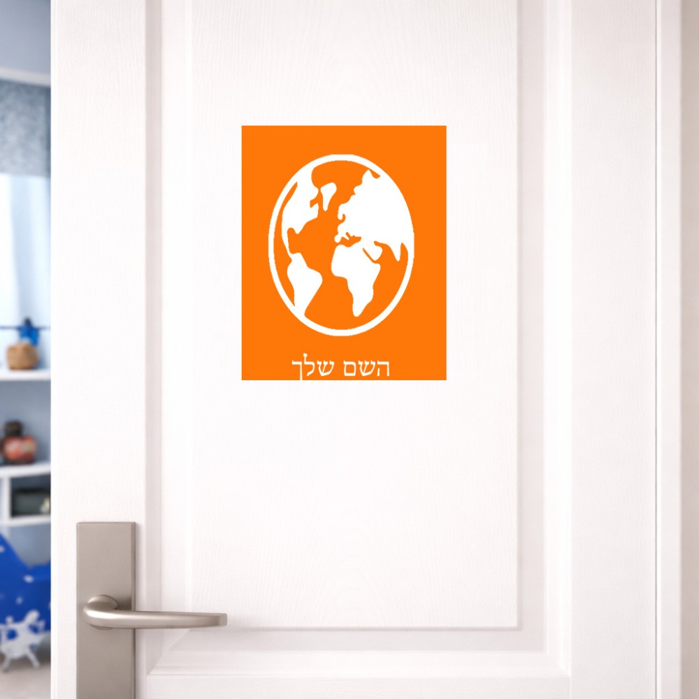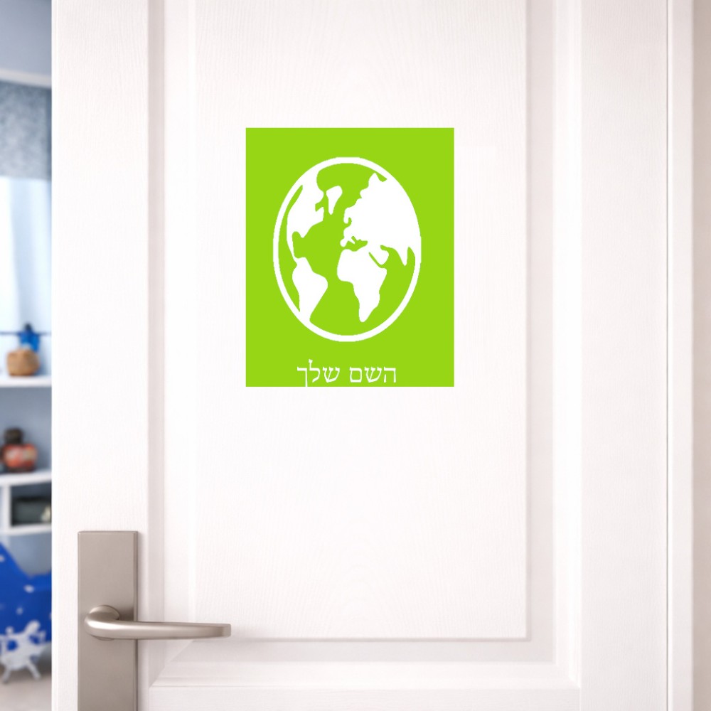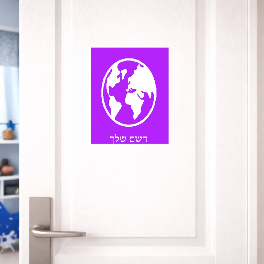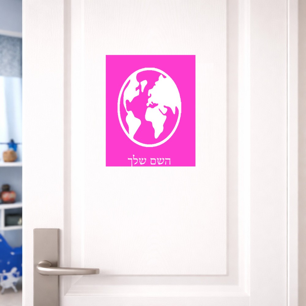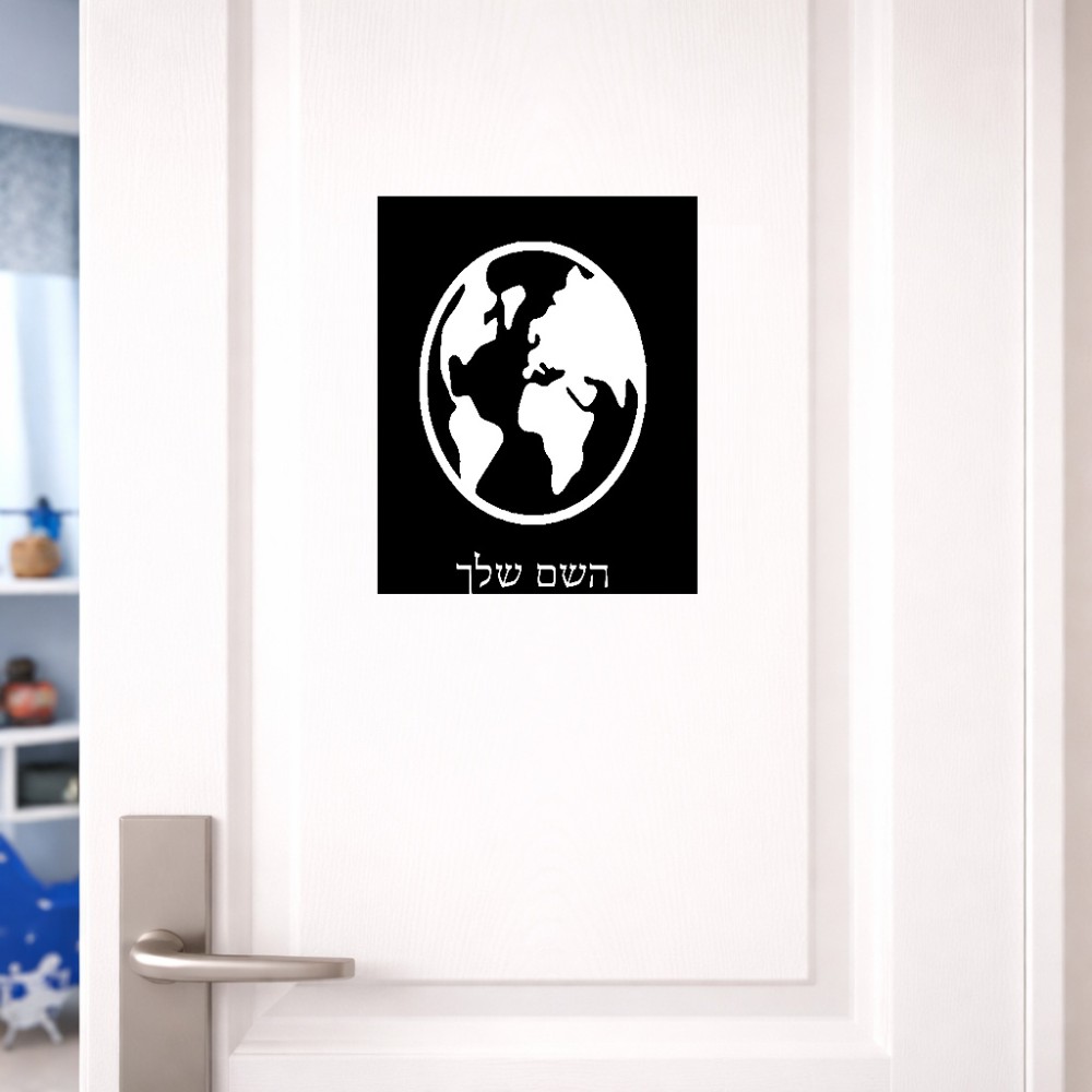 שלט אלומיניום גדול לחדר בעיצוב אישי עם השם שלך בעיצוב עולם גודל השלט 20 × 25 ס"מ. את השם המבוקש ניתן לציין בהזמנה, אם לא צויין אנחנו ניצור קשר לבירור.