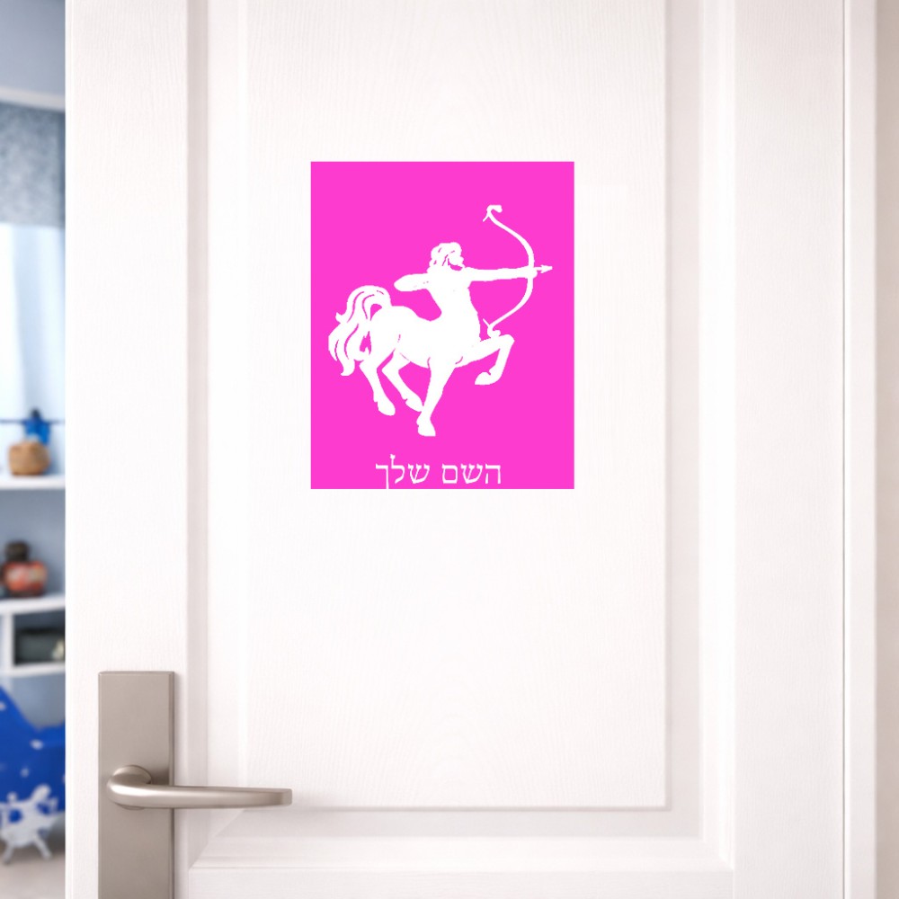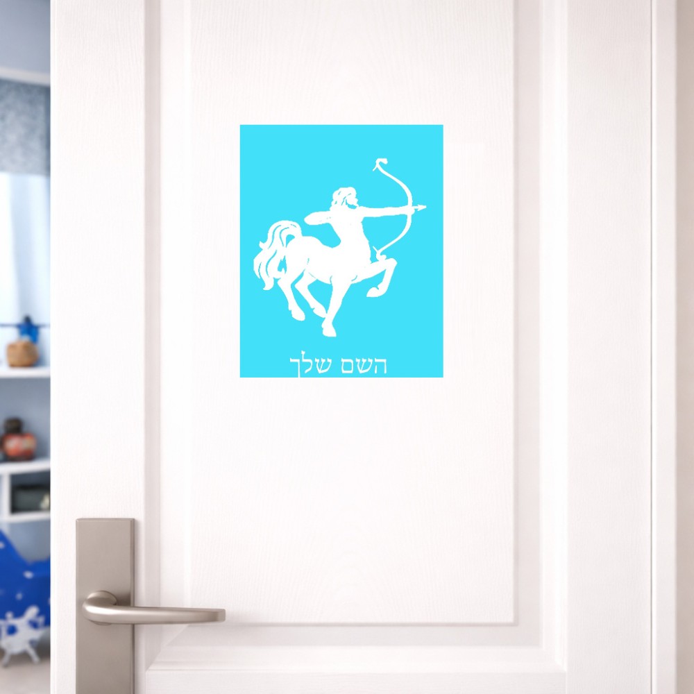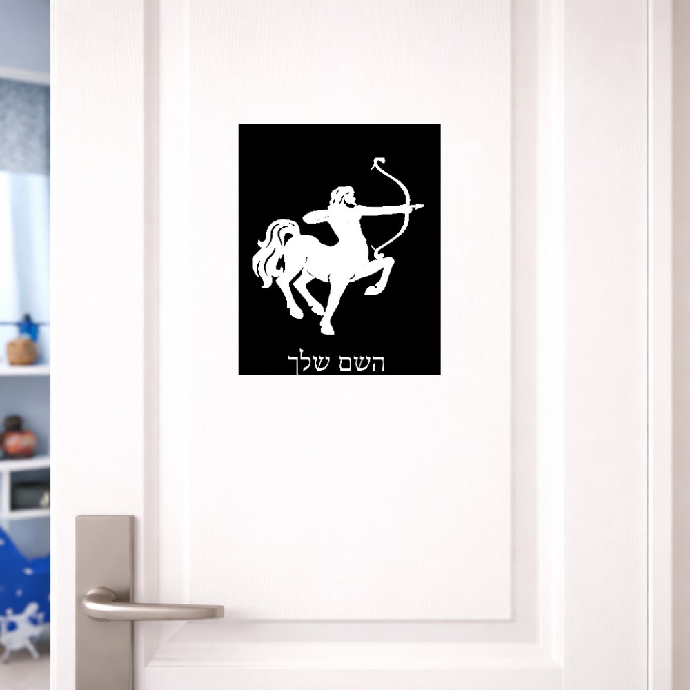 שלט אלומיניום גדול לחדר בעיצוב אישי עם השם שלך בעיצוב מזלות - קשת גודל השלט 20 × 25 ס"מ. את השם המבוקש ניתן לציין בהזמנה, אם לא צויין אנחנו ניצור קשר לבירור.