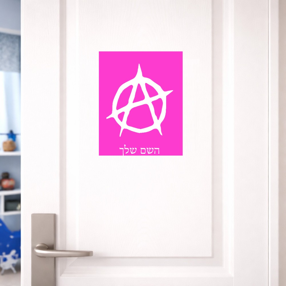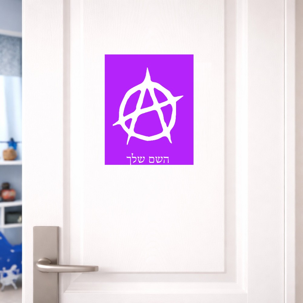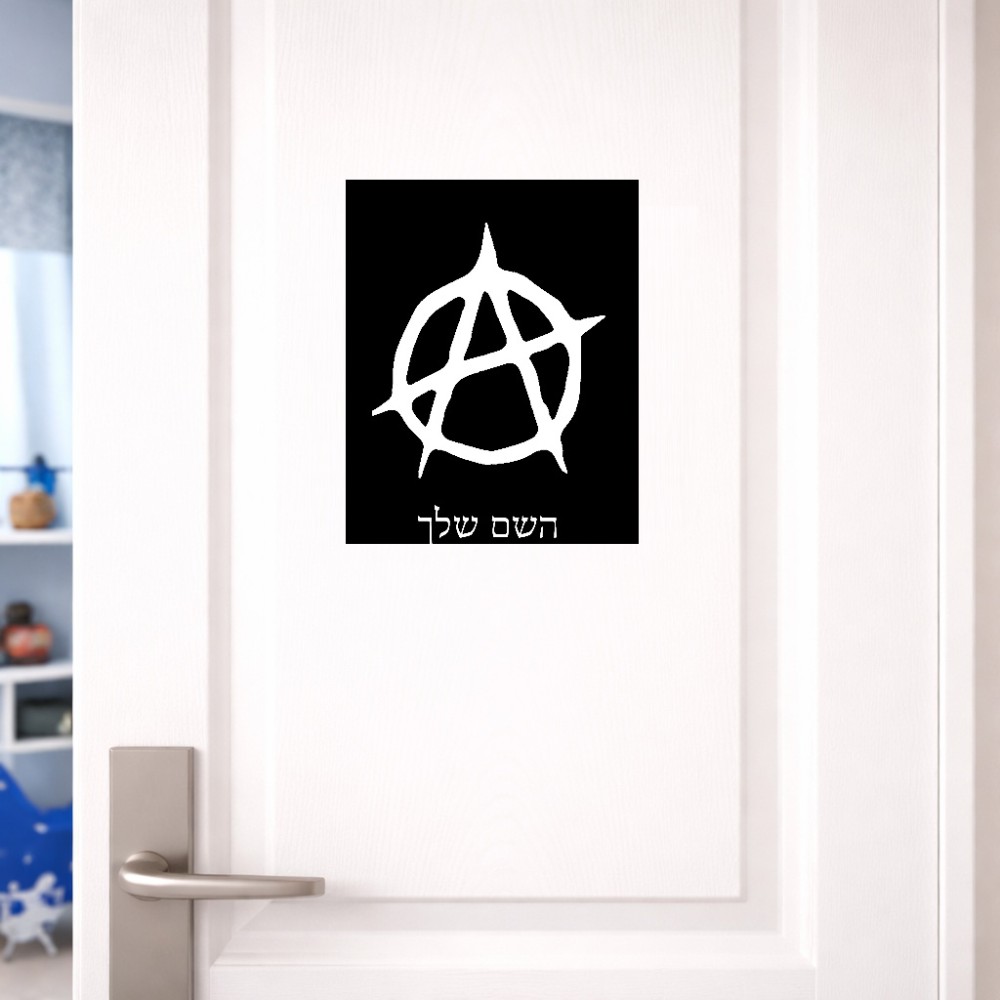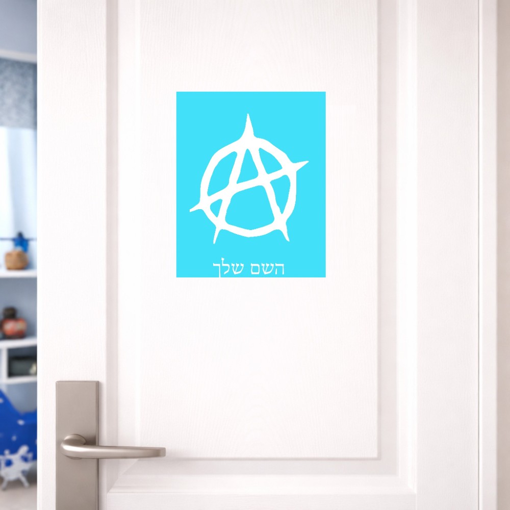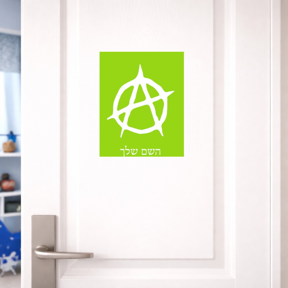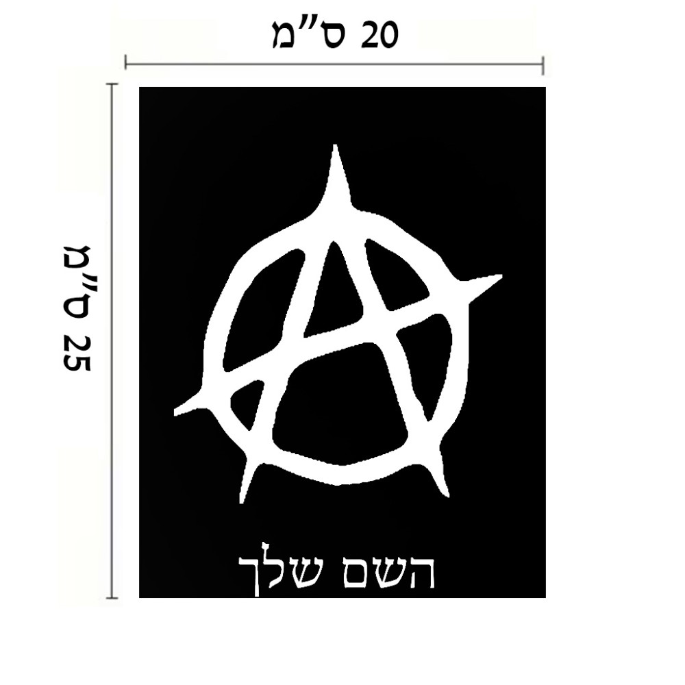 שלט אלומיניום גדול לחדר בעיצוב אישי עם השם שלך בעיצוב אנרכיה גודל השלט 20 × 25 ס"מ. את השם המבוקש ניתן לציין בהזמנה, אם לא צויין אנחנו ניצור קשר לבירור.