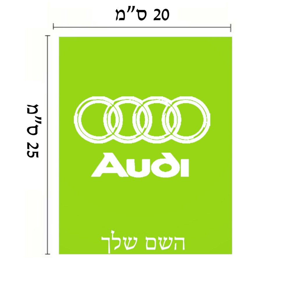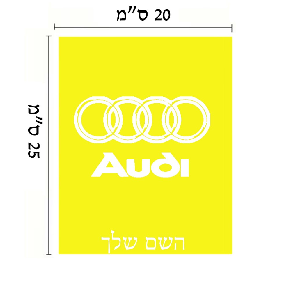 שלט אלומיניום גדול לחדר בעיצוב אישי עם השם שלך בעיצוב אאודי גודל השלט 20 × 25 ס"מ. את השם המבוקש ניתן לציין בהזמנה, אם לא צויין אנחנו ניצור קשר לבירור.
