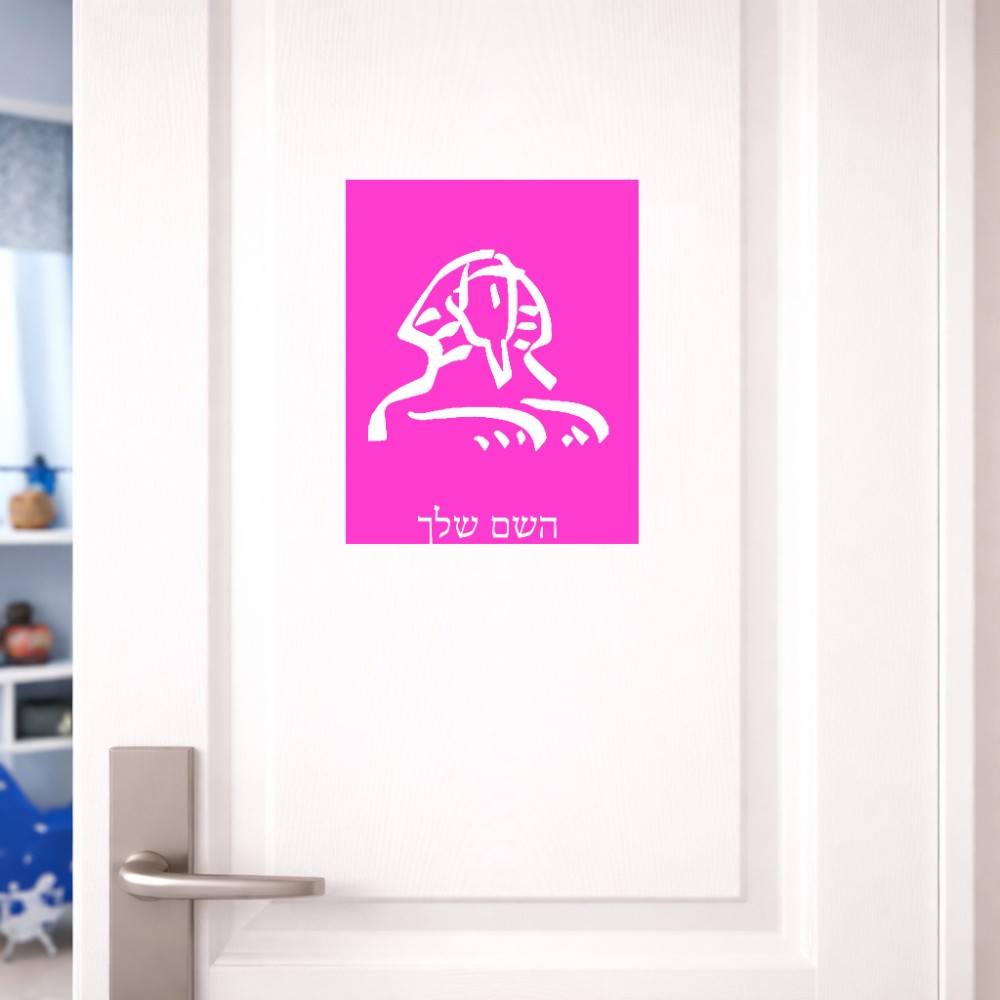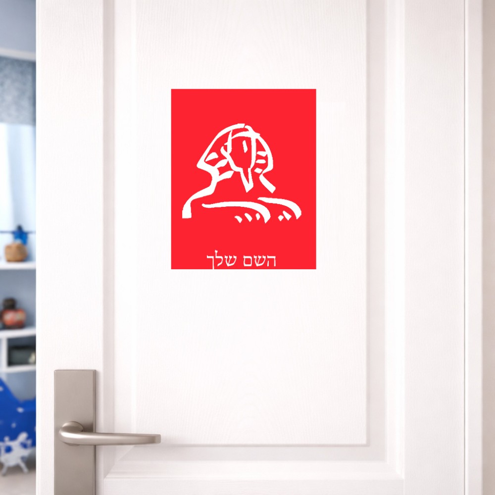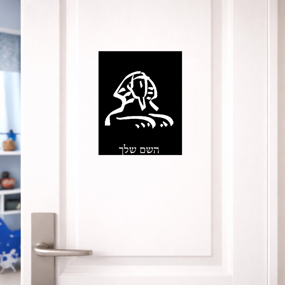 שלט אלומיניום גדול לחדר בעיצוב אישי עם השם שלך בעיצוב ספינקס מצרים גודל השלט 20 × 25 ס"מ. את השם המבוקש ניתן לציין בהזמנה, אם לא צויין אנחנו ניצור קשר לבירור.