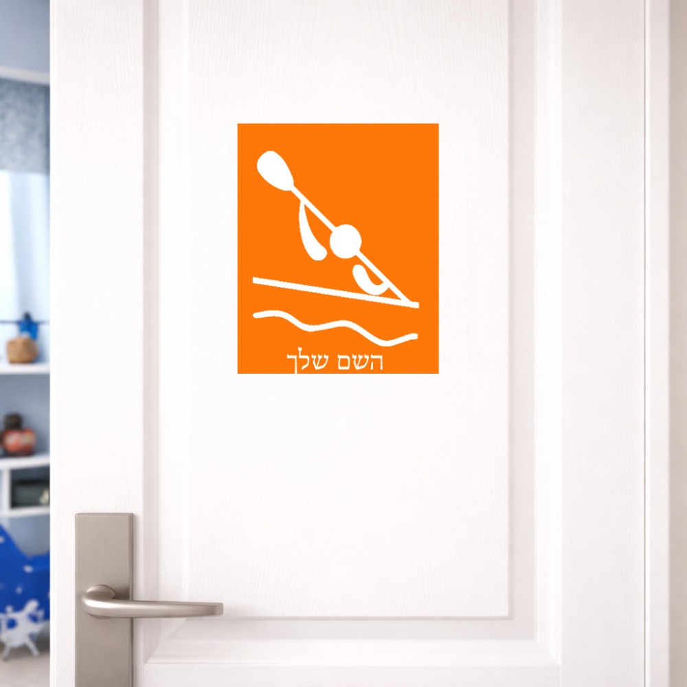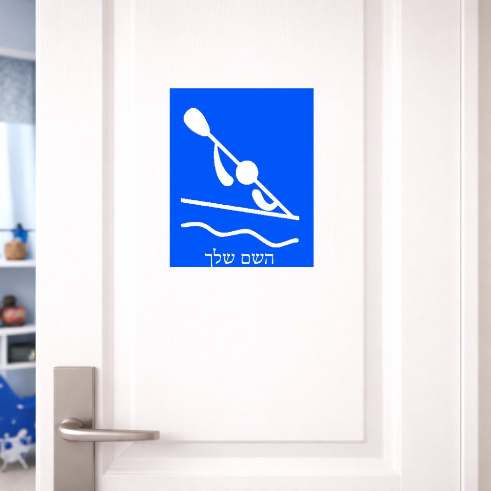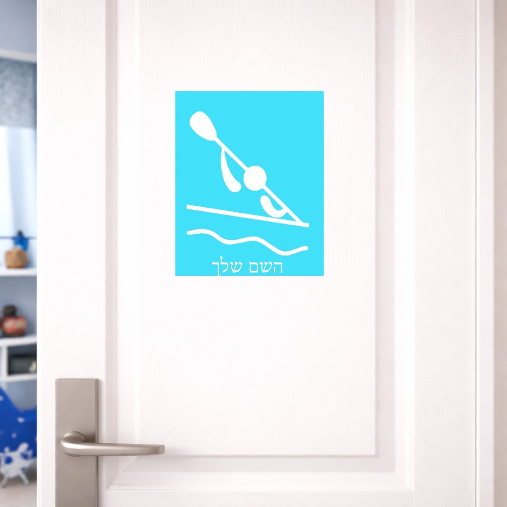 שלט אלומיניום גדול לחדר בעיצוב אישי עם השם שלך בעיצוב קיאק אולימפי גודל השלט 20 × 25 ס"מ. את השם המבוקש ניתן לציין בהזמנה, אם לא צויין אנחנו ניצור קשר לבירור.