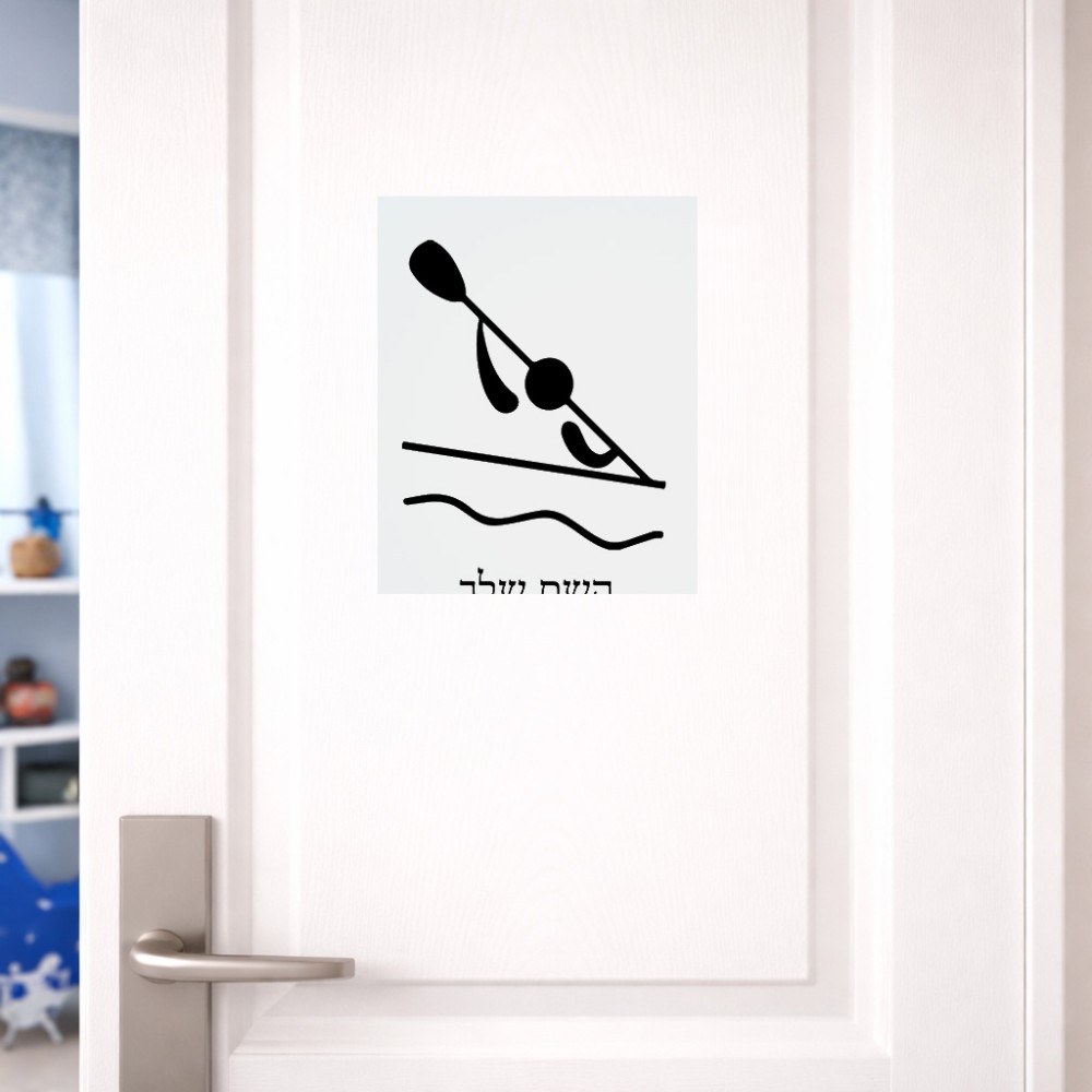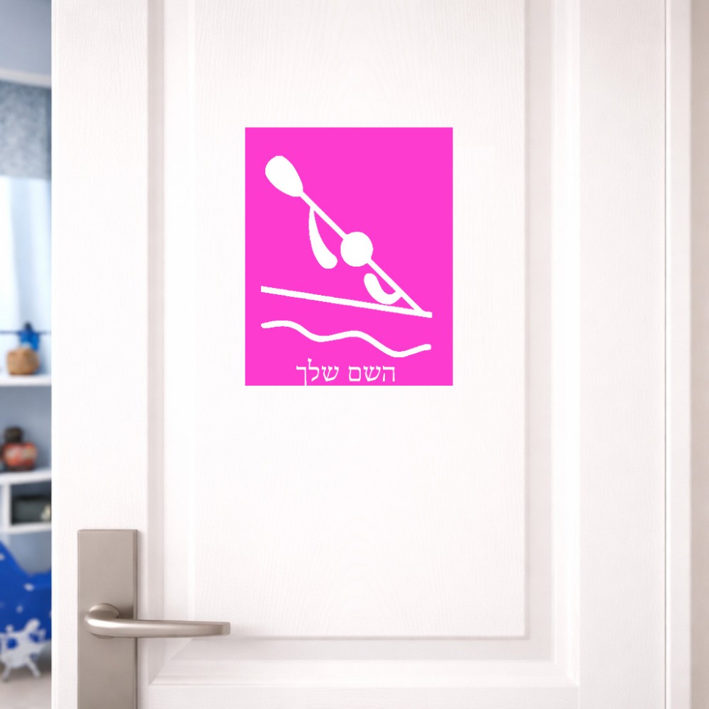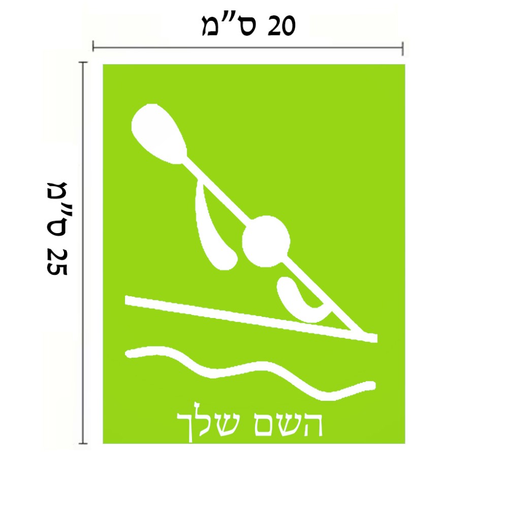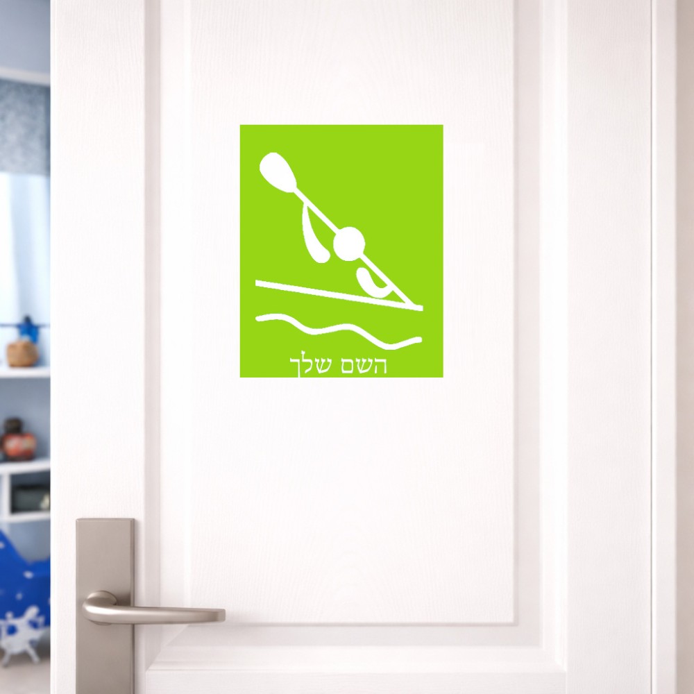 שלט אלומיניום גדול לחדר בעיצוב אישי עם השם שלך בעיצוב קיאק אולימפי גודל השלט 20 × 25 ס"מ. את השם המבוקש ניתן לציין בהזמנה, אם לא צויין אנחנו ניצור קשר לבירור.