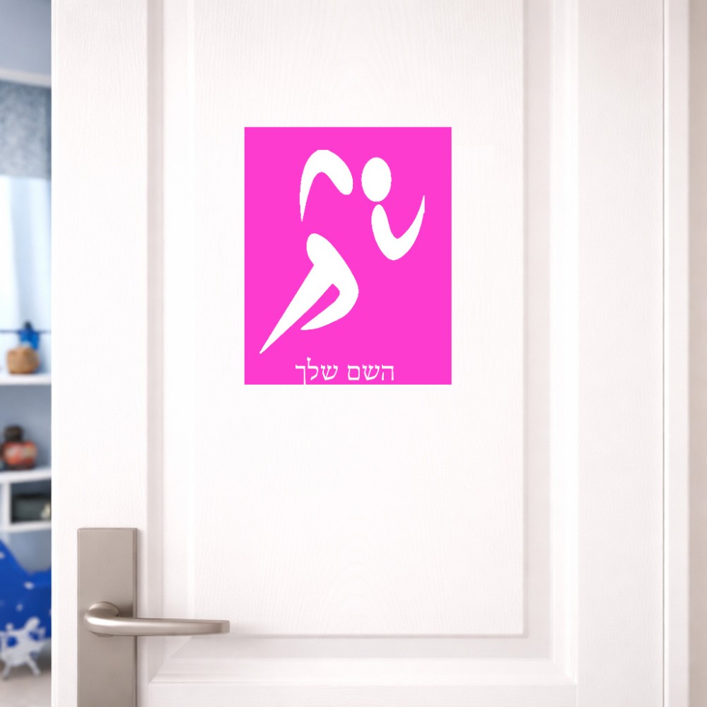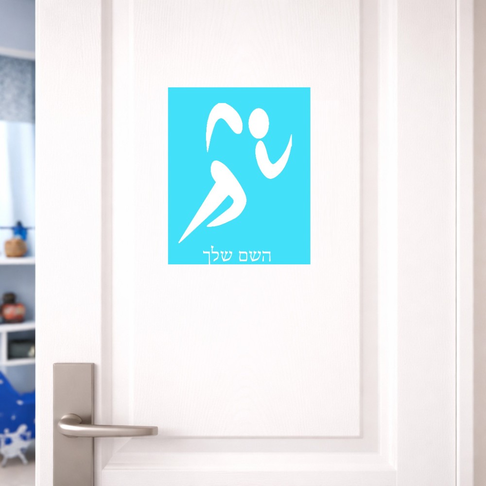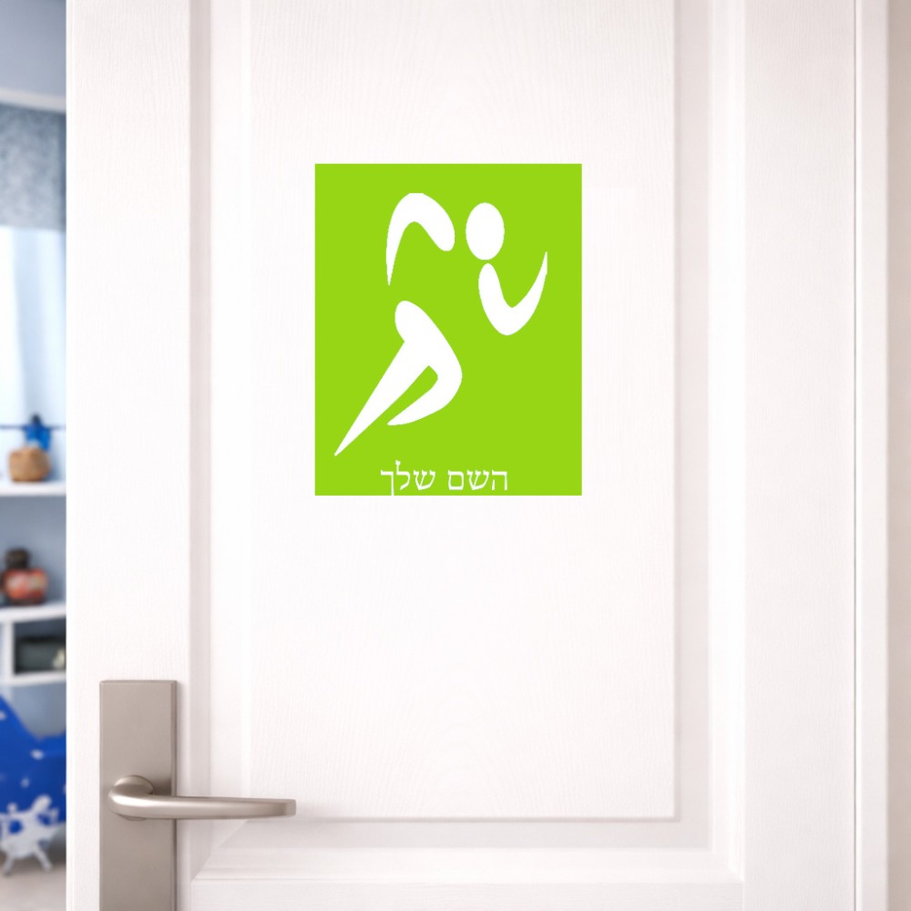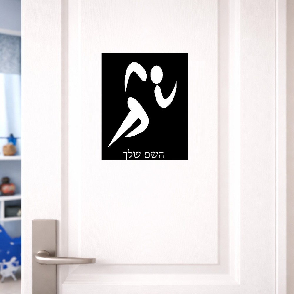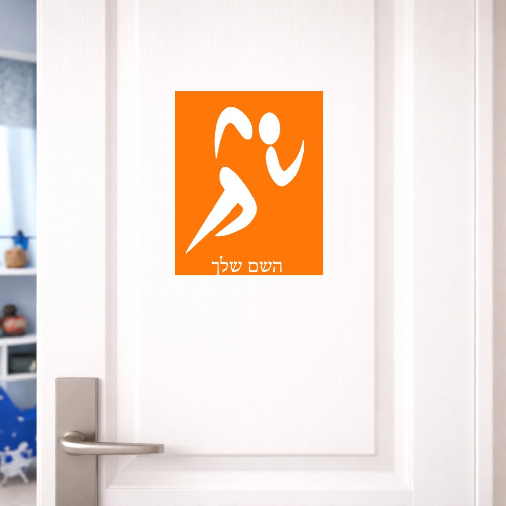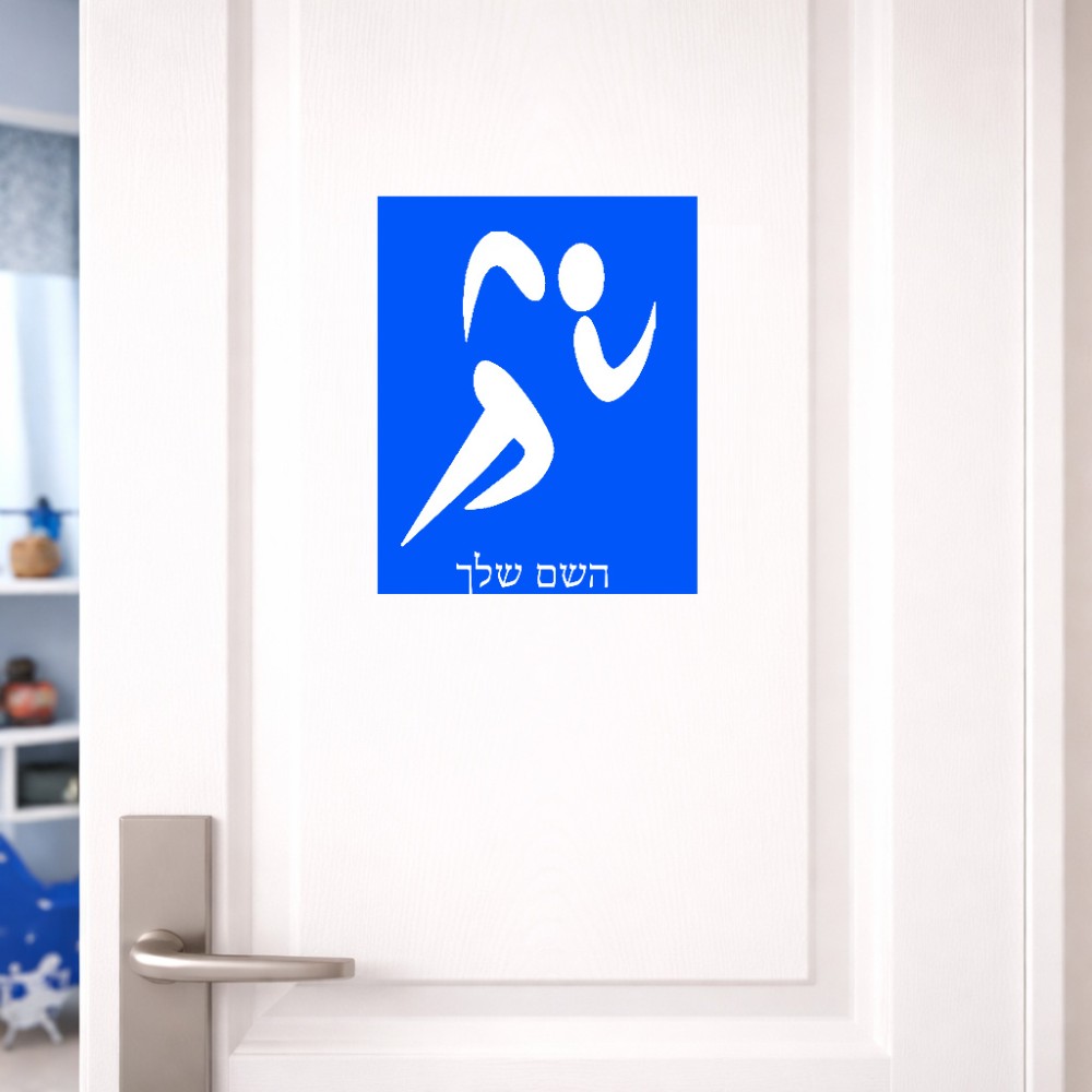 שלט אלומיניום גדול לחדר בעיצוב אישי עם השם שלך בעיצוב רצים אולימפיים גודל השלט 20 × 25 ס"מ. את השם המבוקש ניתן לציין בהזמנה, אם לא צויין אנחנו ניצור קשר לבירור.