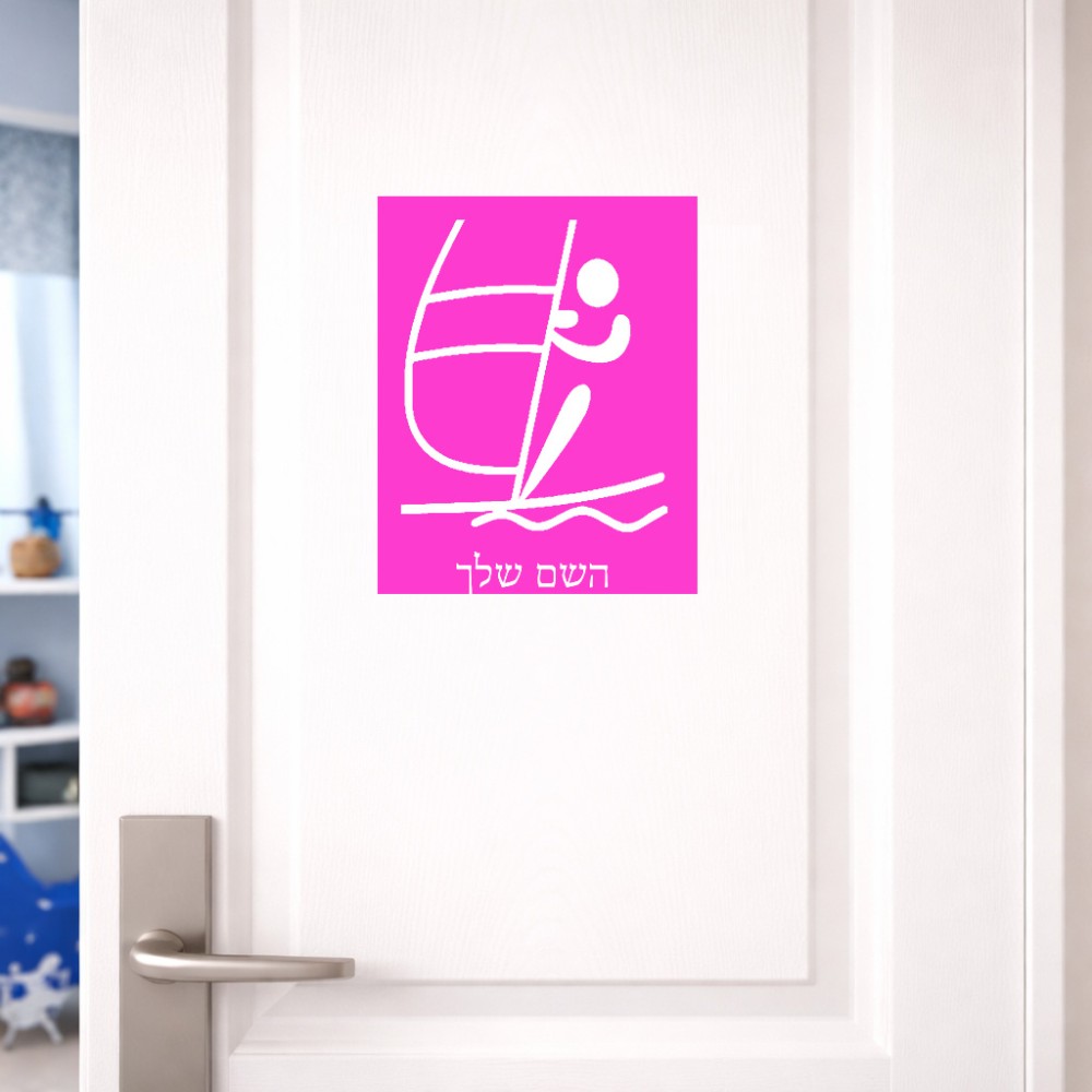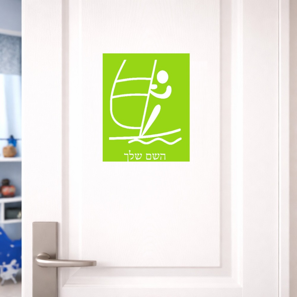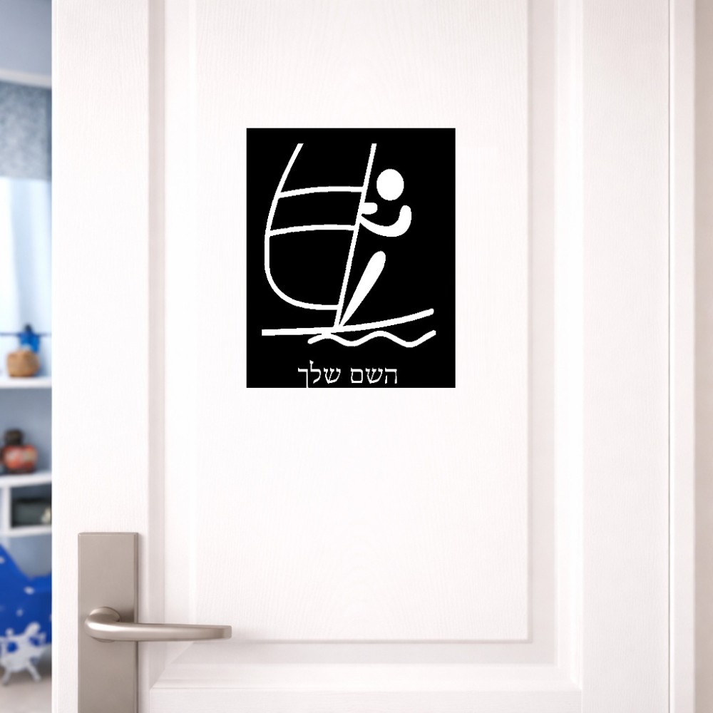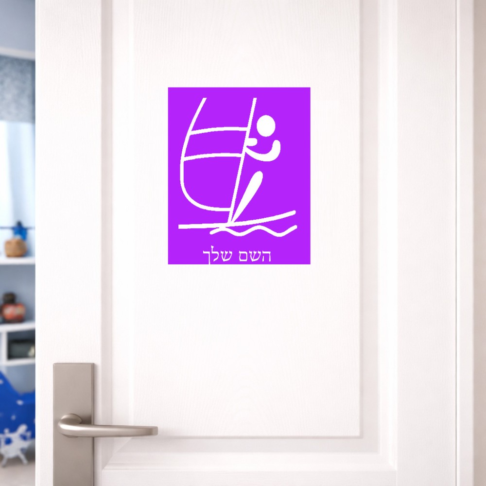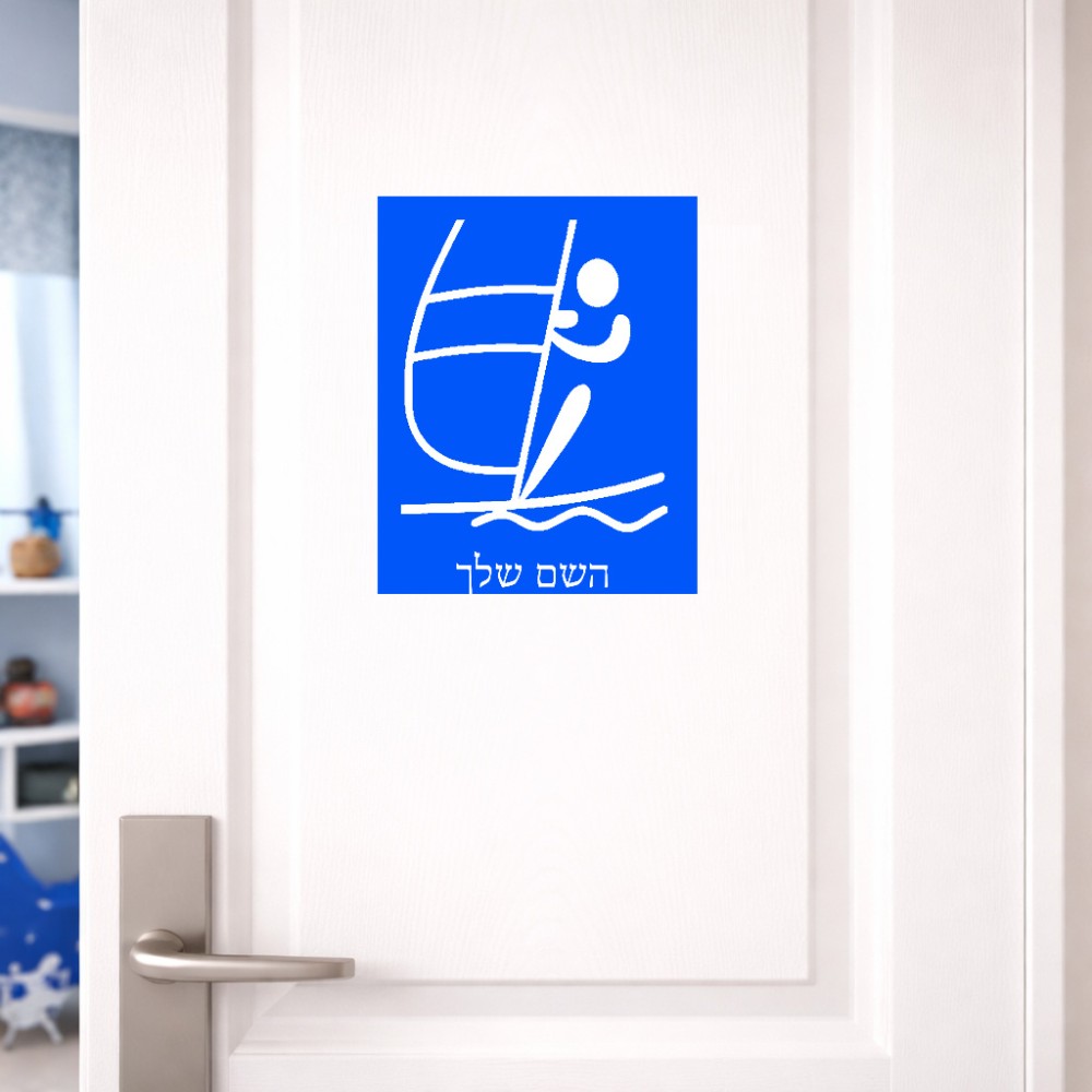 שלט אלומיניום גדול לחדר בעיצוב אישי עם השם שלך בעיצוב שייט אולימפי גודל השלט 20 × 25 ס"מ. את השם המבוקש ניתן לציין בהזמנה, אם לא צויין אנחנו ניצור קשר לבירור.