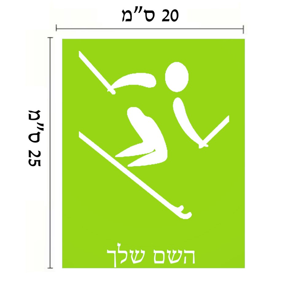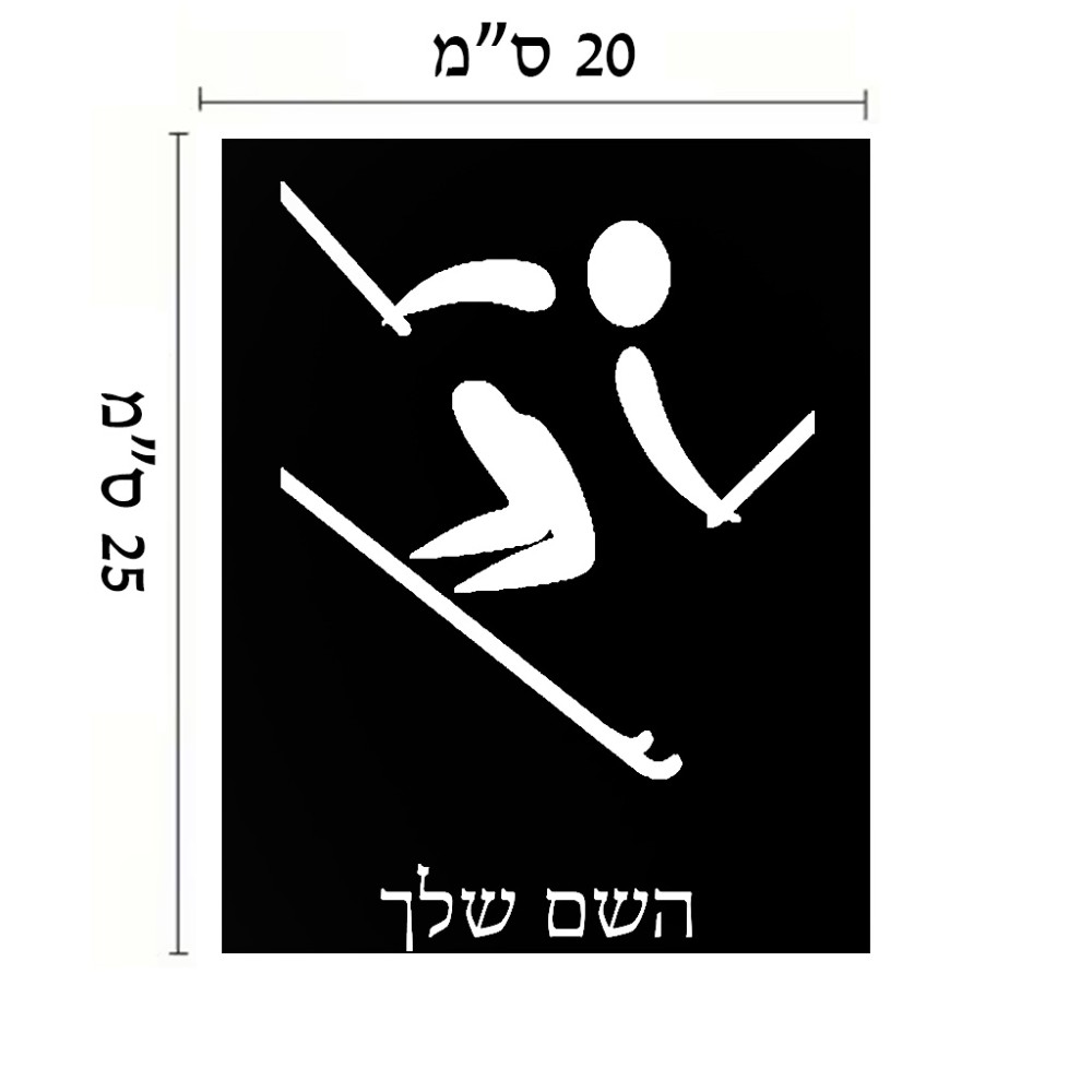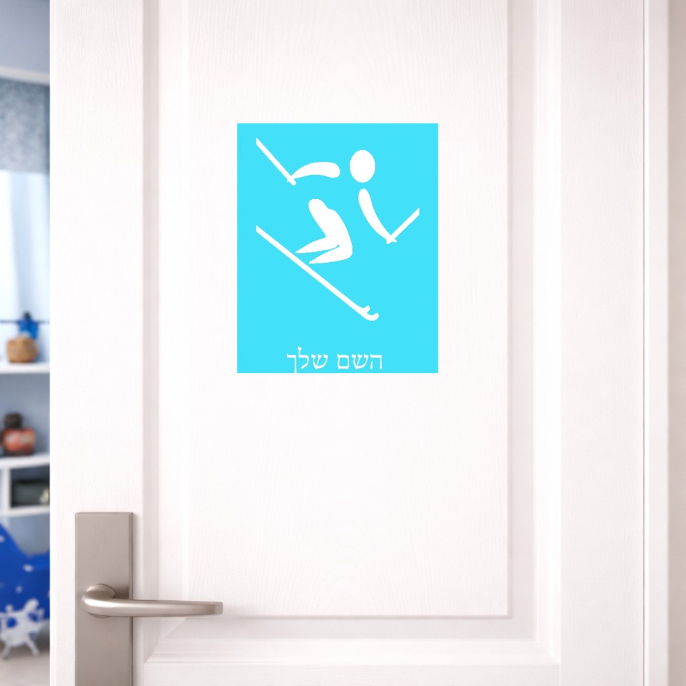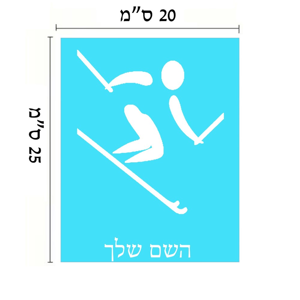 שלט אלומיניום גדול לחדר בעיצוב אישי עם השם שלך בעיצוב סקי אולימפי גודל השלט 20 × 25 ס"מ. את השם המבוקש ניתן לציין בהזמנה, אם לא צויין אנחנו ניצור קשר לבירור.