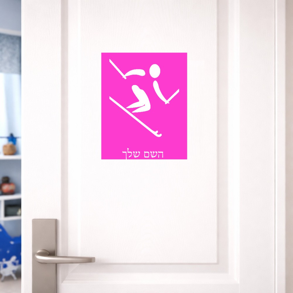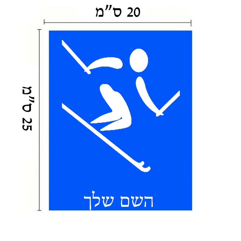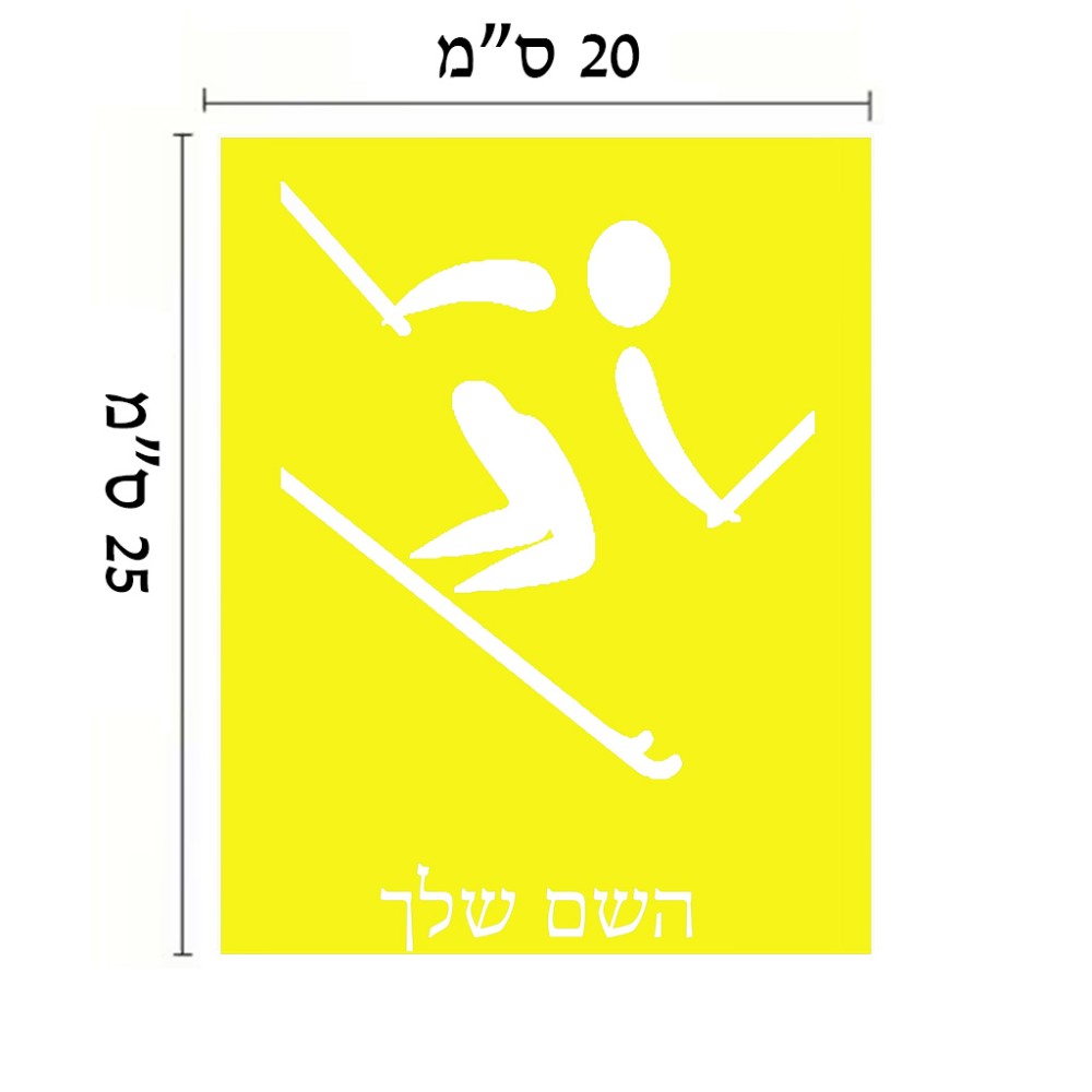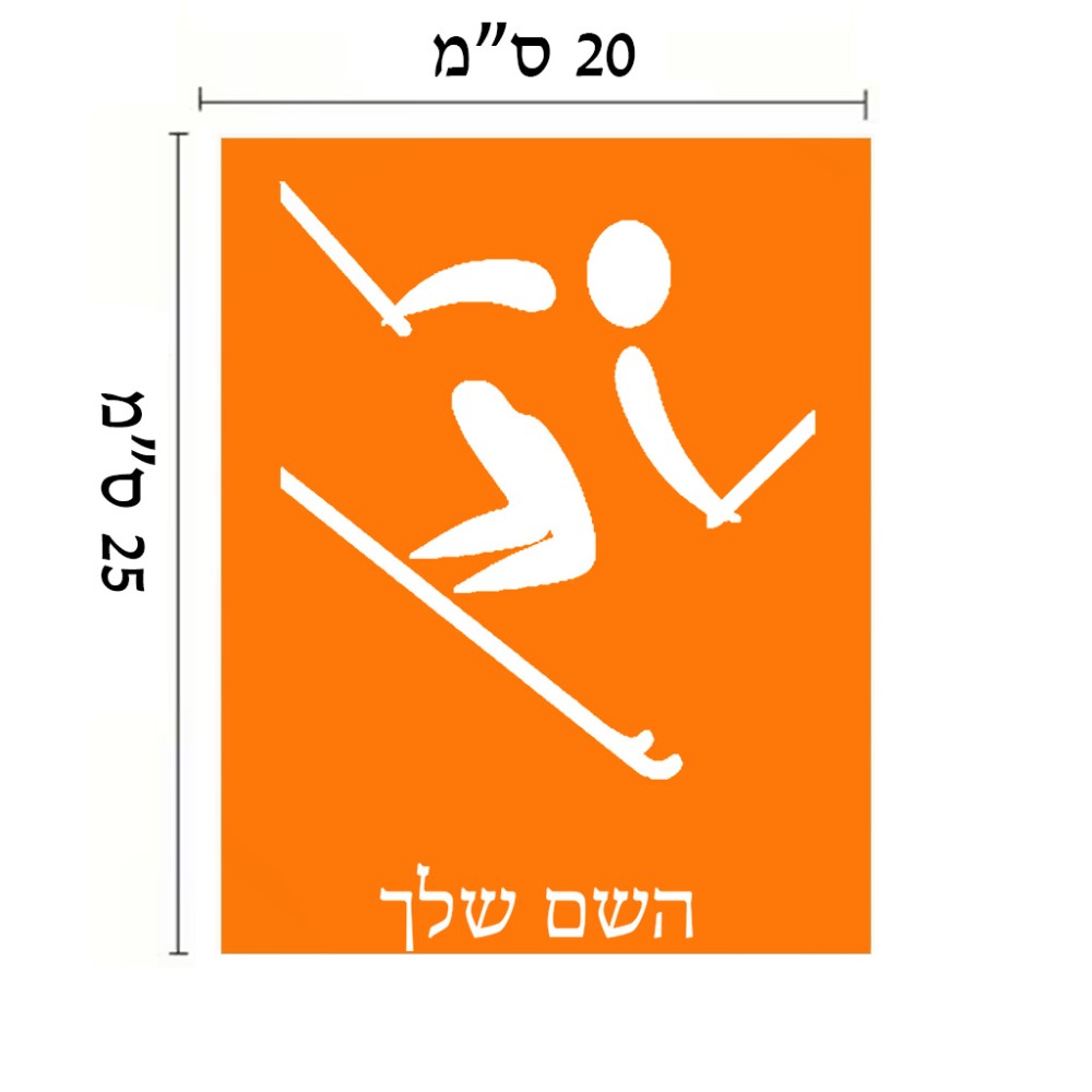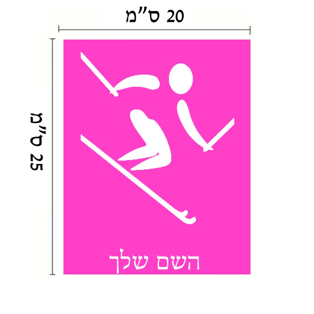 שלט אלומיניום גדול לחדר בעיצוב אישי עם השם שלך בעיצוב סקי אולימפי גודל השלט 20 × 25 ס"מ. את השם המבוקש ניתן לציין בהזמנה, אם לא צויין אנחנו ניצור קשר לבירור.