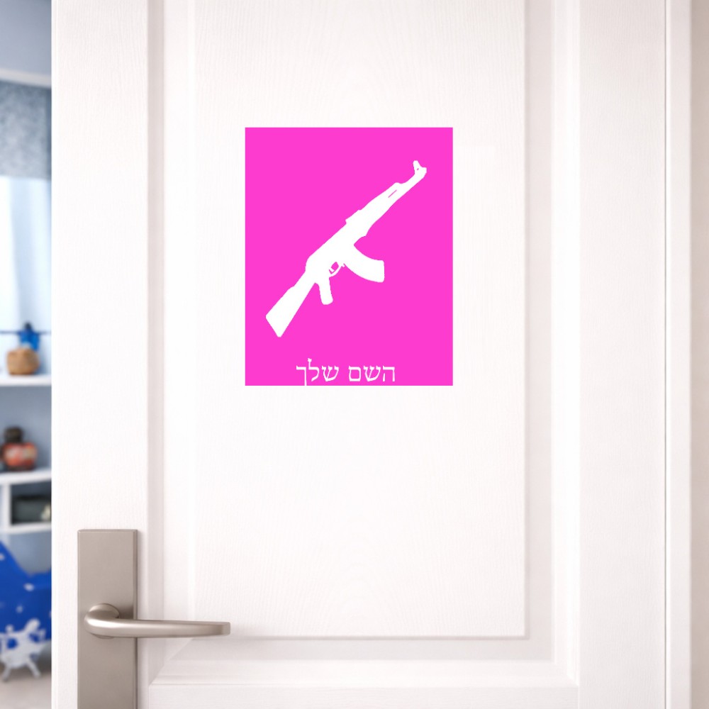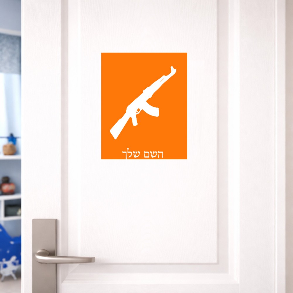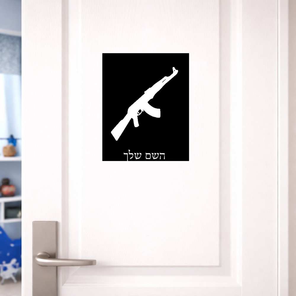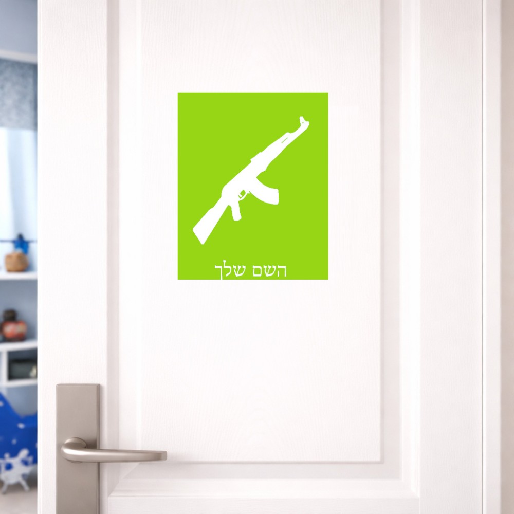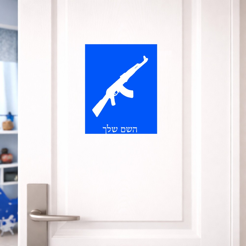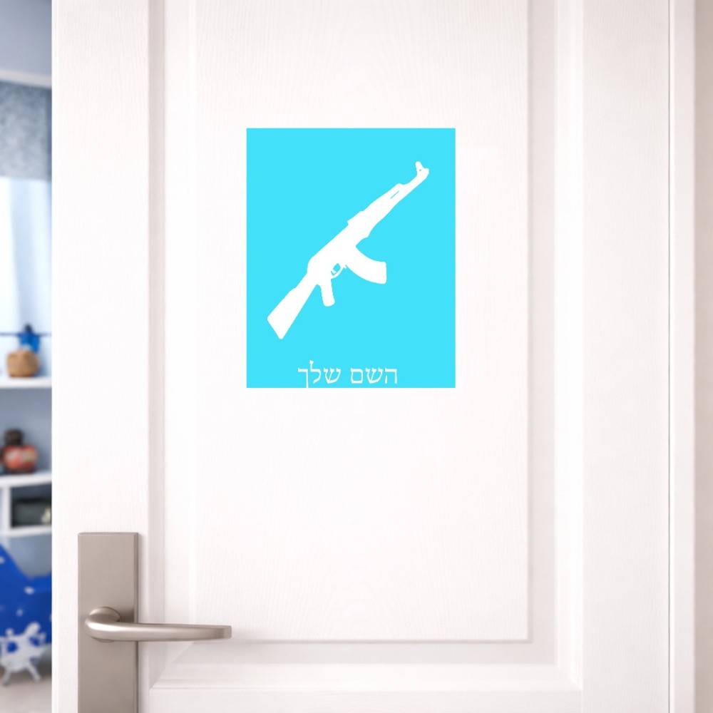 שלט אלומיניום גדול לחדר בעיצוב אישי עם השם שלך בעיצוב אק 47 גודל השלט 20 × 25 ס"מ. את השם המבוקש ניתן לציין בהזמנה, אם לא צויין אנחנו ניצור קשר לבירור.