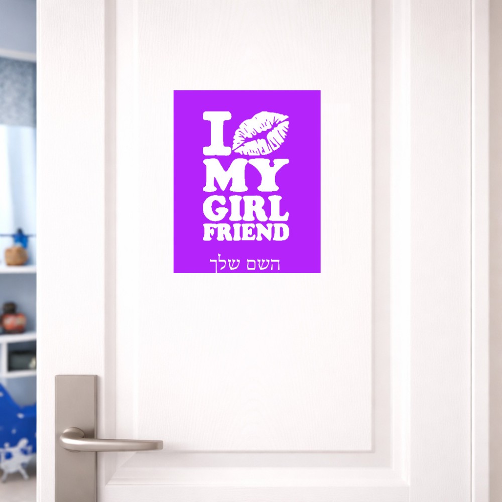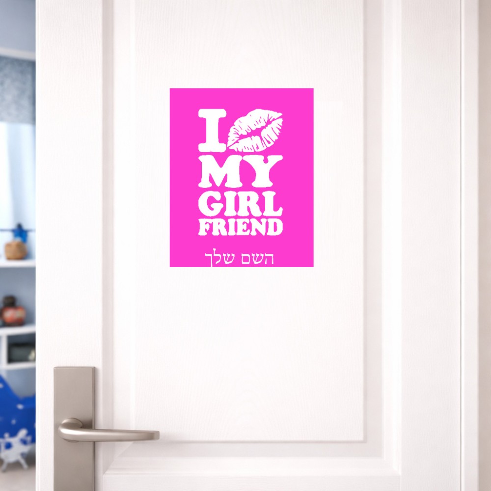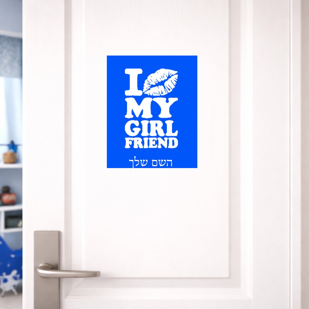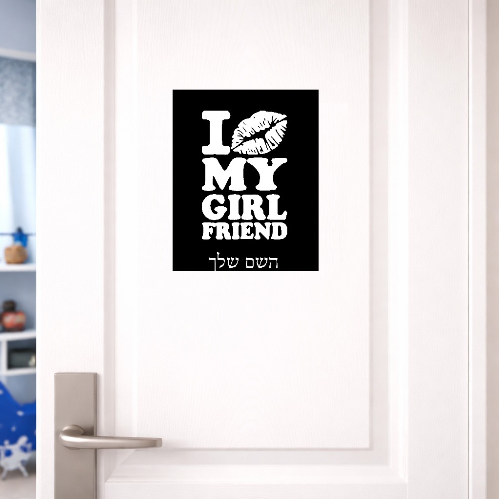 שלט אלומיניום גדול לחדר בעיצוב אישי עם השם שלך בעיצוב לנשק את החברה שלי גודל השלט 20 × 25 ס"מ. את השם המבוקש ניתן לציין בהזמנה, אם לא צויין אנחנו ניצור קשר לבירור.