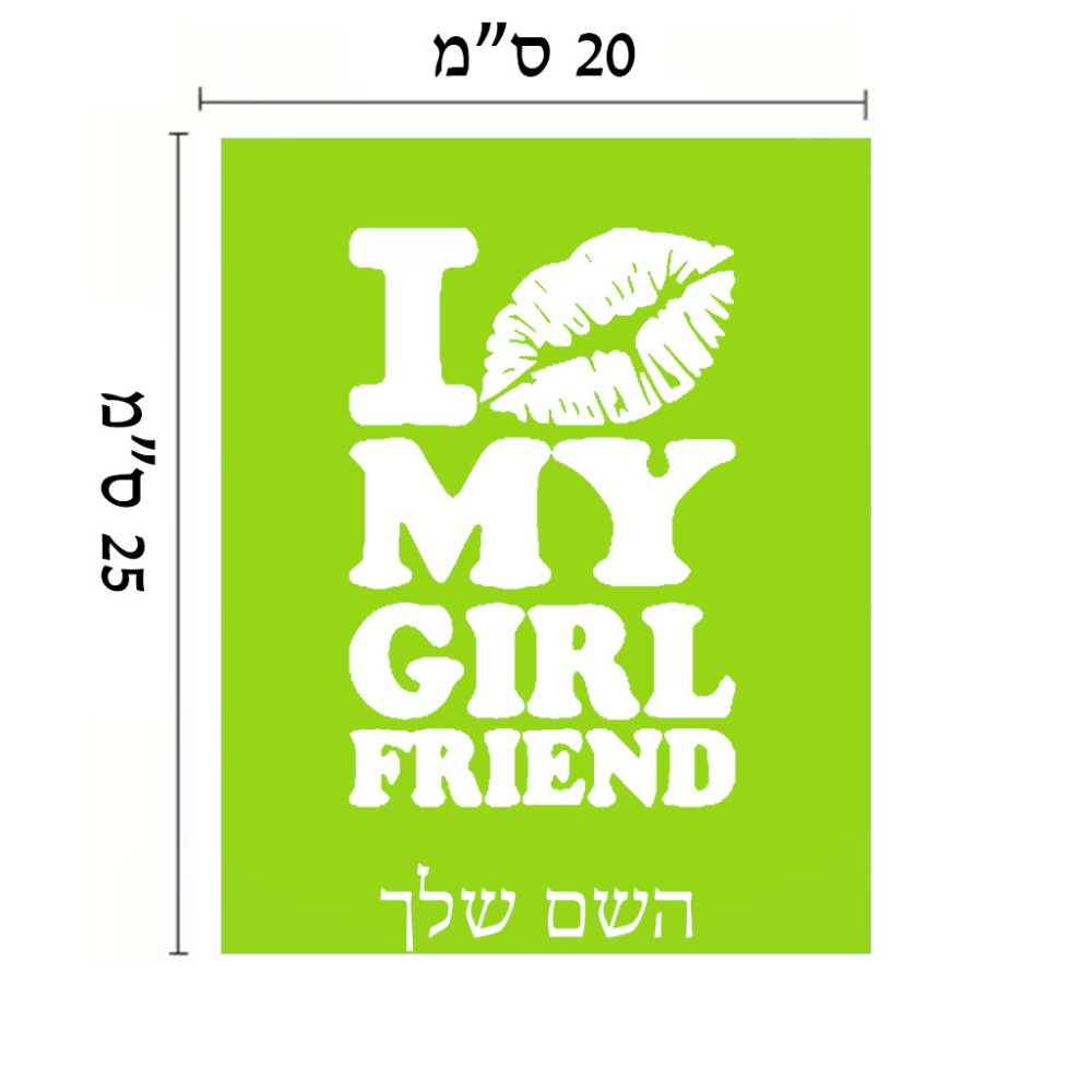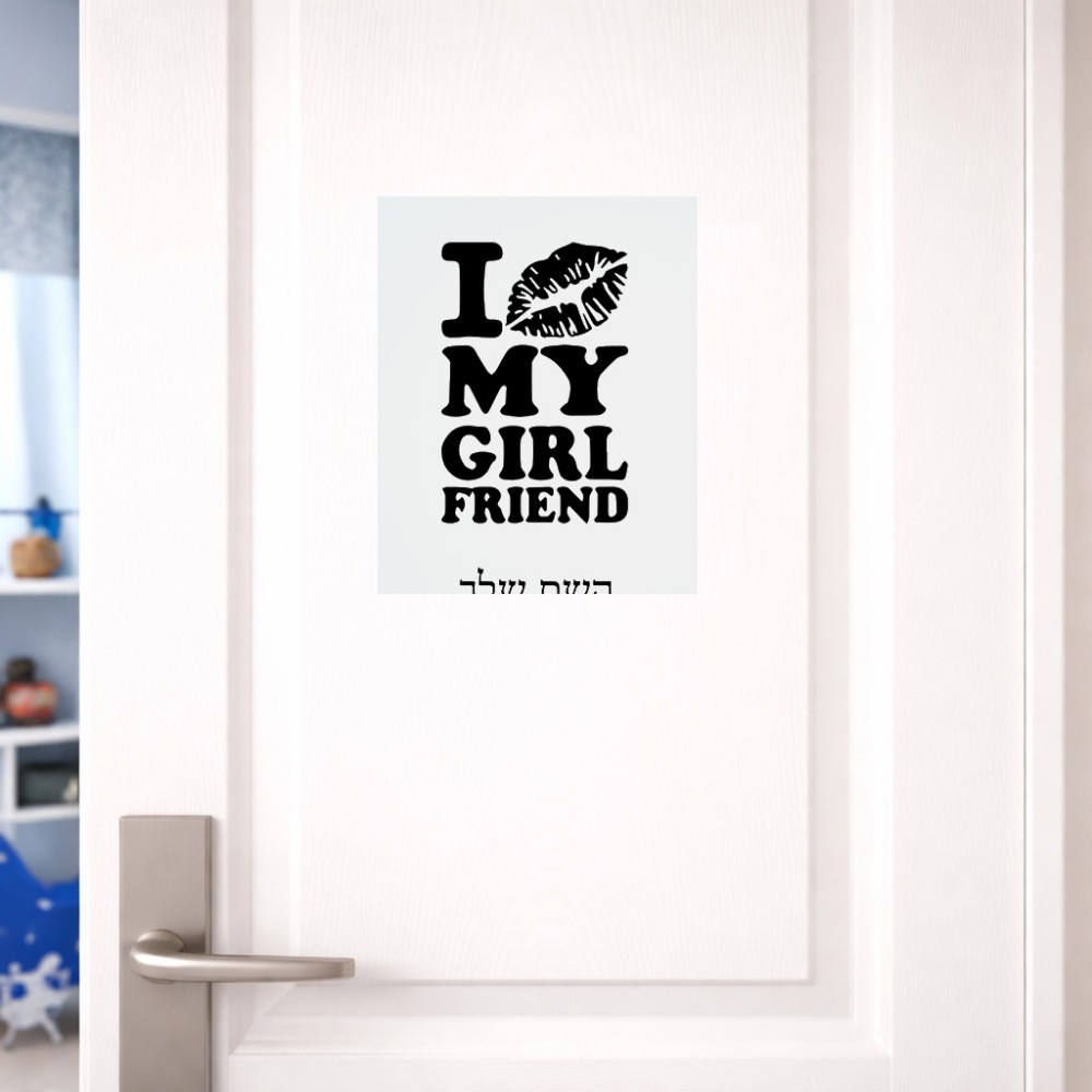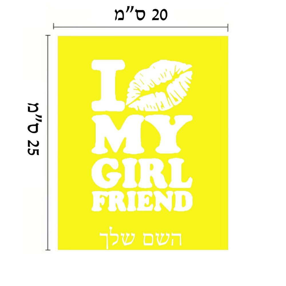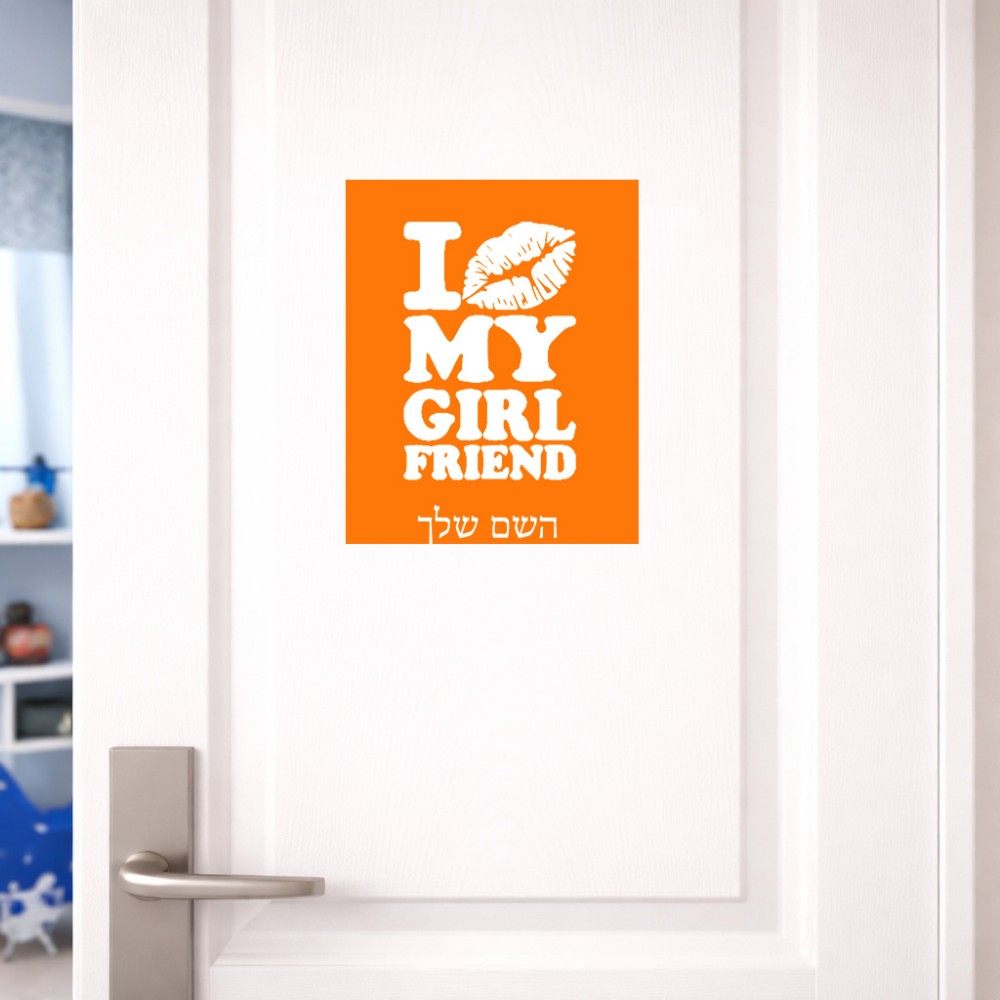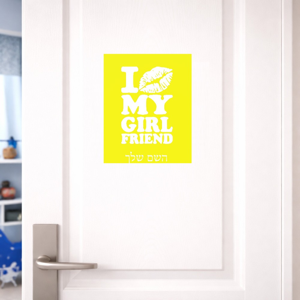 שלט אלומיניום גדול לחדר בעיצוב אישי עם השם שלך בעיצוב לנשק את החברה שלי גודל השלט 20 × 25 ס"מ. את השם המבוקש ניתן לציין בהזמנה, אם לא צויין אנחנו ניצור קשר לבירור.