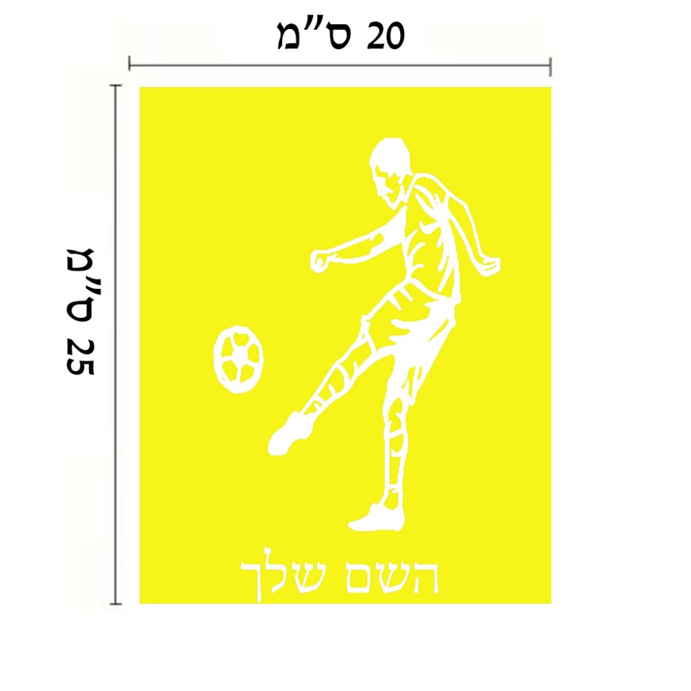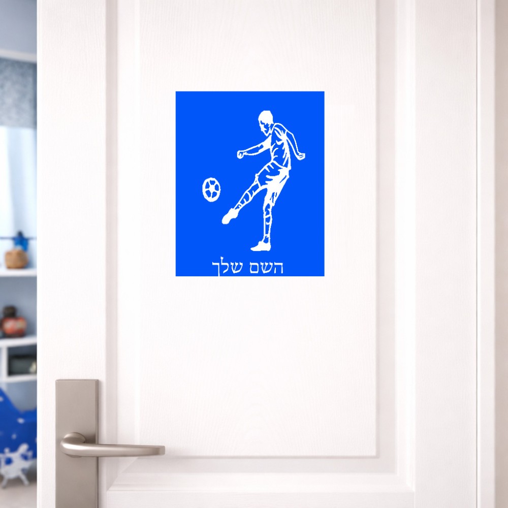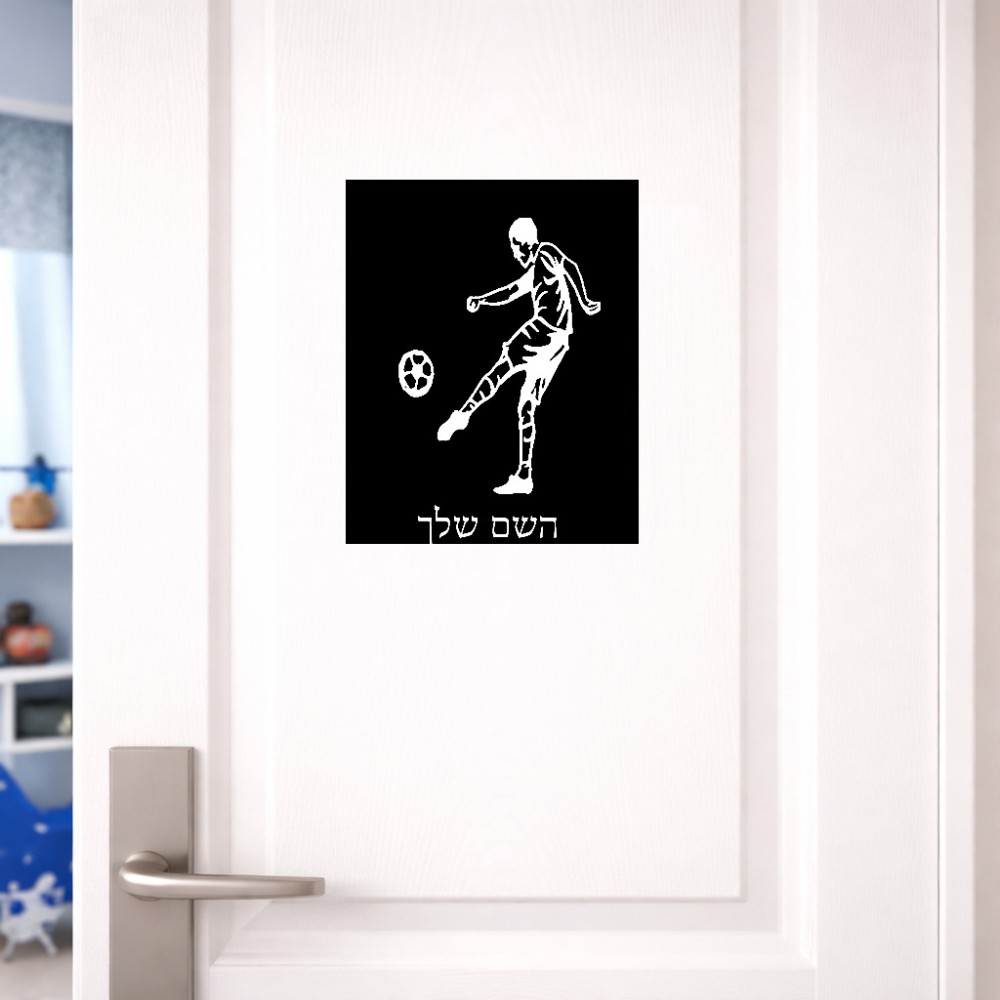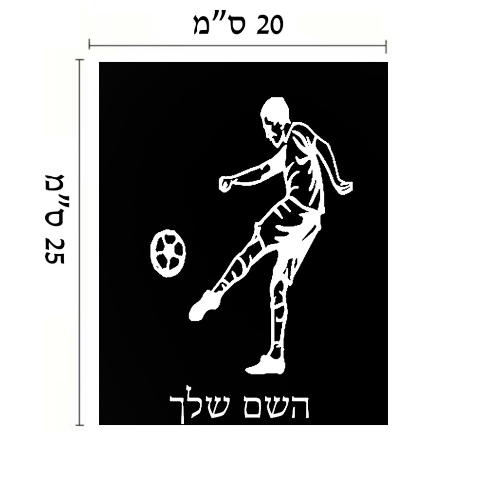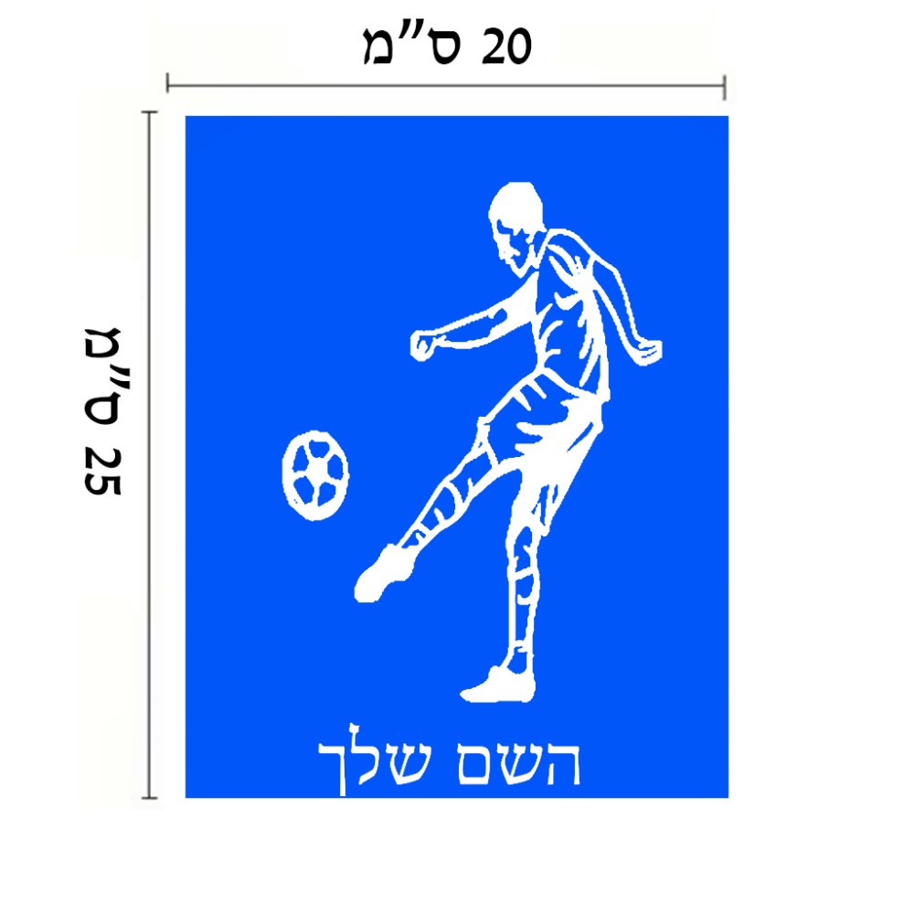 שלט אלומיניום גדול לחדר בעיצוב אישי עם השם שלך בעיצוב שחקן כדורגל גודל השלט 20 × 25 ס"מ. את השם המבוקש ניתן לציין בהזמנה, אם לא צויין אנחנו ניצור קשר לבירור.