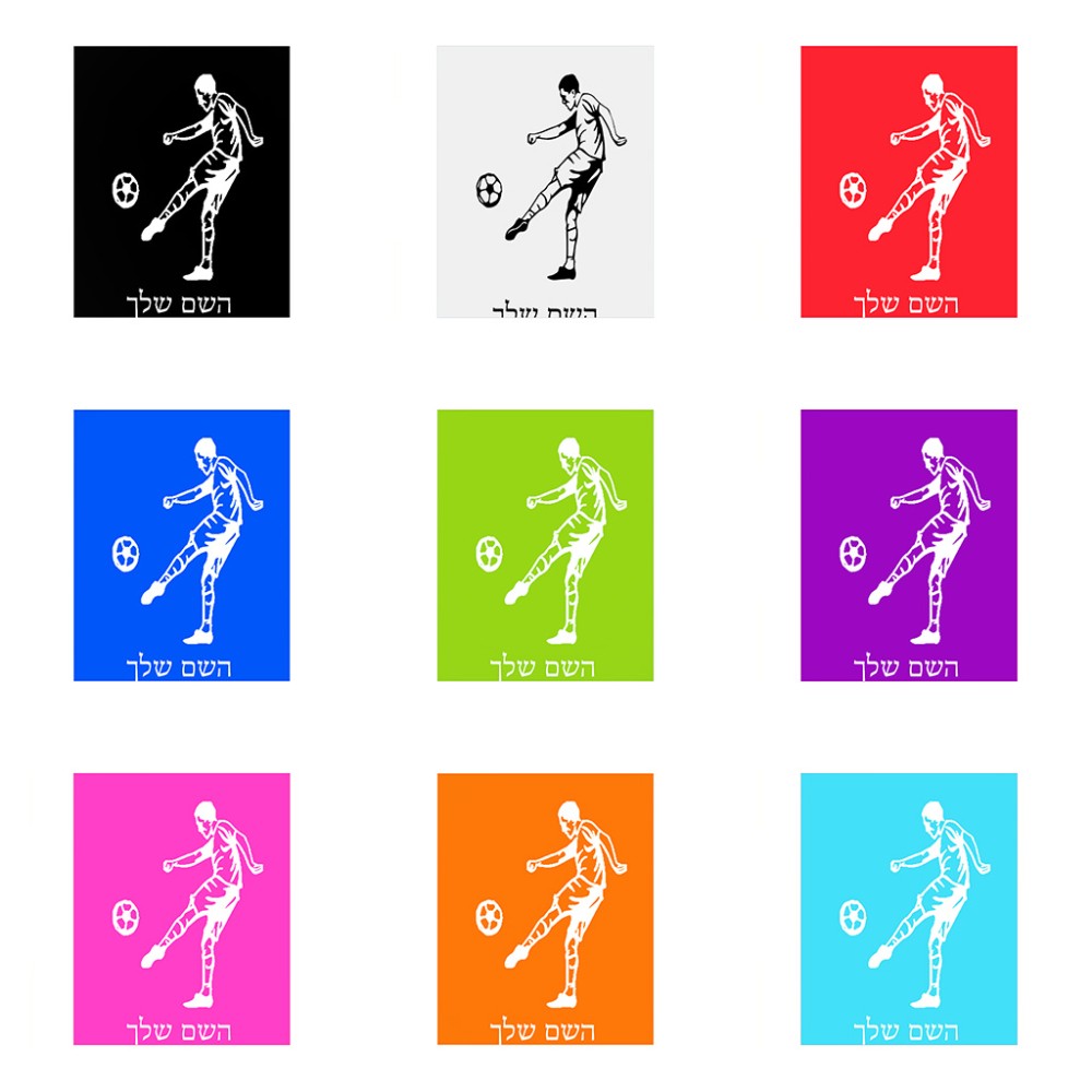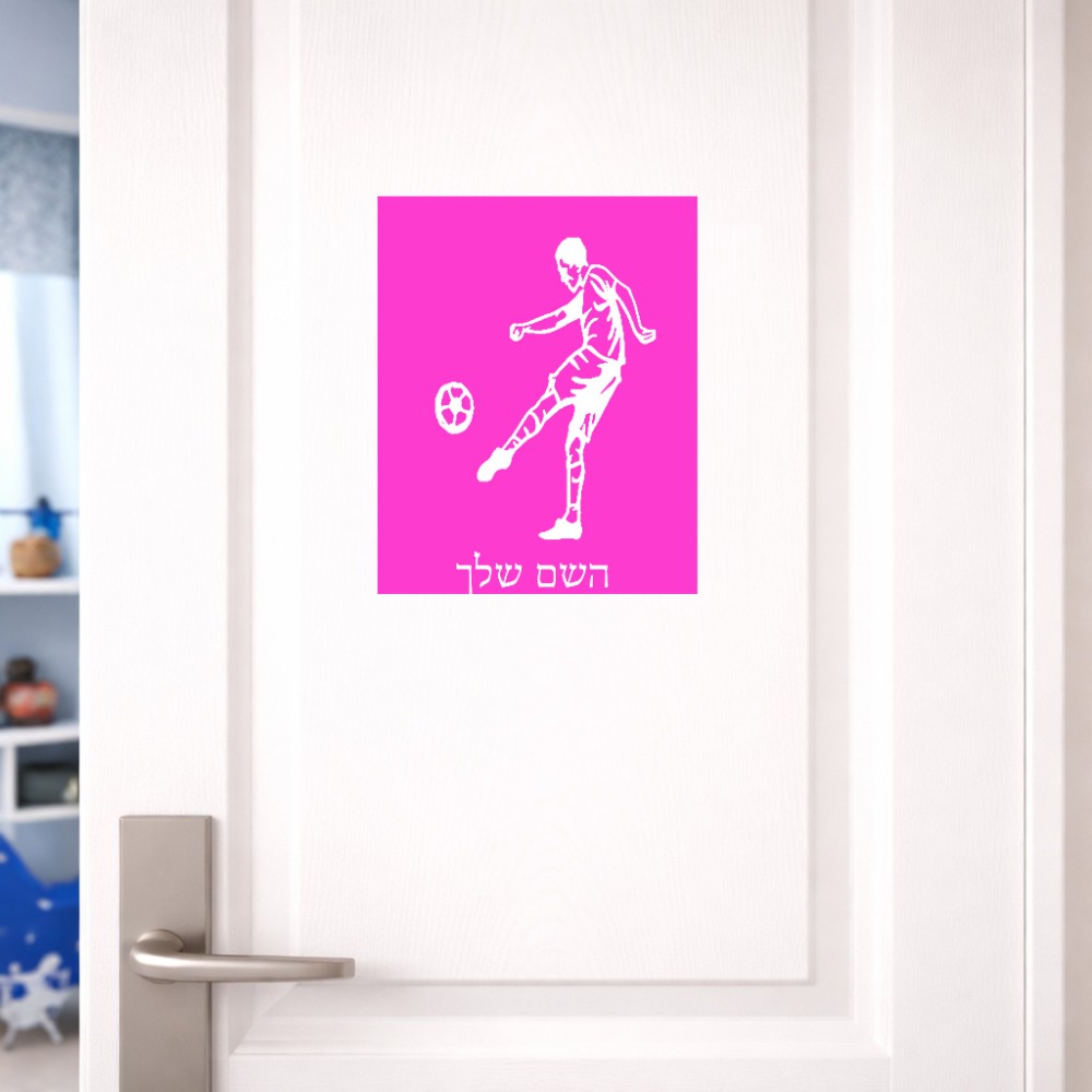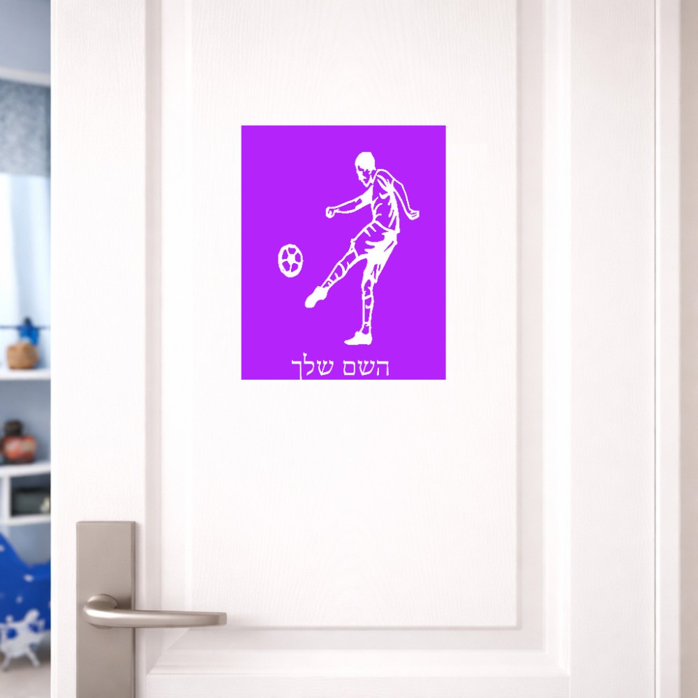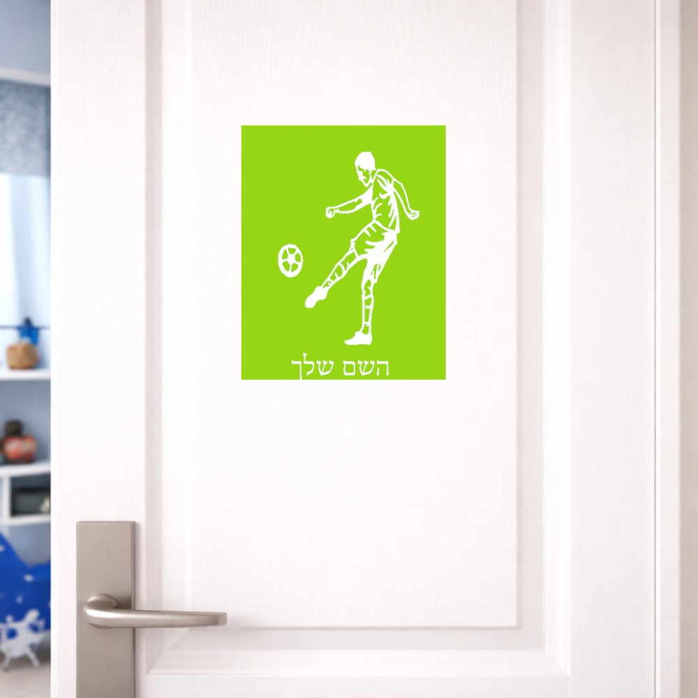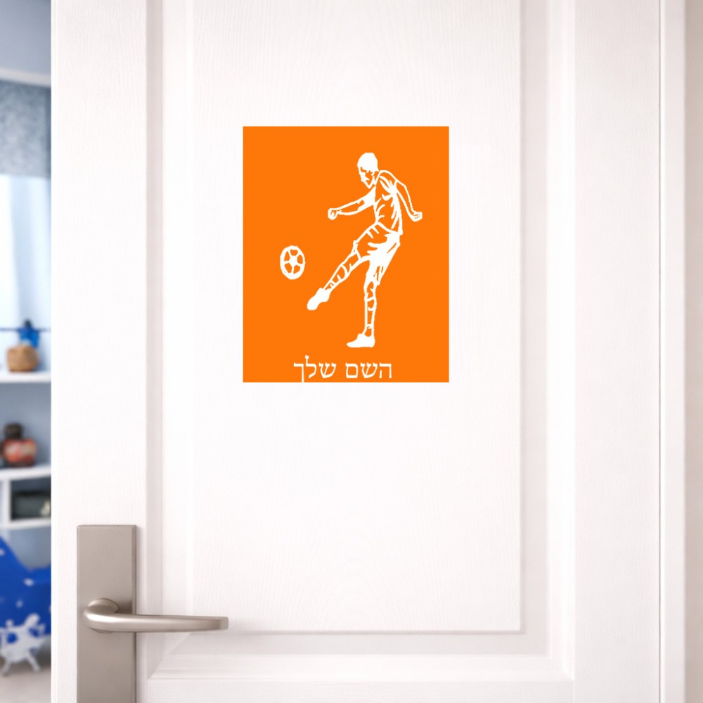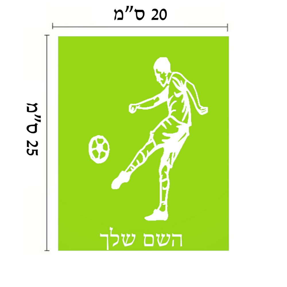 שלט אלומיניום גדול לחדר בעיצוב אישי עם השם שלך בעיצוב שחקן כדורגל גודל השלט 20 × 25 ס"מ. את השם המבוקש ניתן לציין בהזמנה, אם לא צויין אנחנו ניצור קשר לבירור.