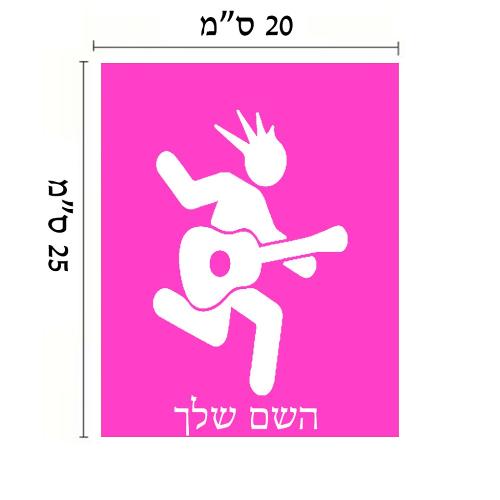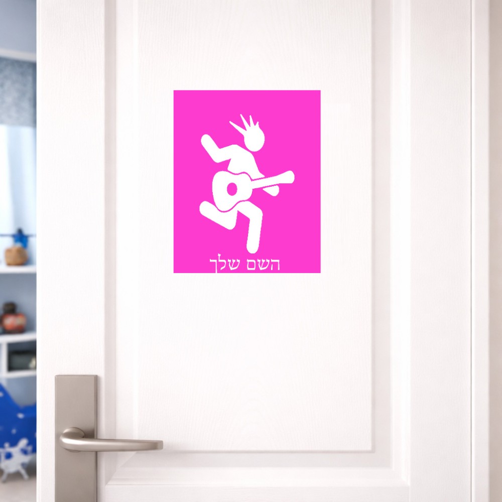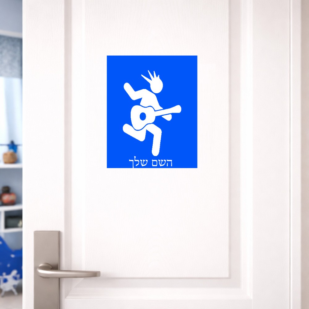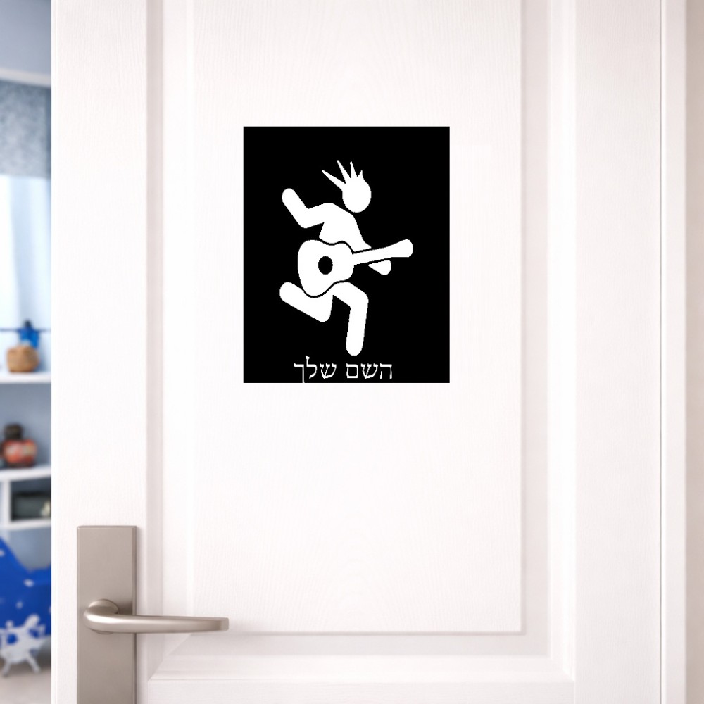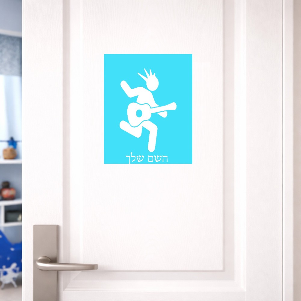שלט אלומיניום גדול לחדר בעיצוב אישי עם השם שלך בעיצוב נגן גיטרה גודל השלט 20 × 25 ס"מ. את השם המבוקש ניתן לציין בהזמנה, אם לא צויין אנחנו ניצור קשר לבירור.