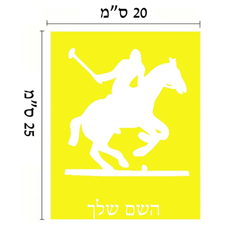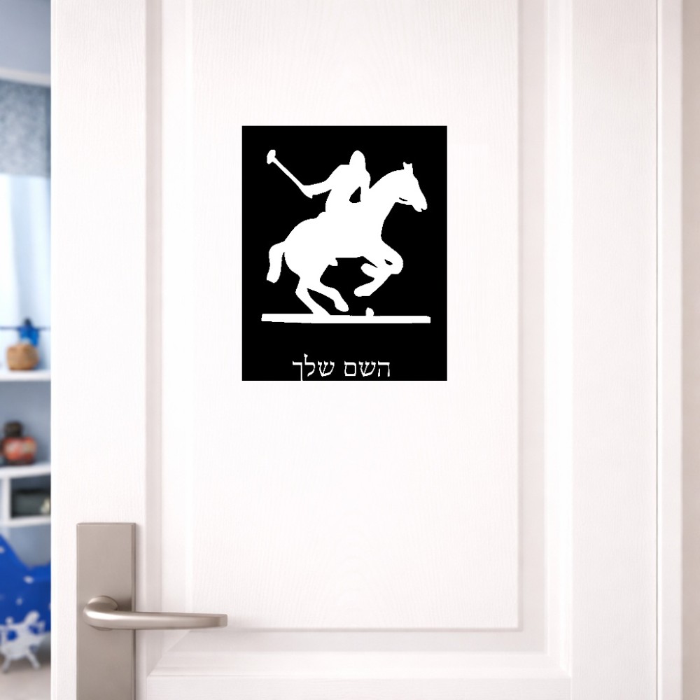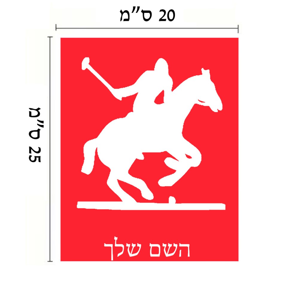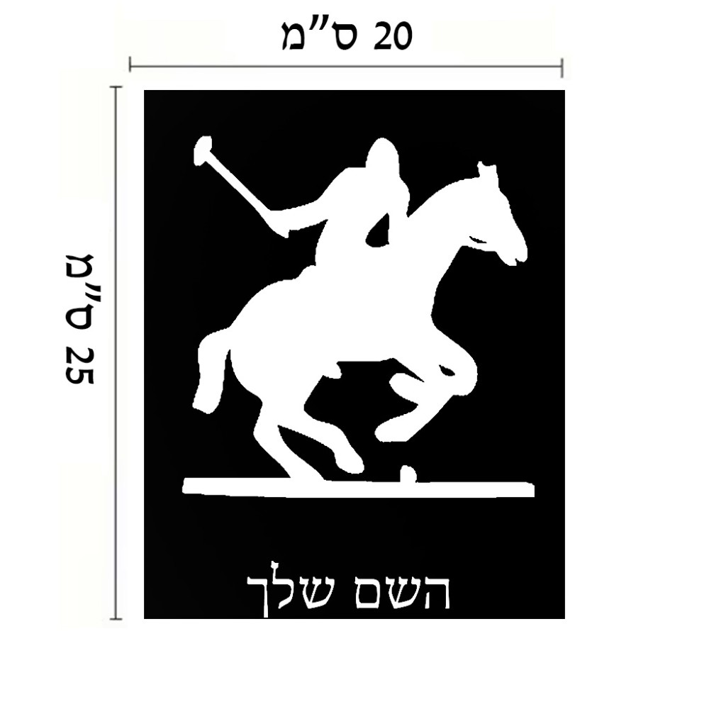 שלט אלומיניום גדול לחדר בעיצוב אישי עם השם שלך בעיצוב שחקן פולו - סוס גודל השלט 20 × 25 ס"מ. את השם המבוקש ניתן לציין בהזמנה, אם לא צויין אנחנו ניצור קשר לבירור.