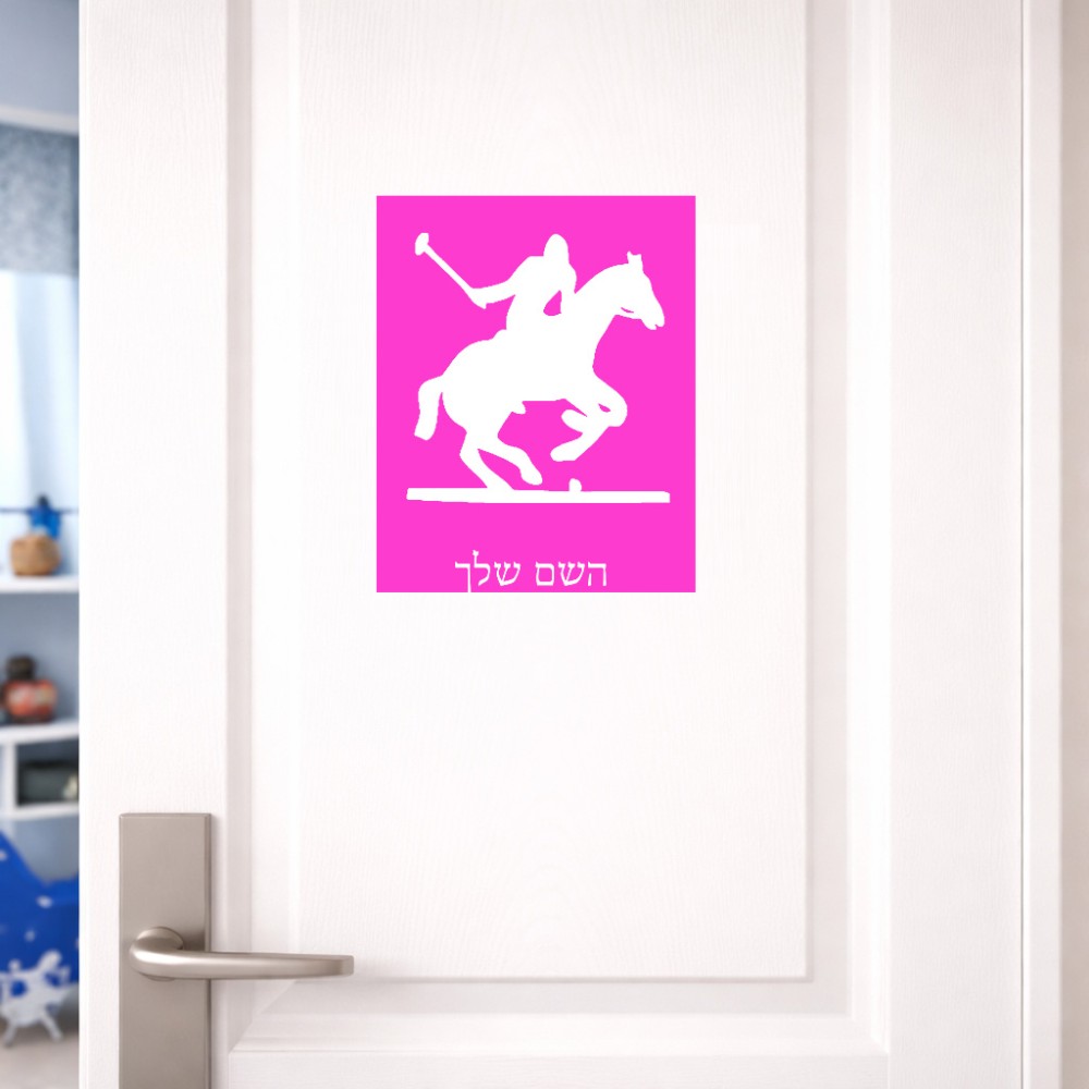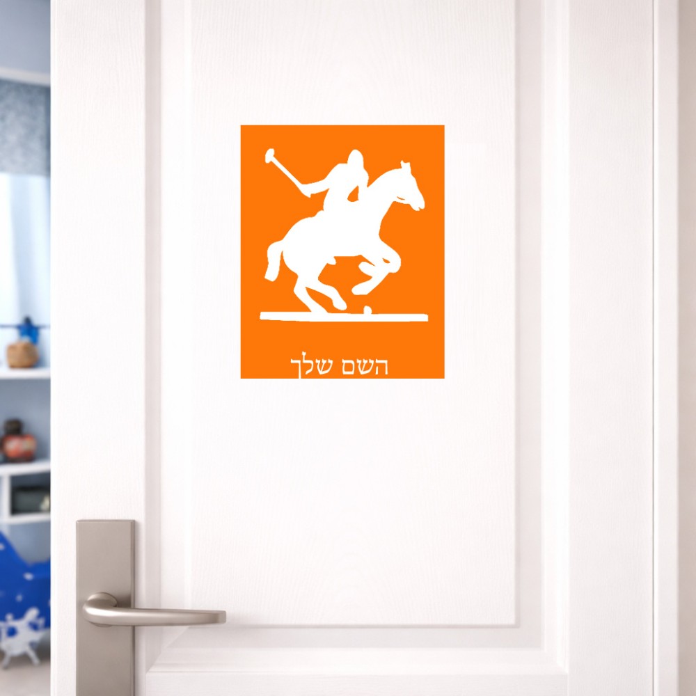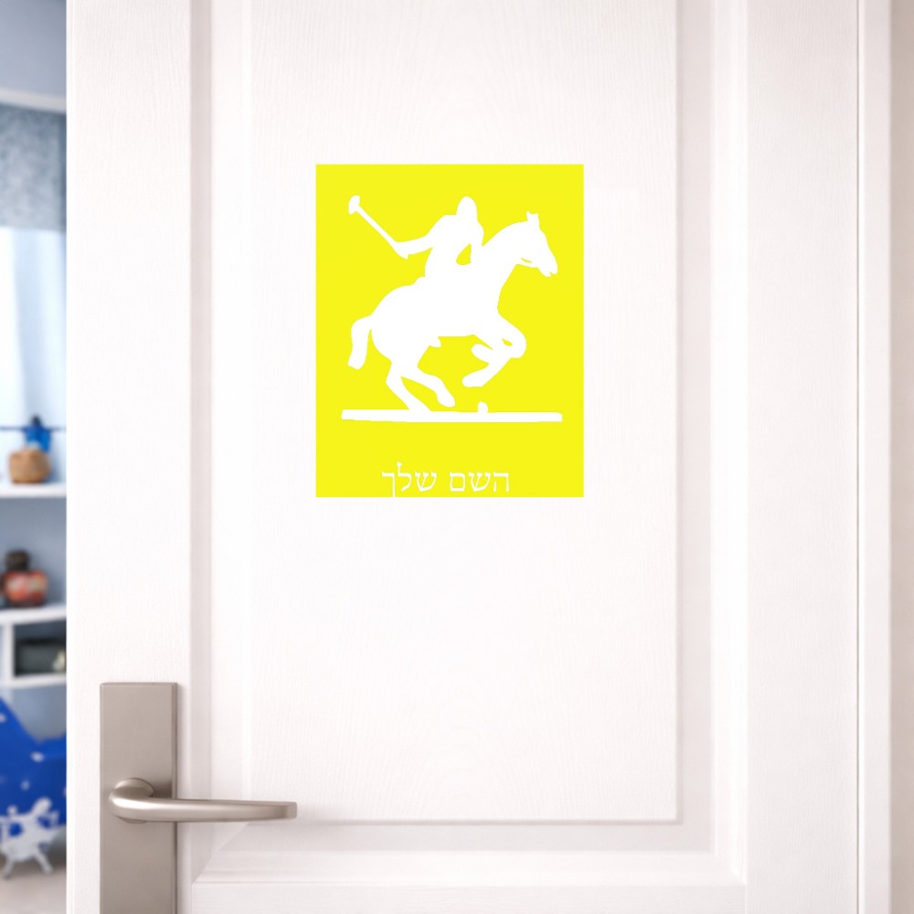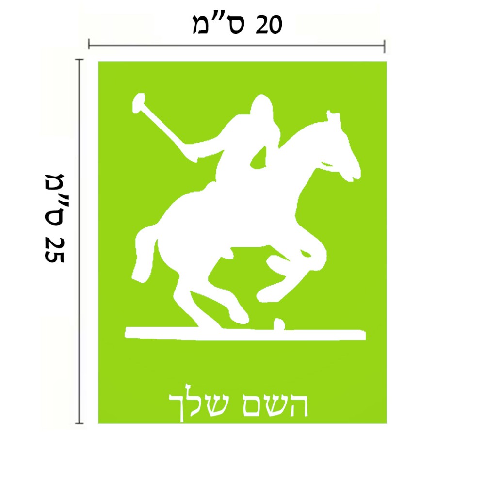 שלט אלומיניום גדול לחדר בעיצוב אישי עם השם שלך בעיצוב שחקן פולו - סוס גודל השלט 20 × 25 ס"מ. את השם המבוקש ניתן לציין בהזמנה, אם לא צויין אנחנו ניצור קשר לבירור.