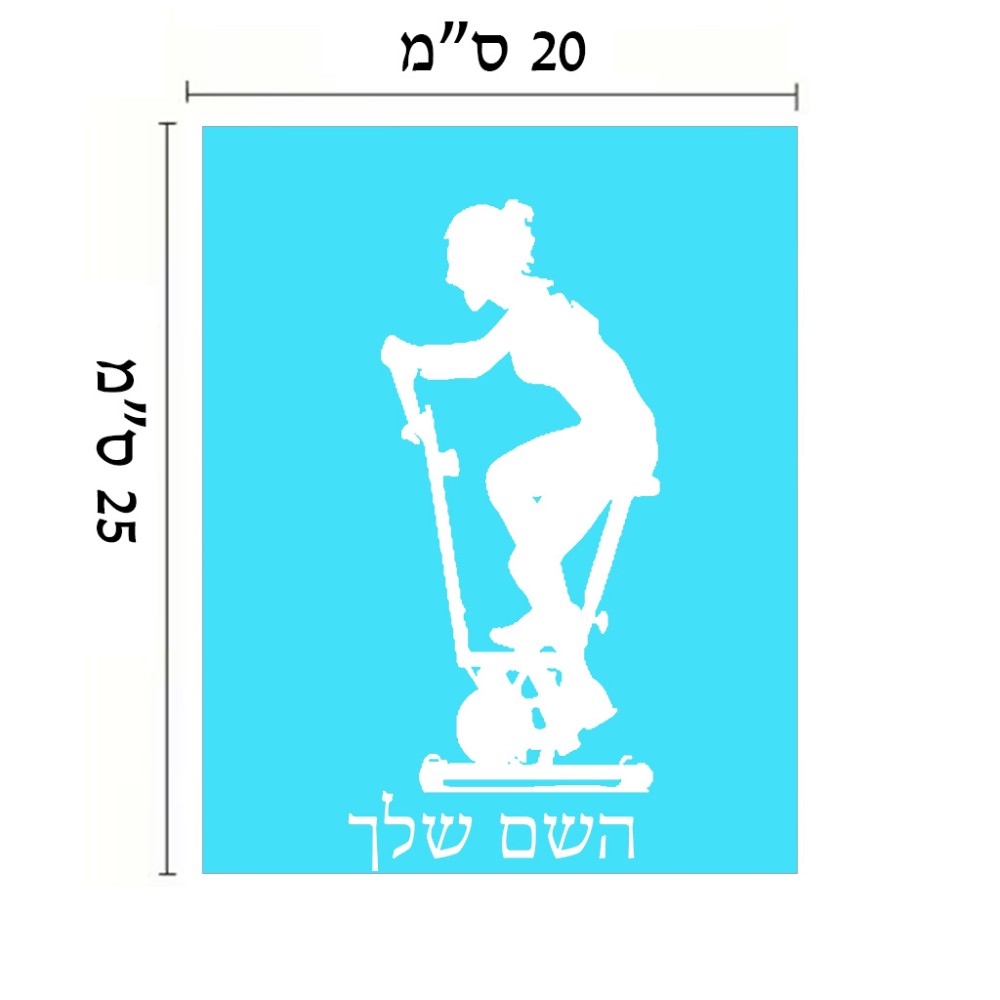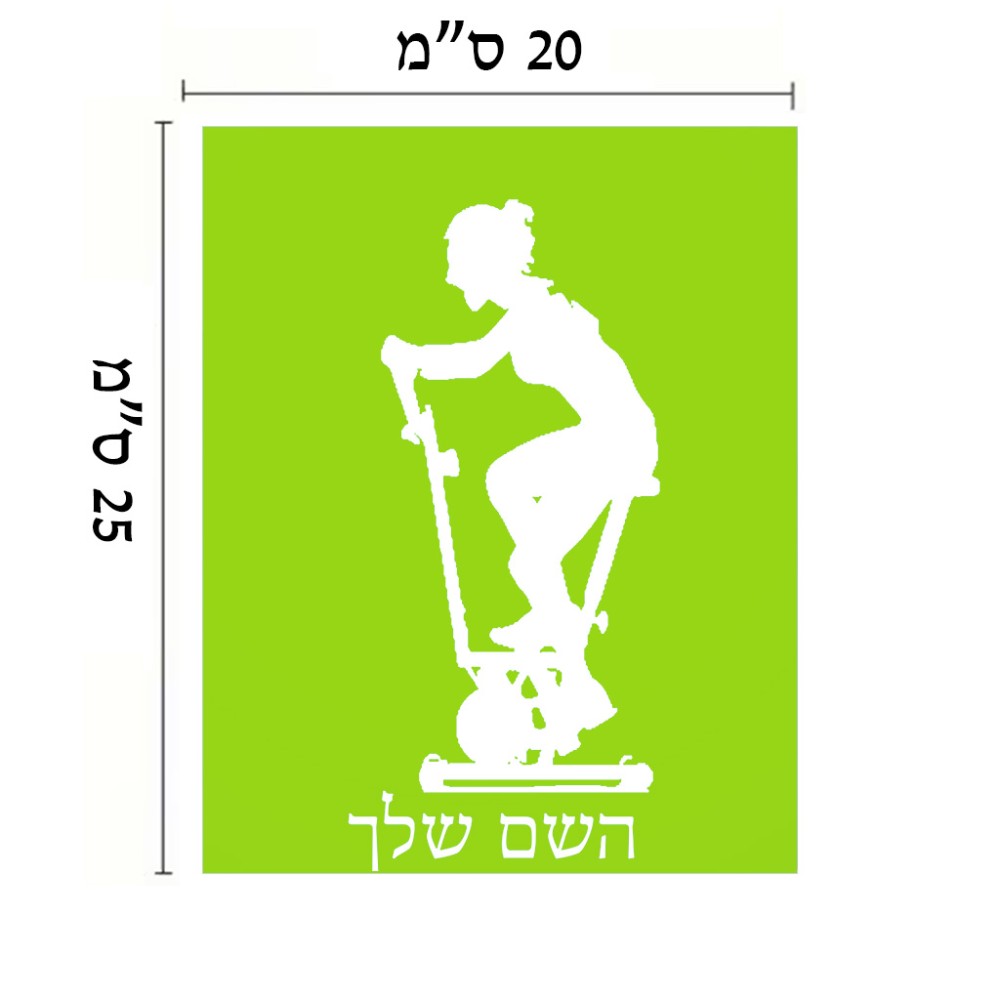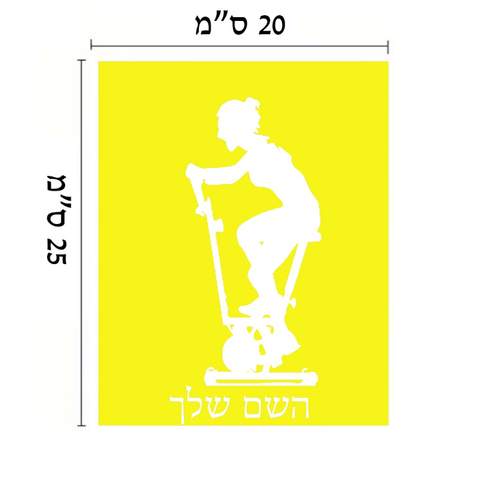 שלט אלומיניום גדול לחדר בעיצוב אישי עם השם שלך בעיצוב אימון ספינינג - אישה גודל השלט 20 × 25 ס"מ. את השם המבוקש ניתן לציין בהזמנה, אם לא צויין אנחנו ניצור קשר לבירור.