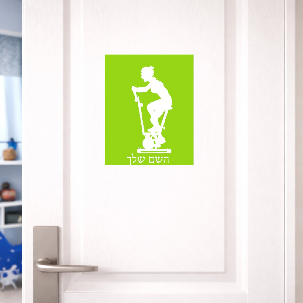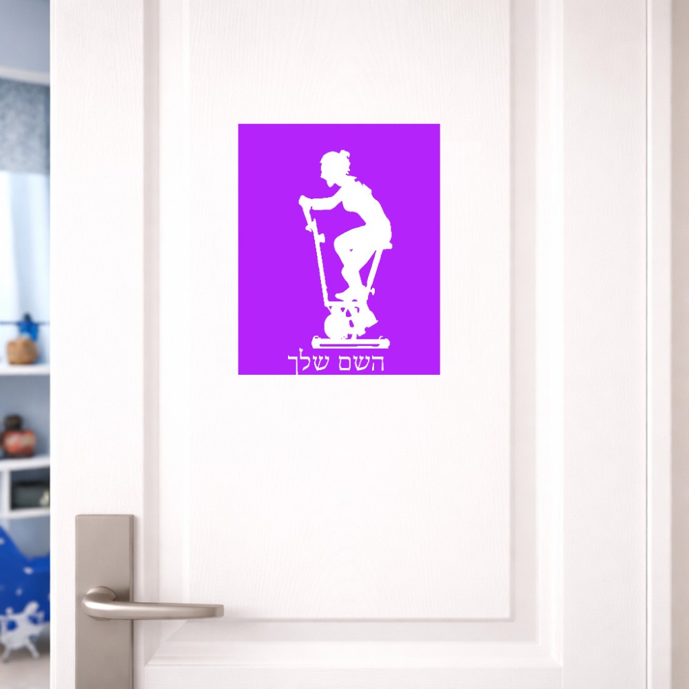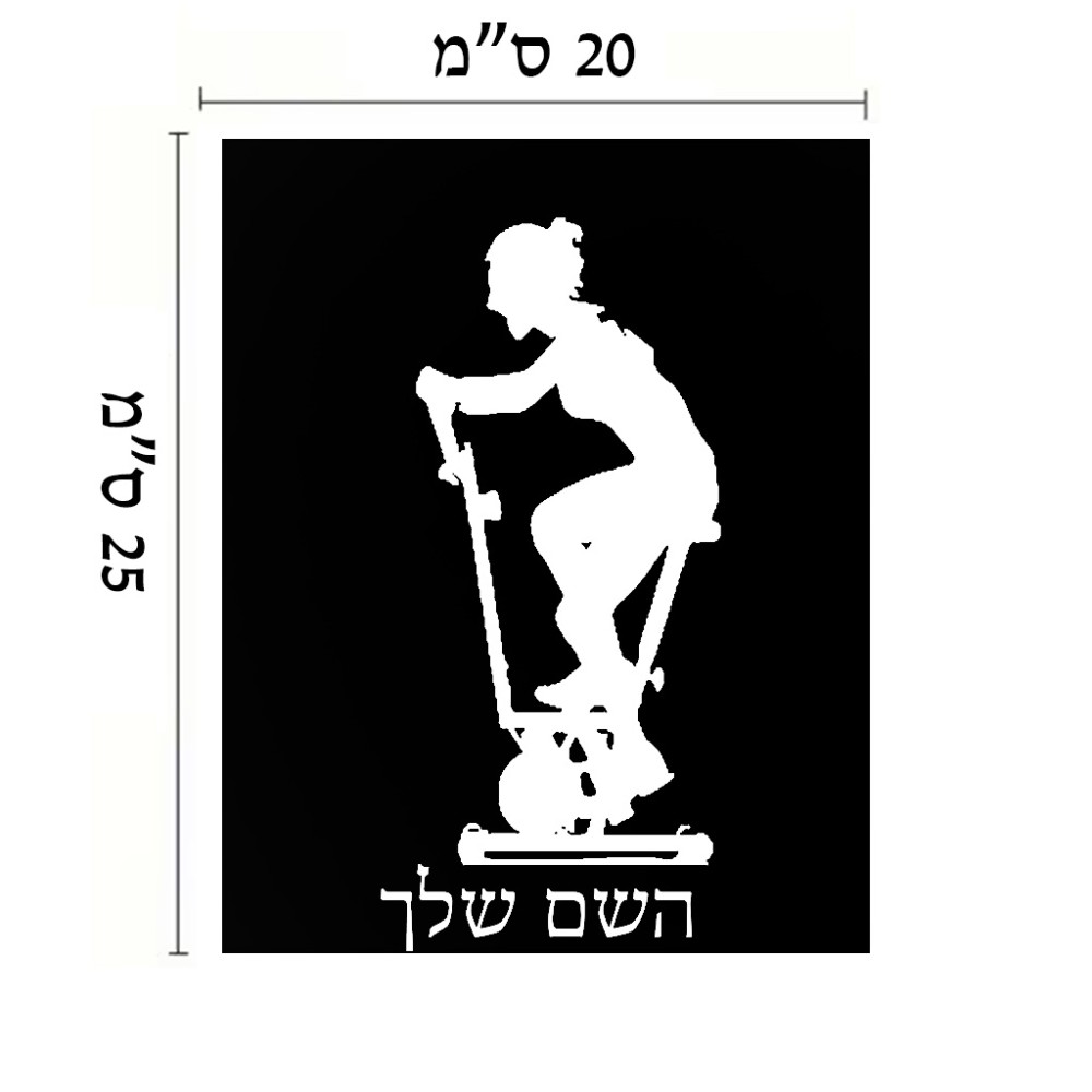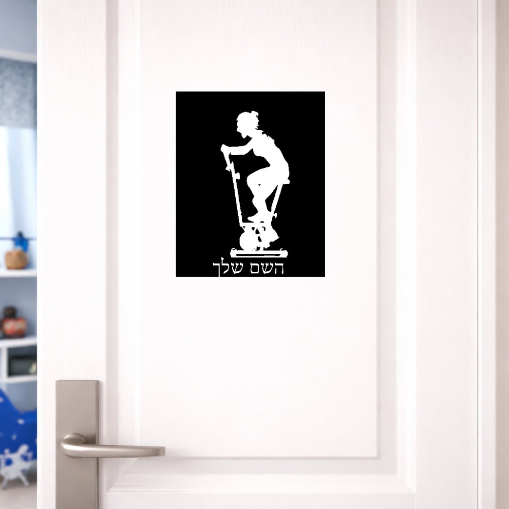 שלט אלומיניום גדול לחדר בעיצוב אישי עם השם שלך בעיצוב אימון ספינינג - אישה גודל השלט 20 × 25 ס"מ. את השם המבוקש ניתן לציין בהזמנה, אם לא צויין אנחנו ניצור קשר לבירור.