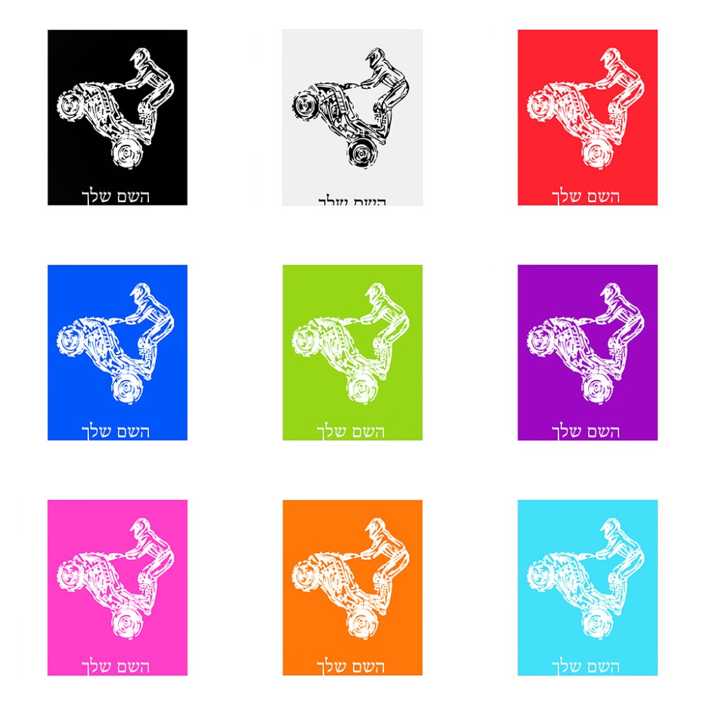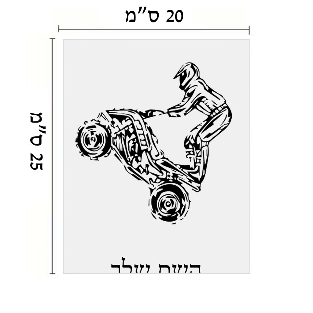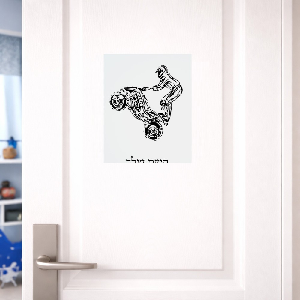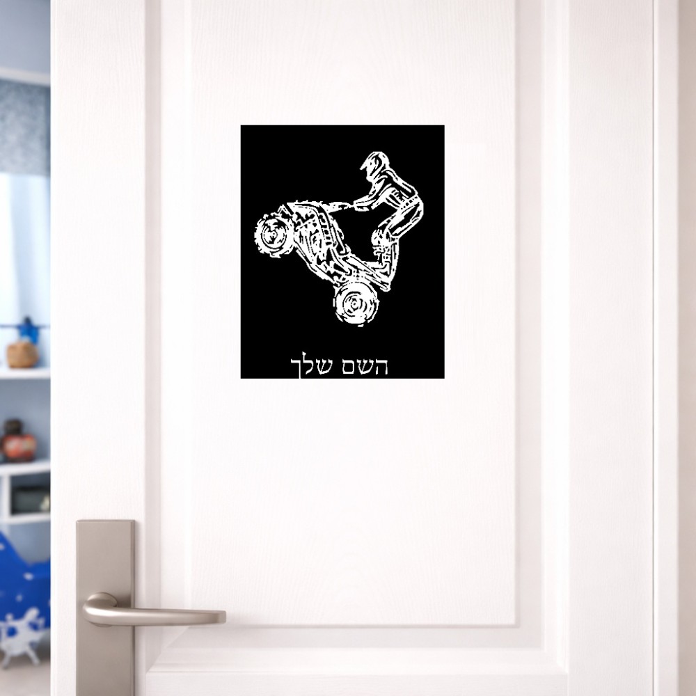 שלט אלומיניום גדול לחדר בעיצוב אישי עם השם שלך בעיצוב רוכב טרקטורונים גודל השלט 20 × 25 ס"מ. את השם המבוקש ניתן לציין בהזמנה, אם לא צויין אנחנו ניצור קשר לבירור.