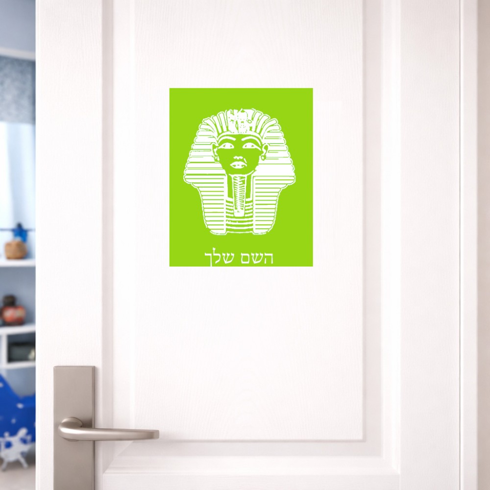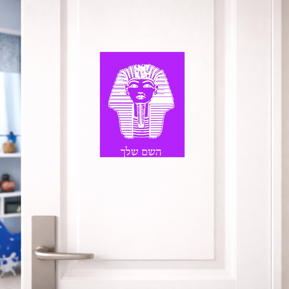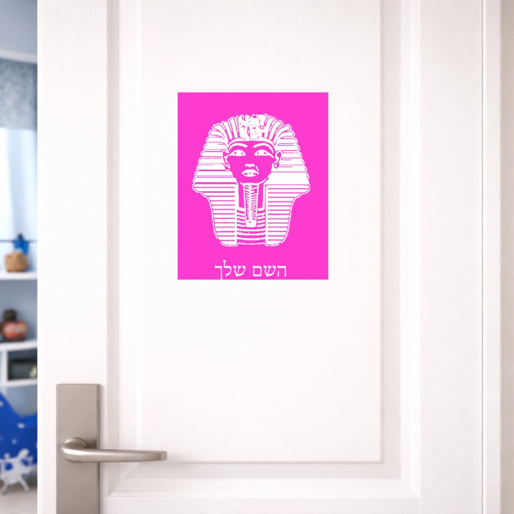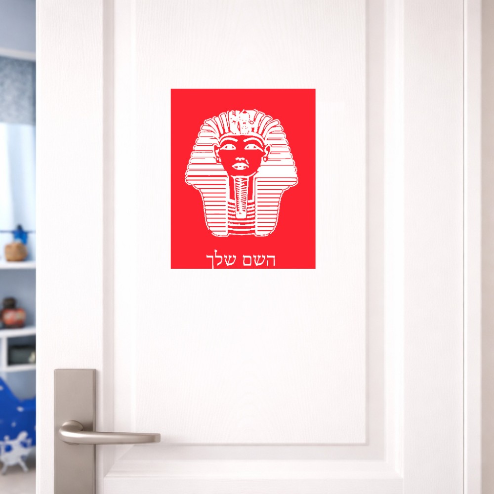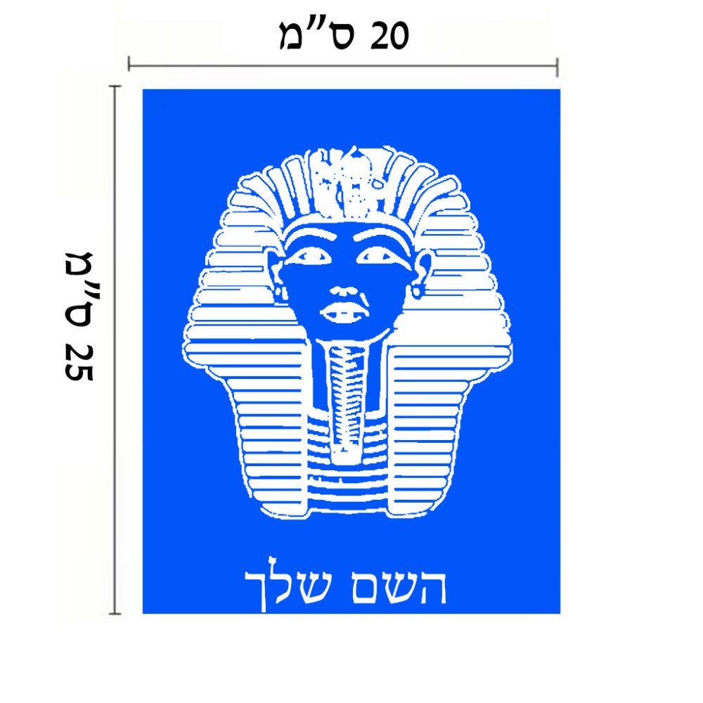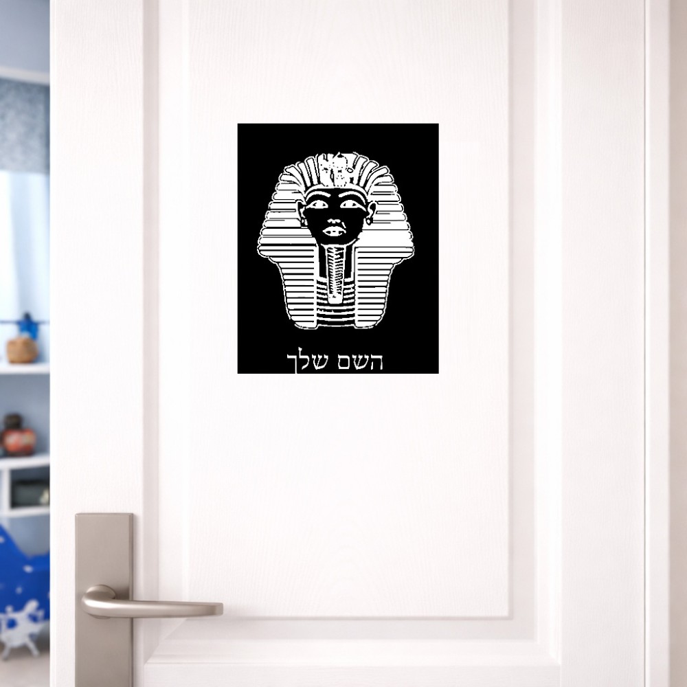 שלט אלומיניום גדול לחדר בעיצוב אישי עם השם שלך בעיצוב פרעה - תות ענח' אמון מצרי גודל השלט 20 × 25 ס"מ. את השם המבוקש ניתן לציין בהזמנה, אם לא צויין אנחנו ניצור קשר לבירור.
