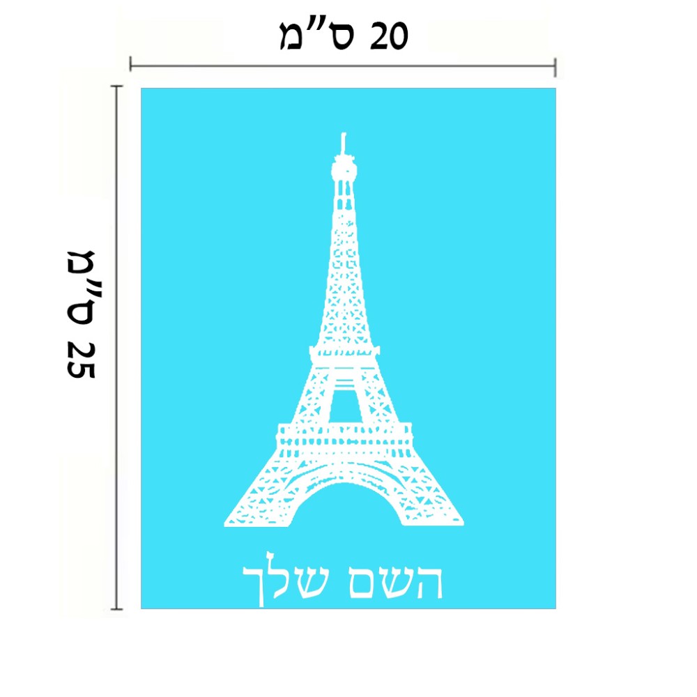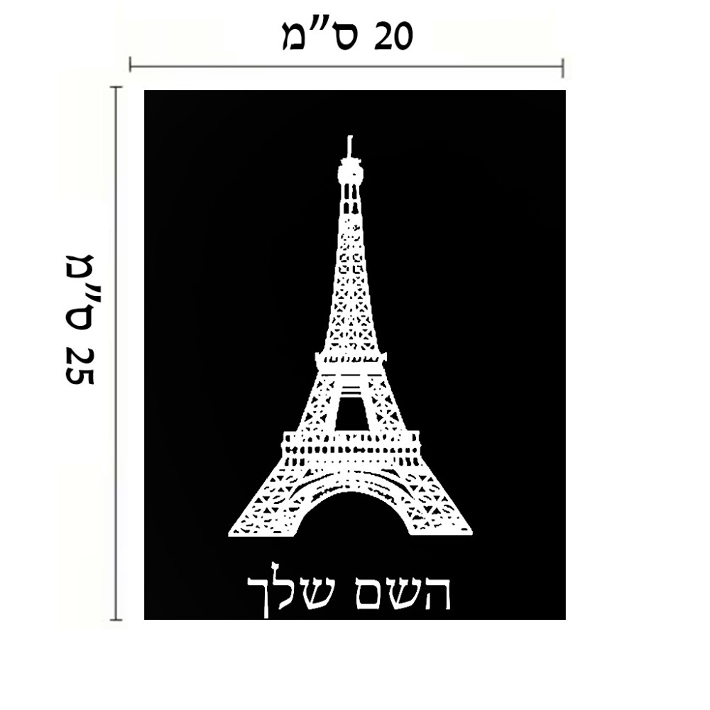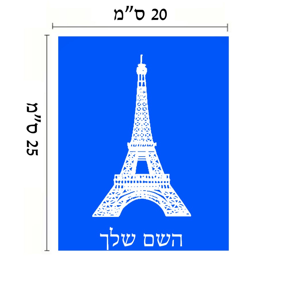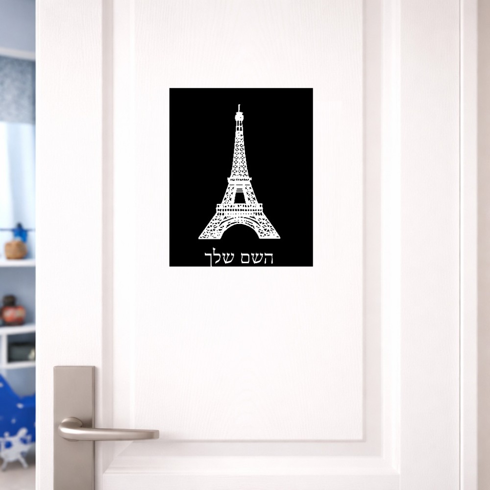 שלט אלומיניום גדול לחדר בעיצוב אישי עם השם שלך בעיצוב מגדל אייפל גודל השלט 20 × 25 ס"מ. את השם המבוקש ניתן לציין בהזמנה, אם לא צויין אנחנו ניצור קשר לבירור.